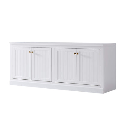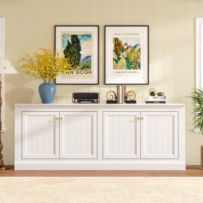 The 72" Sideboard Buffet Cabinet is a spacious, stylish solution for modern homes. With a generous 72" wide tabletop, it's perfect for displaying coffee machines, décor, dinner trays, or even an 85" TV. Designed with a modern farmhouse aesthetic, it features premium white paint and elegant vertical barn doors, offering a durable surface that's resistant to stains, scratches, and is easy to clean. The cabinet includes two adjustable shelves for customizable storage, making it ideal for use as a buffet station, coffee bar, entryway table, or media console. Equipped with an anti-dumping device for safety, it’s perfect for families with children or pets. Easy to assemble with clear instructions, it can be set up in just 1.5 hours.