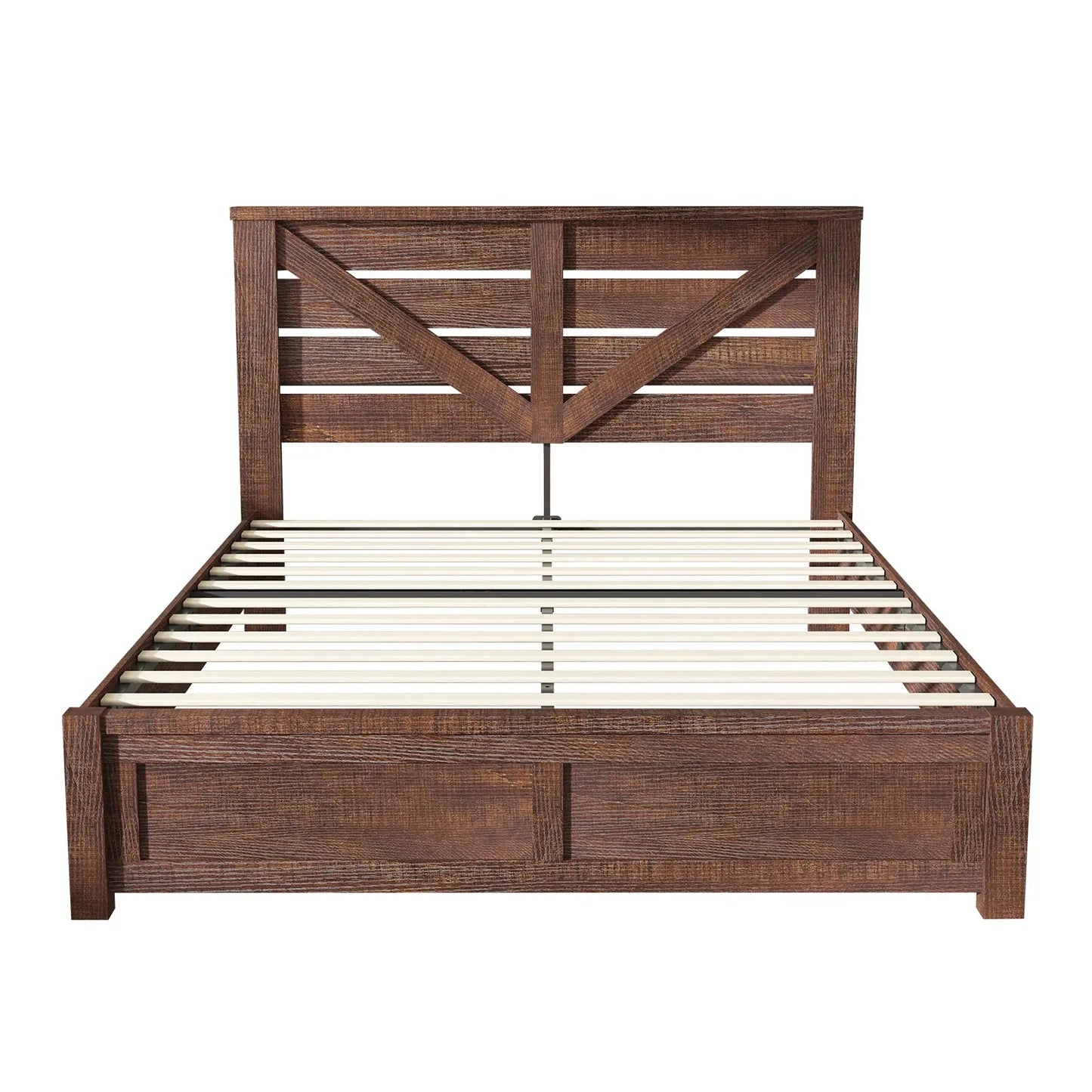 Bed frame features a simple classic barn door headboard and footboard design, and the exquisite wood grain surface adds a rustic charm, mafull it a perfect match for any decor. Beds feature silent cotton padding that provide a noise-free environment. Enjoy a peaceful and uninterrupted sleep, and wake up feeling refreshed and rejuvenated.