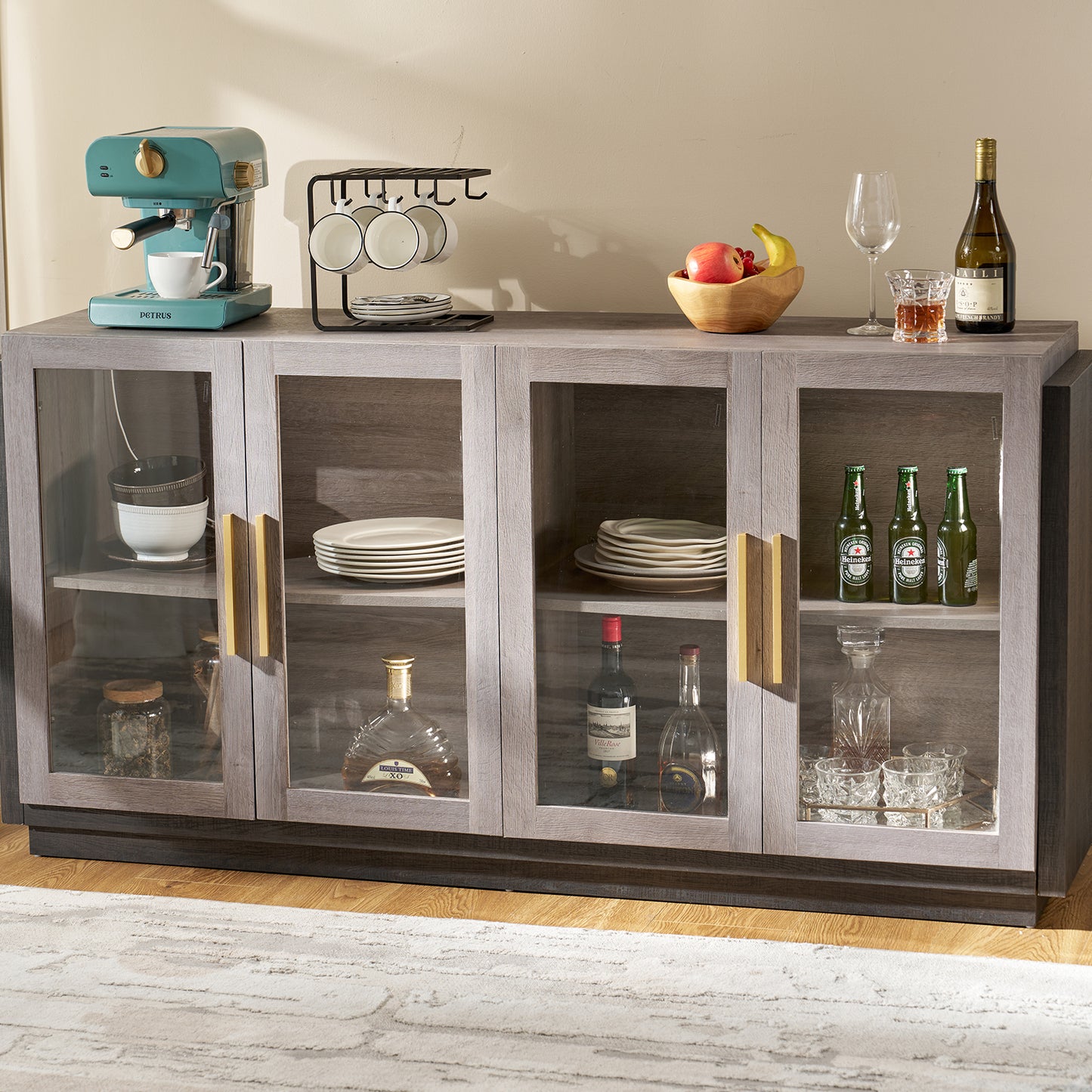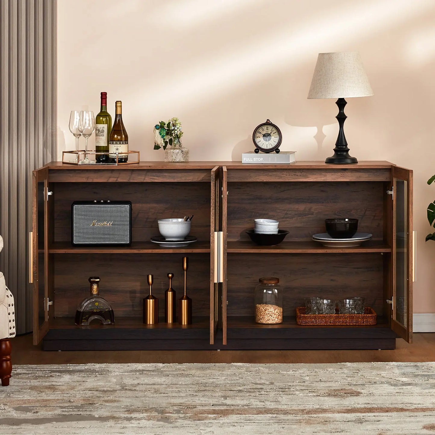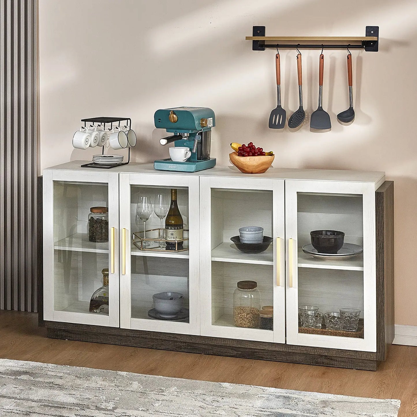 The buffet cabinet with shelves and doors is enough for holding kitchenware, decor, and sundries. The easy-cleaning and wide console table is suitable for vases and decorations displayed.