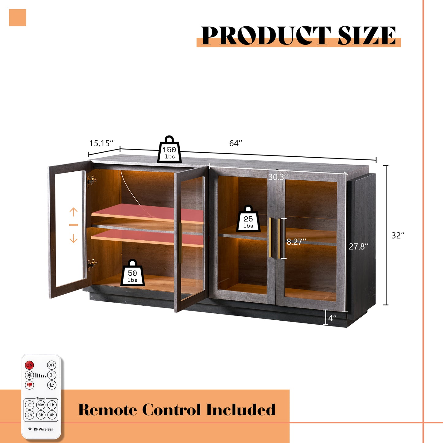 This storage cabinet with a sideboard buffet is fitted with mood-lifting LED lights. They cast a cozy glow, enhancing your room's charm, ideal for evening meals or social events.