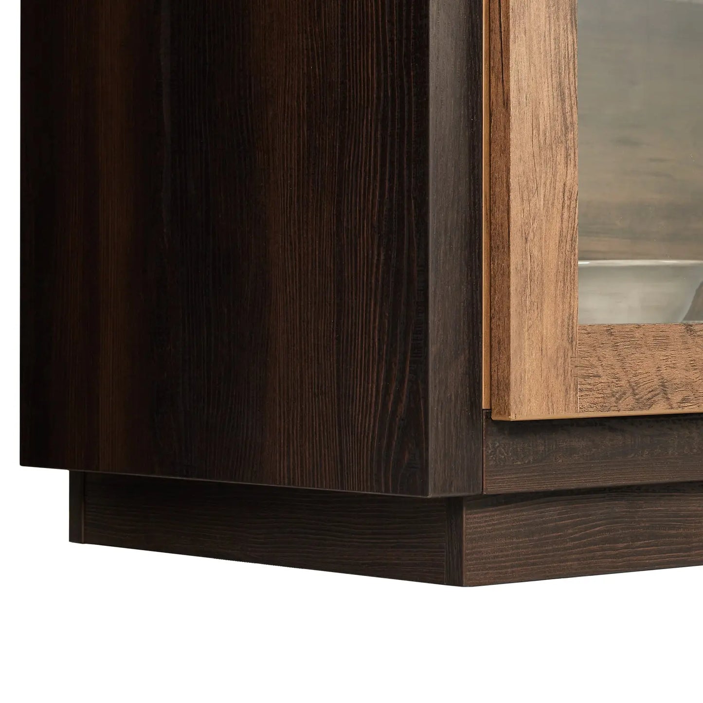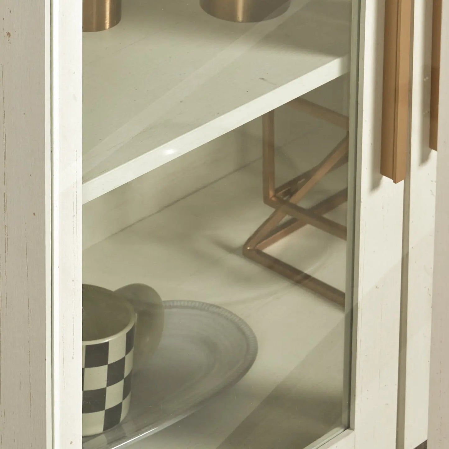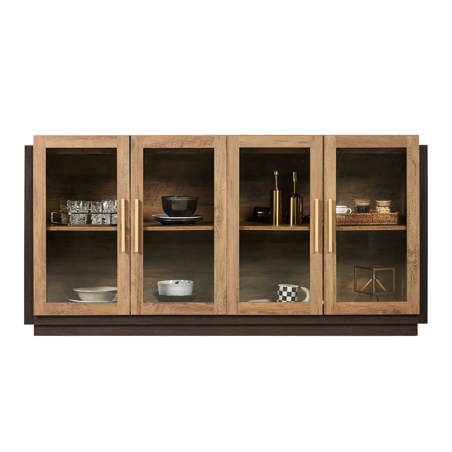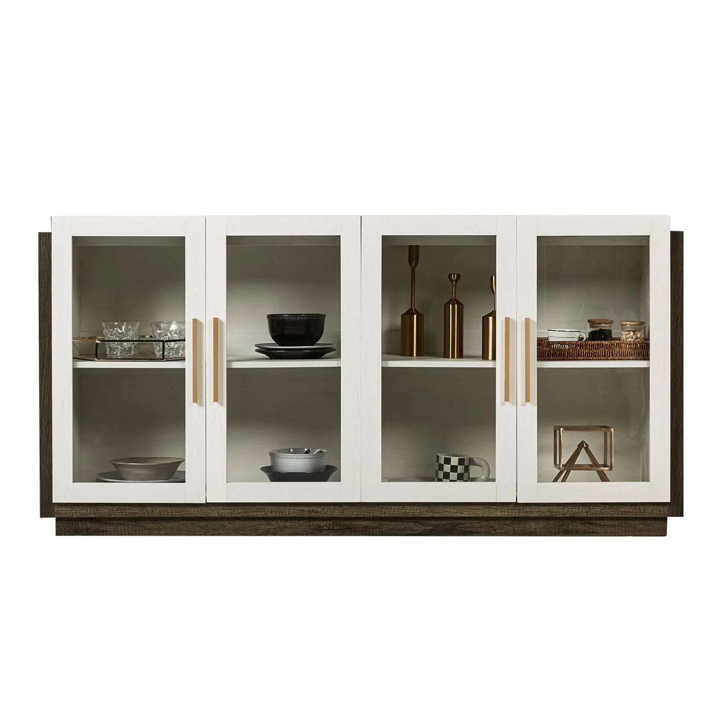 The mixed-color glass cabinet has a thickened but delicate outfit that stands much more stably. Clear 4-door glass cabinet with shelf and metal handles make it more luxurious and aesthetic.