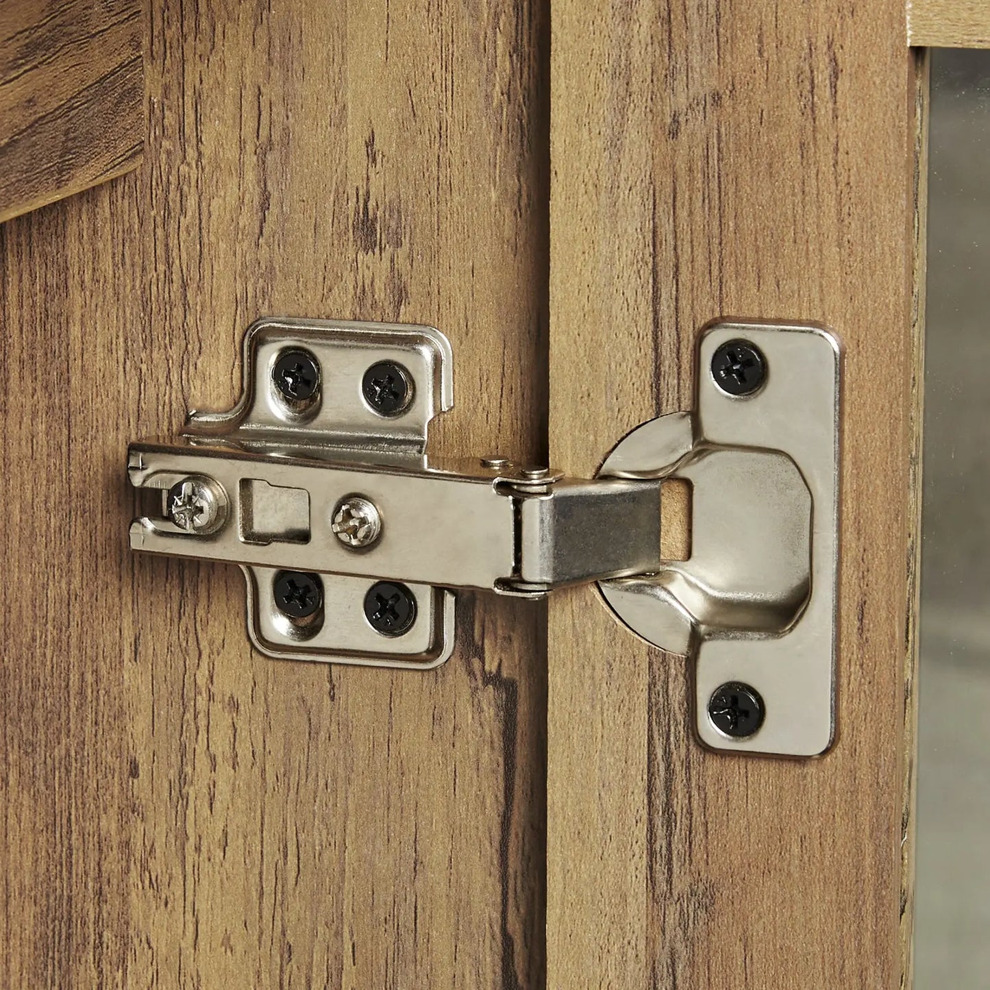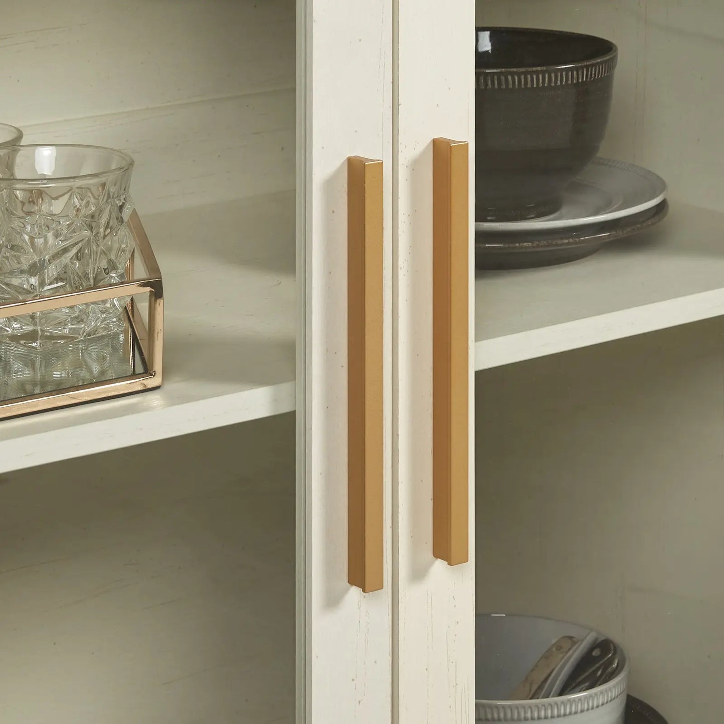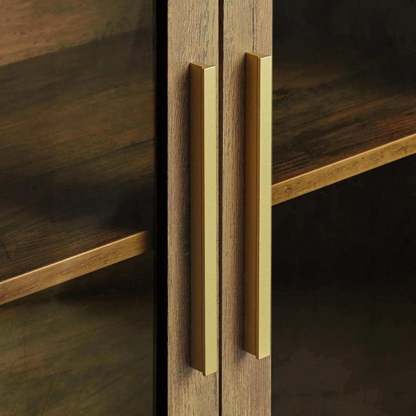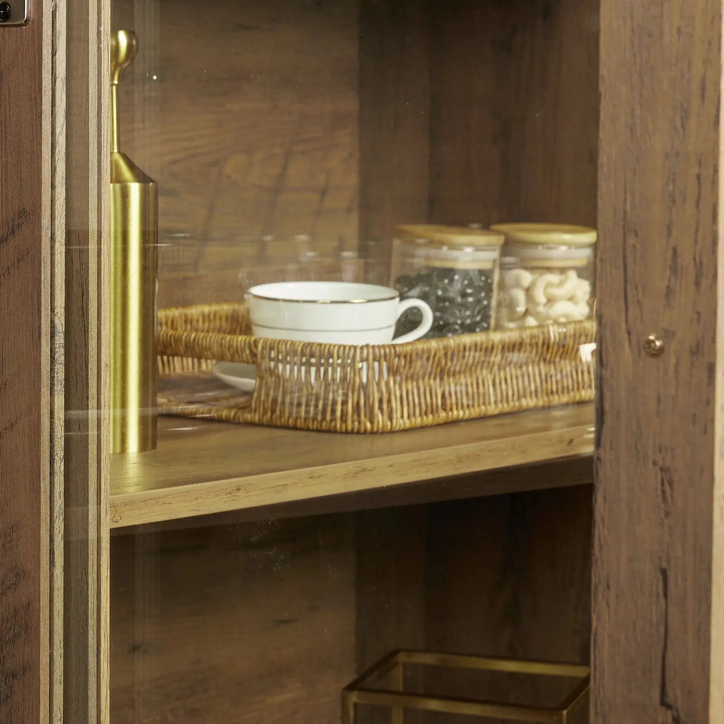 The mixed-color glass cabinet has a thickened but delicate outfit that stands much more stably. Clear 4-door glass cabinet with shelf and metal handles make it more luxurious and aesthetic.