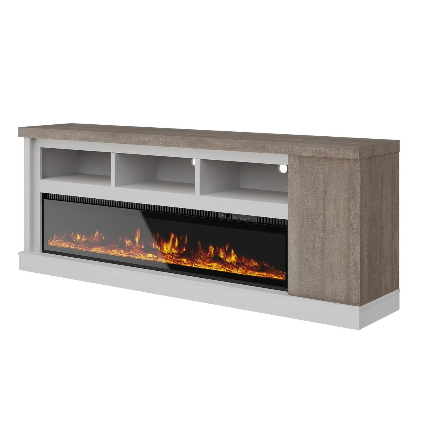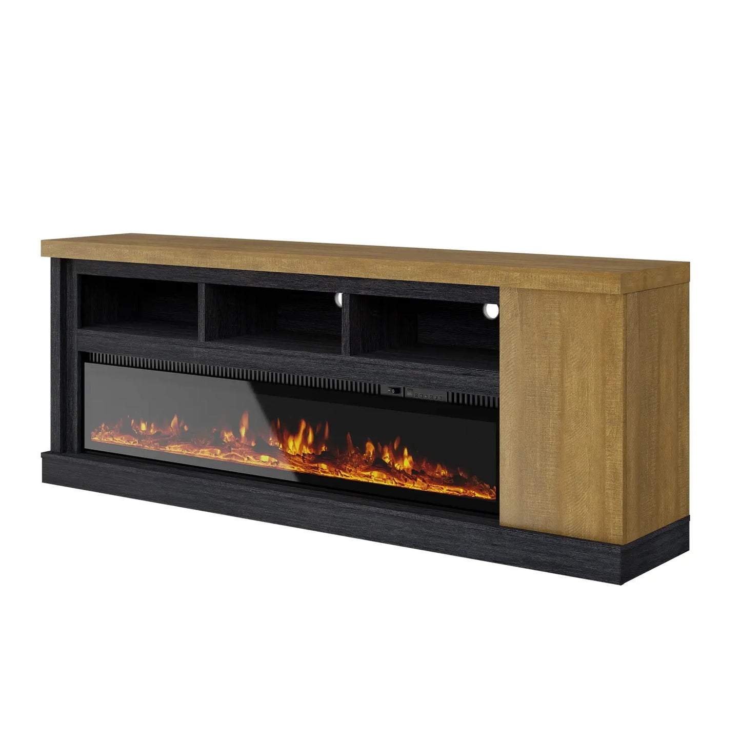 Bawden fireplace TV console features a thickened base for maximum support. With the built-in cable management keeps wires neatly organized, maintaining a clean, clutter-free look.