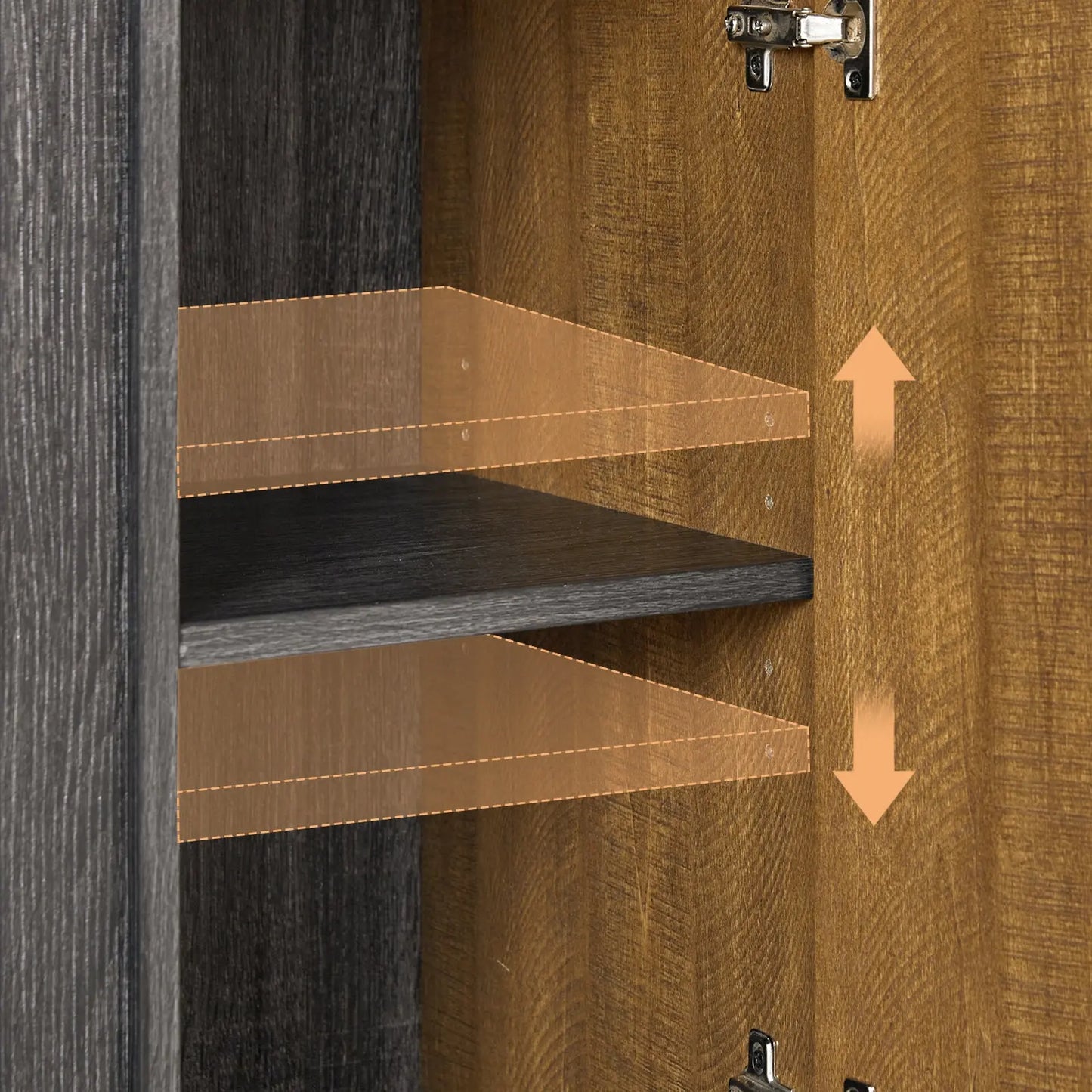 Push-open latch system allow for easy and smooth access to storage compartments without the need for handles. Paired with 5-level adjustable shelves, it offers flexible storage options to fit a variety of items, ensuring your living space remains organized.