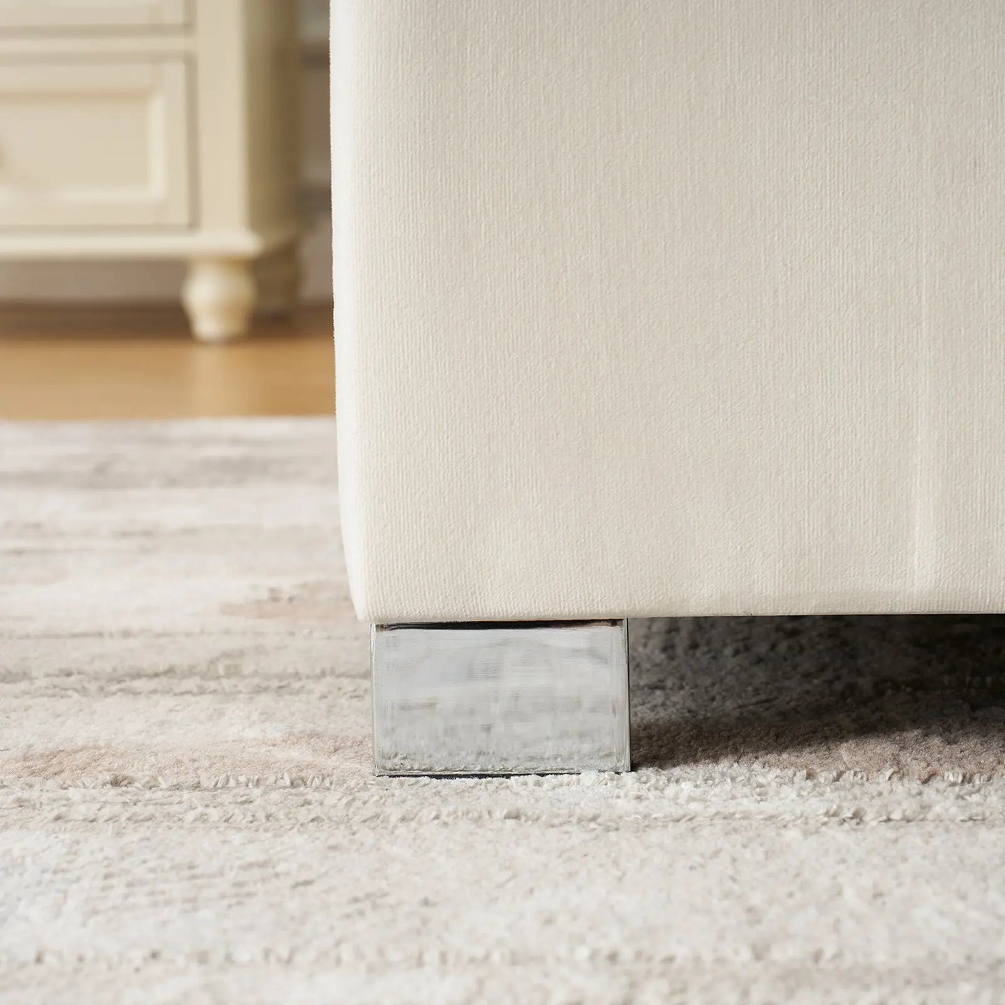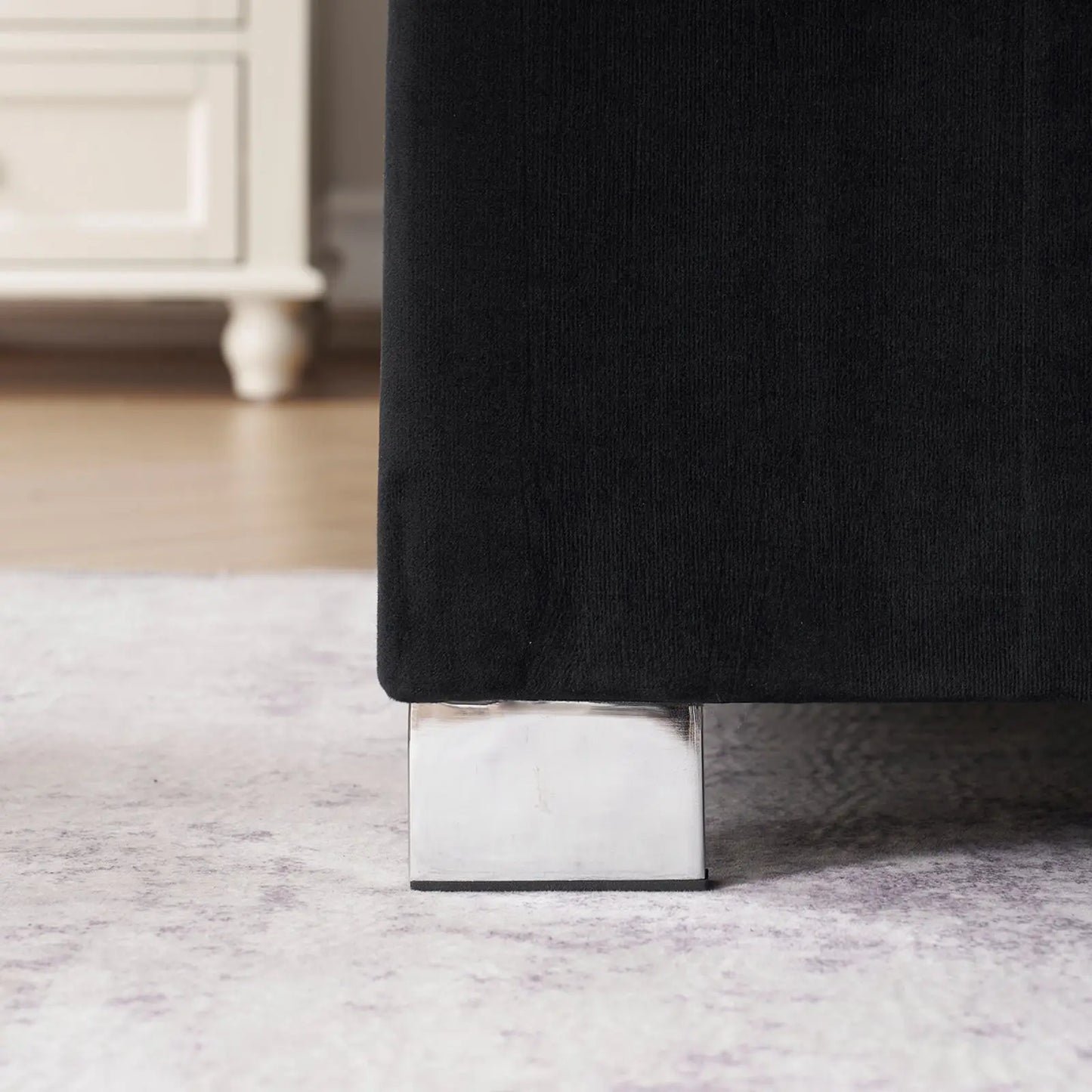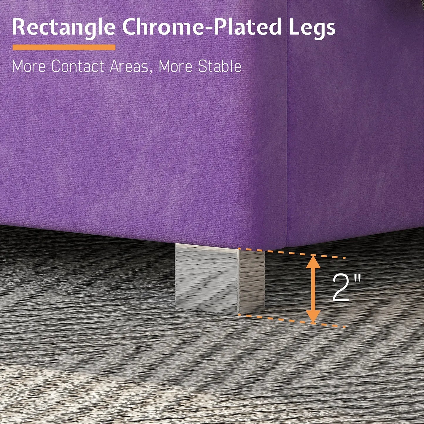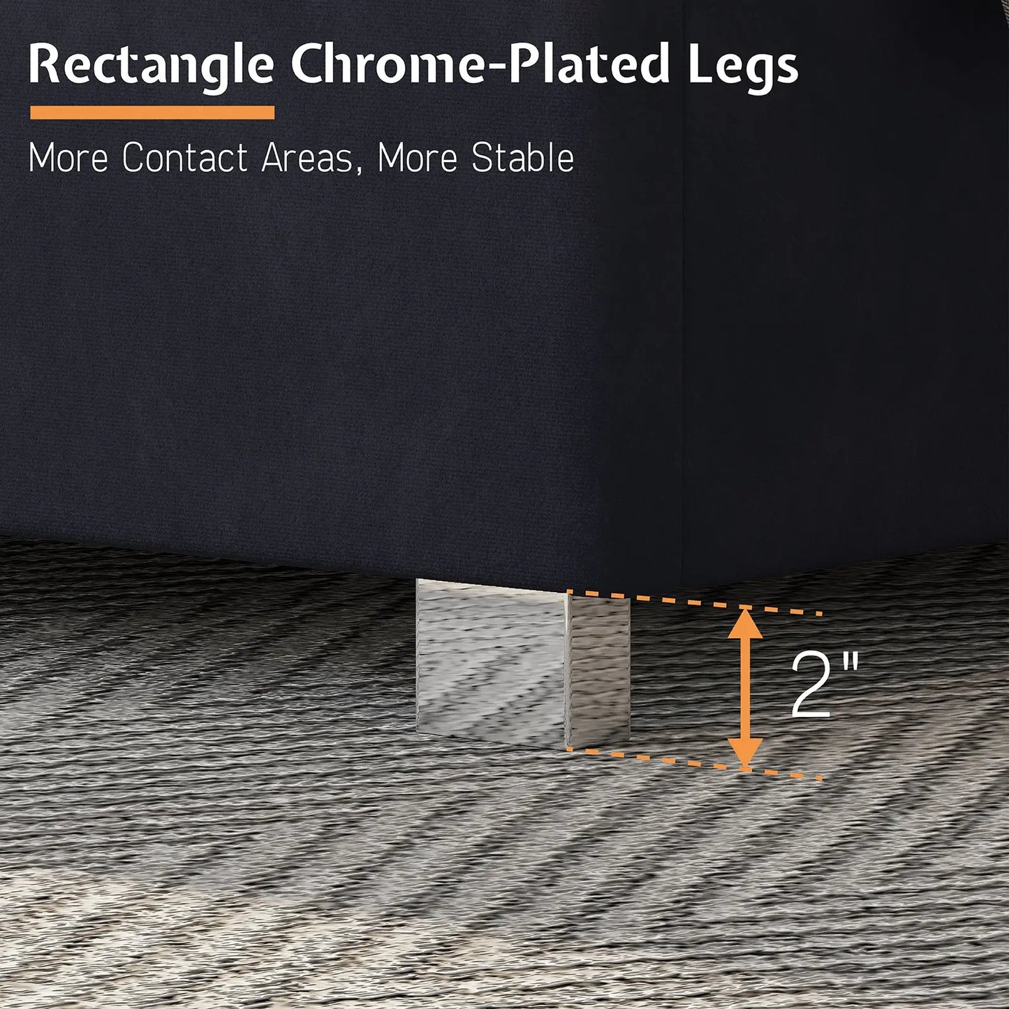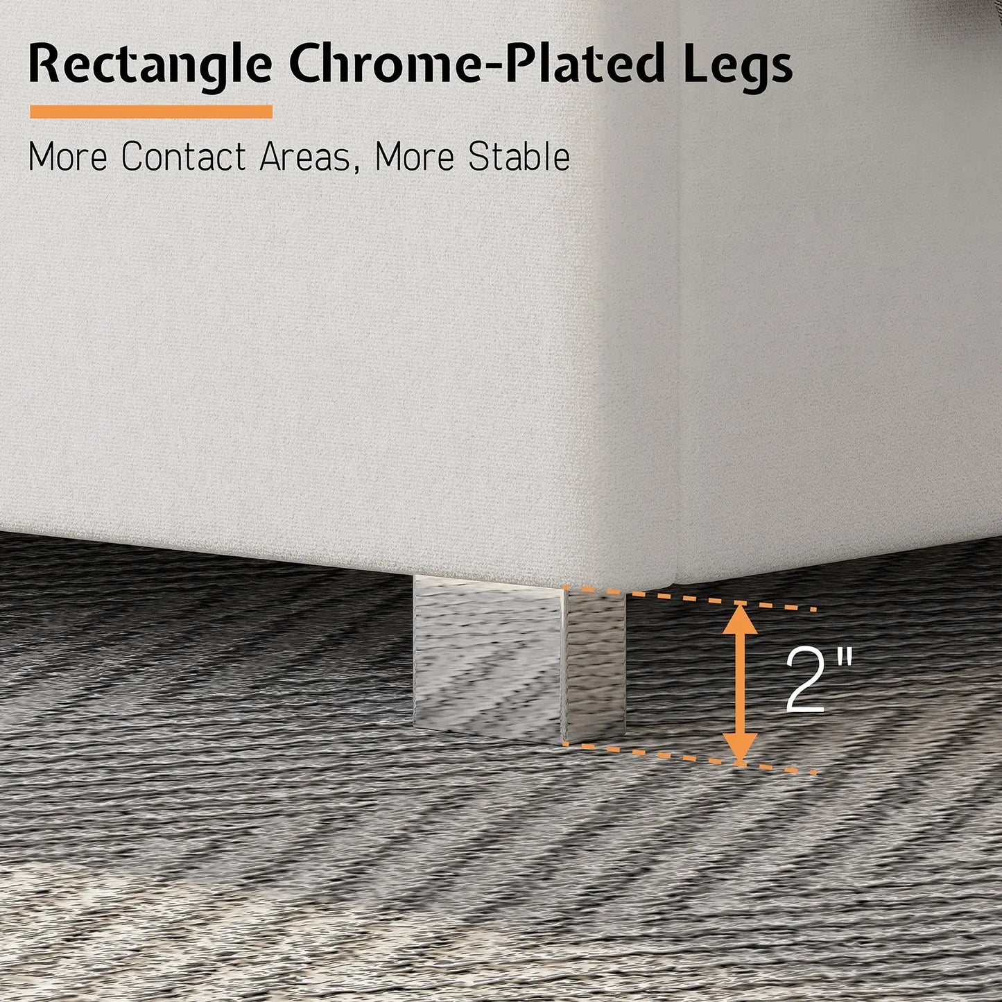 Top of headboard and wingback are inlaid with shiny mirrored chrome metal strips paired with rectangular plated legs, adding extra beauty and focus to your bedroom.