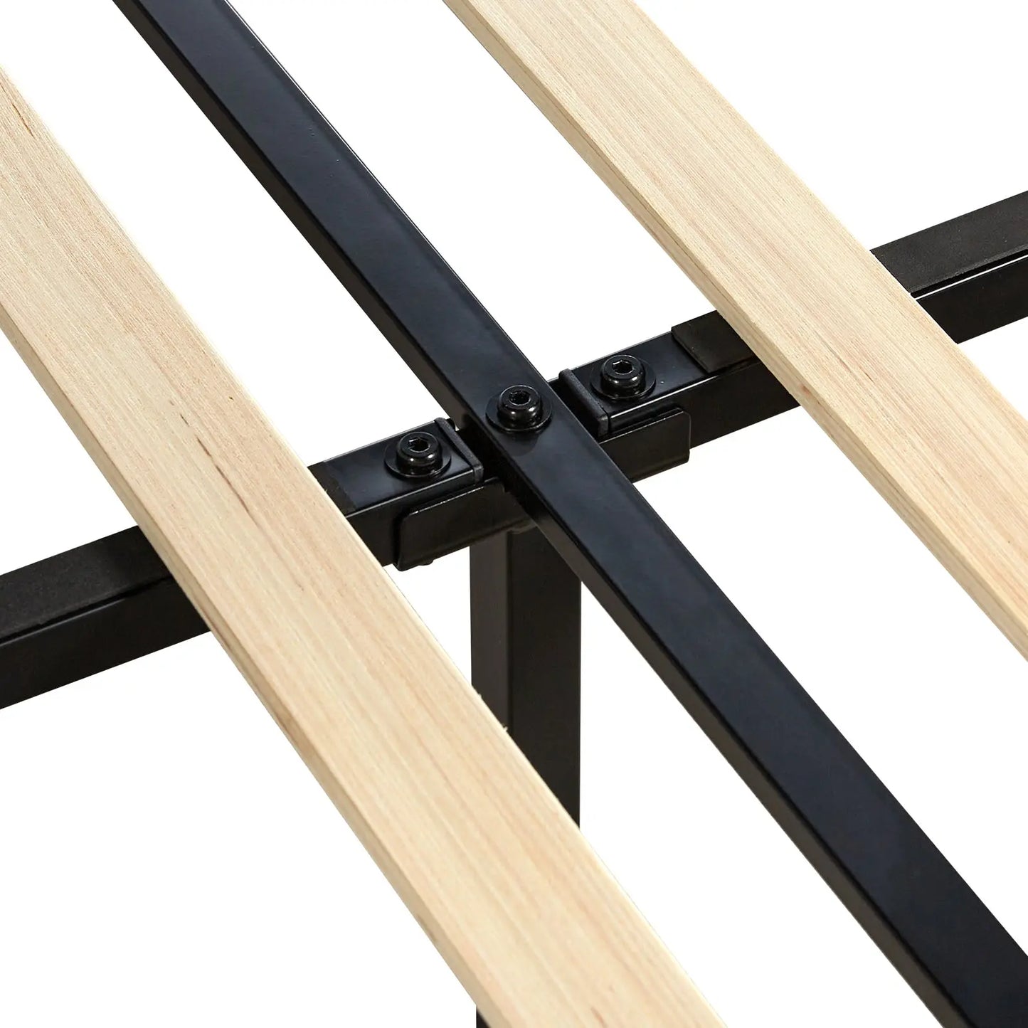 Built to last, the Sturdy platform bed frame features solid wooden slats and center metal support. No box spring needed, ensuring durability and a comfortable night's sleep.