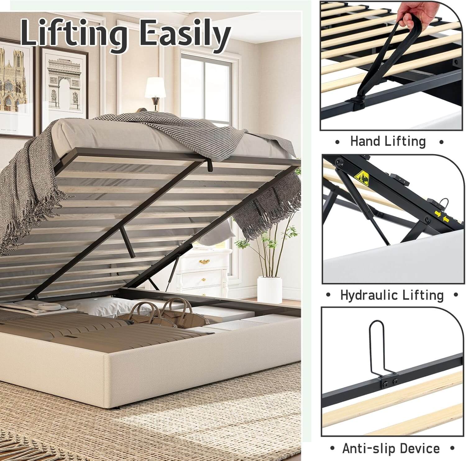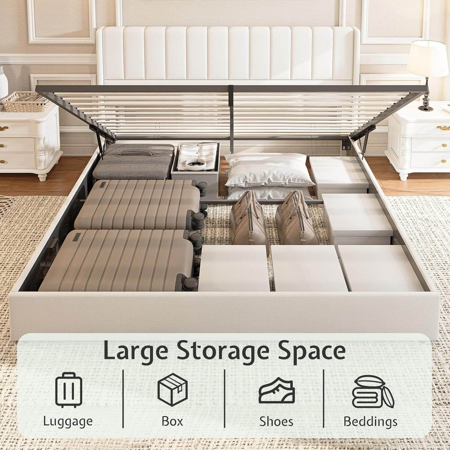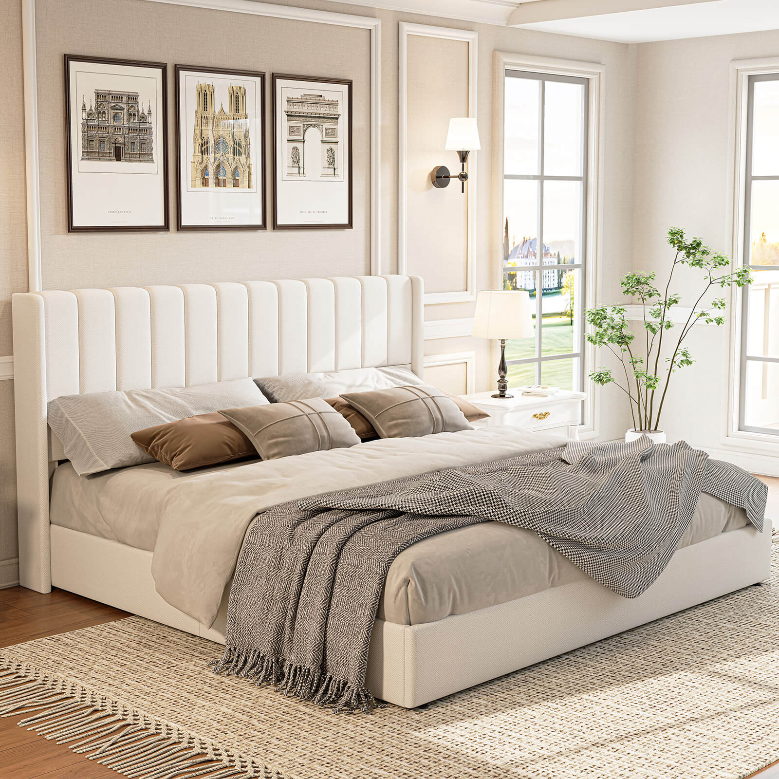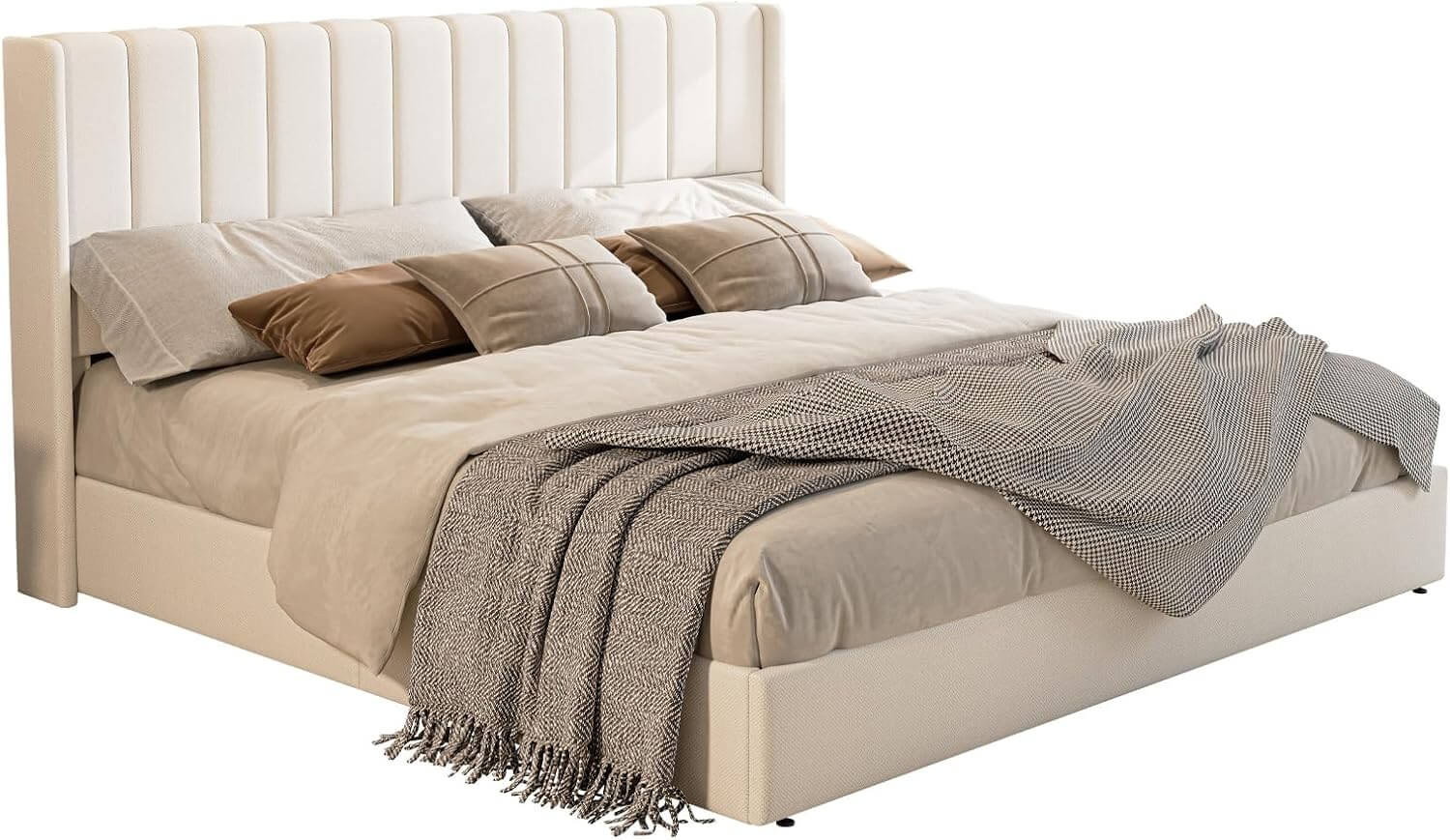The Brinley Lift Up Storage Bed Frame combines modern elegance with smart functionality. Its premium linen wingback headboard adds a sophisticated touch while offering breathable, supportive comfort. With an innovative hydraulic lift-up design, it offers 40% more storage space than traditional drawers¡ªperfect for bedding, clothing, or seasonal essentials. Built from stainless steel and wooden slats, and reinforced with EVA noise-reducing pads, it delivers sturdy, quiet support for up to 800 lbs. Easy to assemble and no box spring required, it's ideal for compact living.