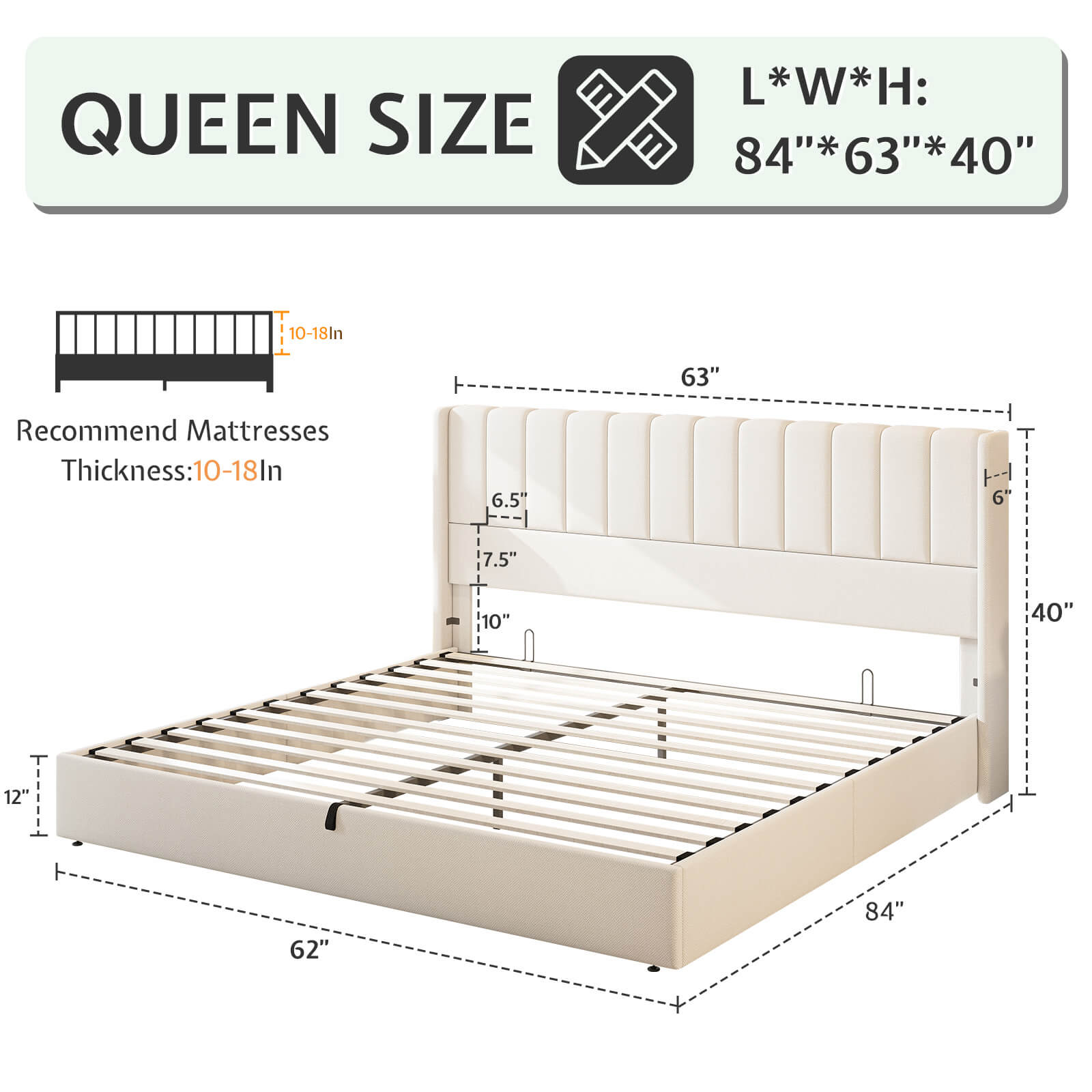 Brinley Lift Up Storage Bed Frame-Queen(White)