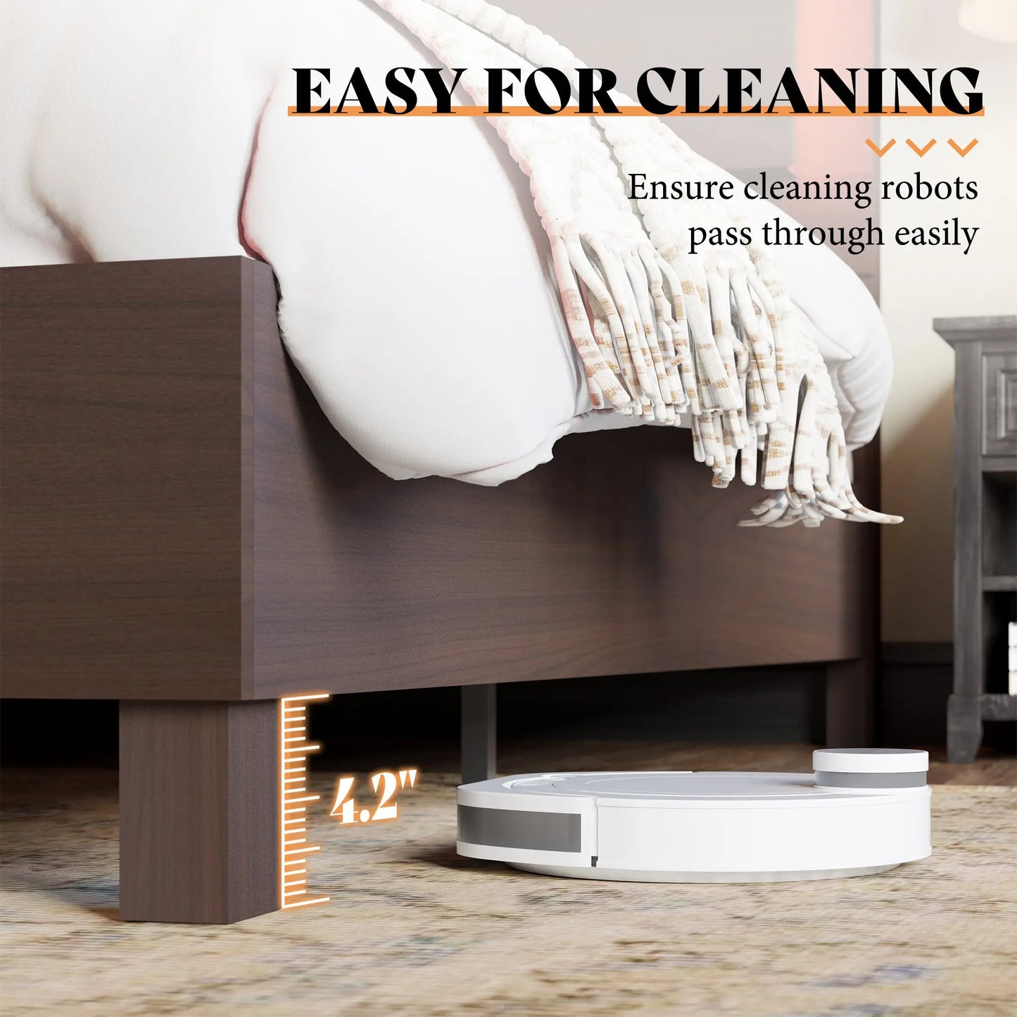 Our platform bed frame offers stability and support. It is supported by a combination of wooden legs, iron legs, and wood slates, ensures comfortable night's sleep.