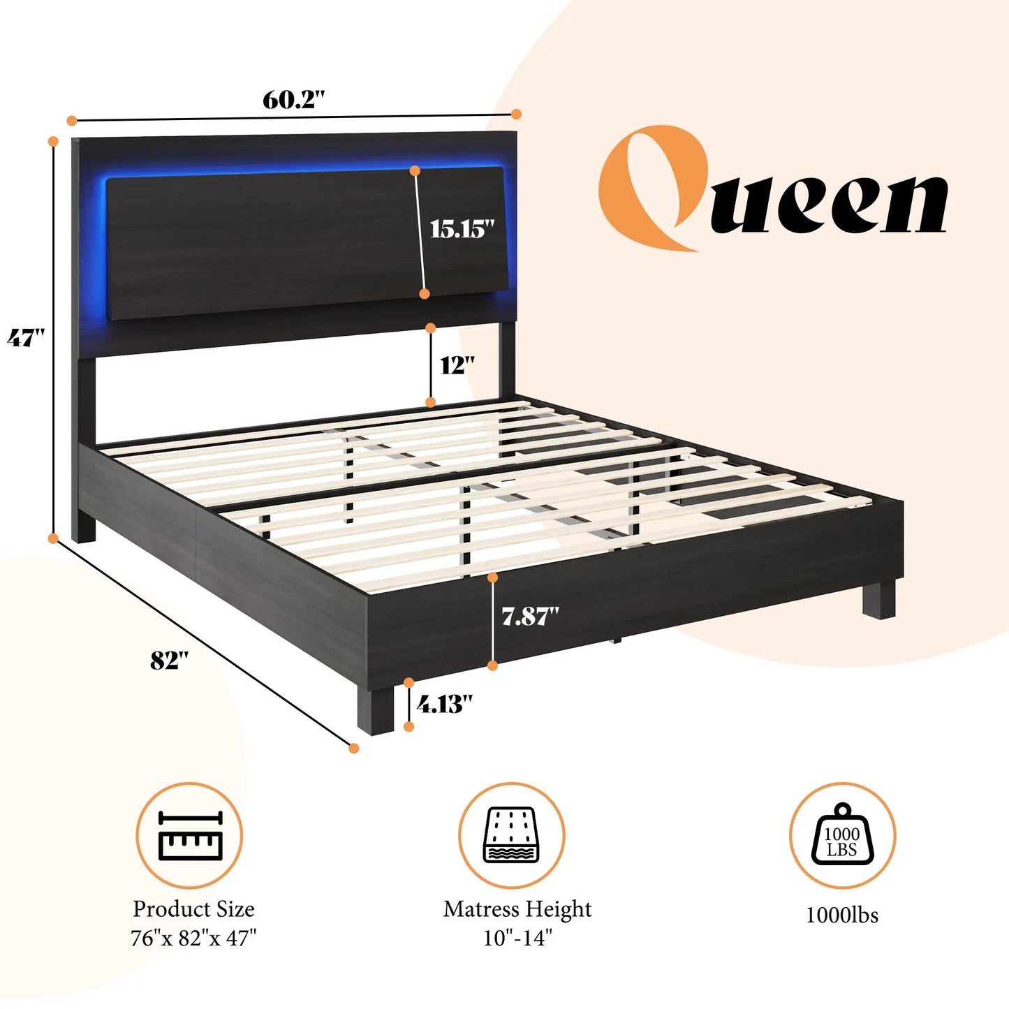 Carson Queen LED Bed Frame