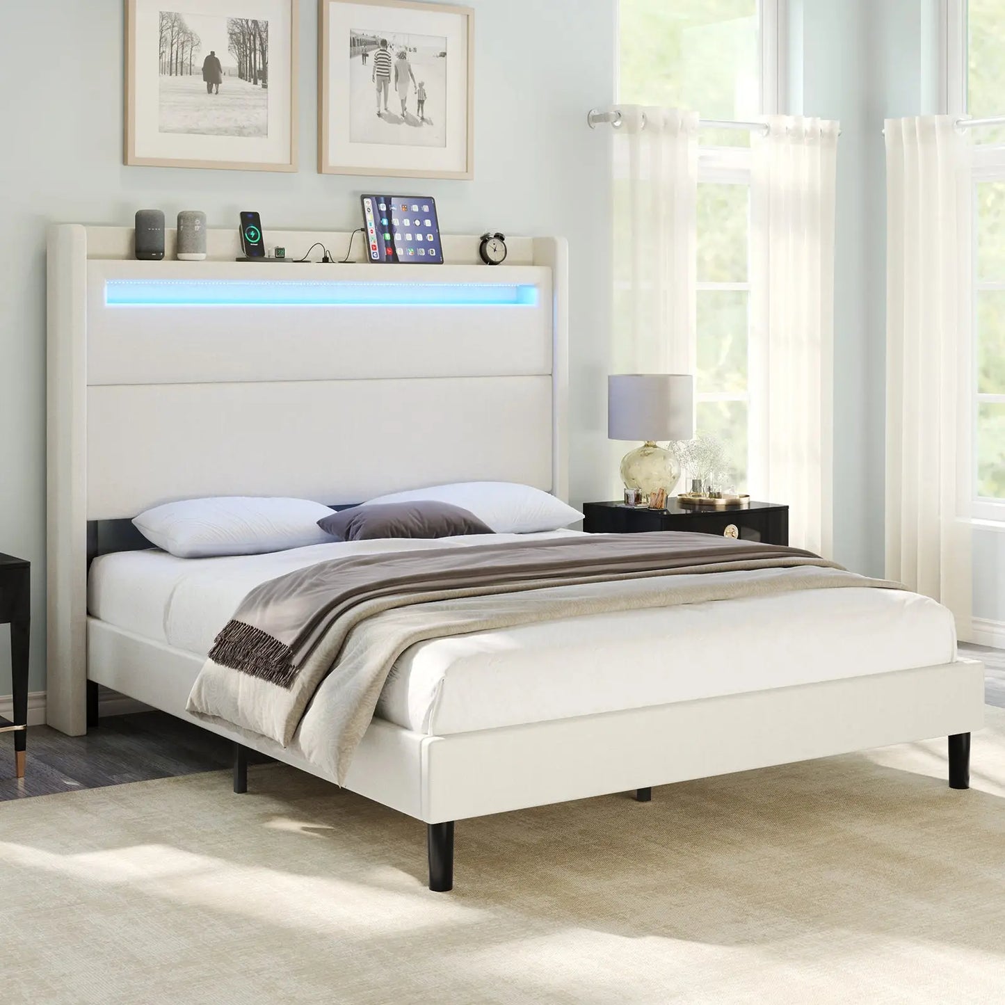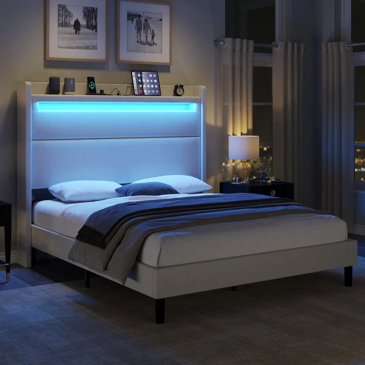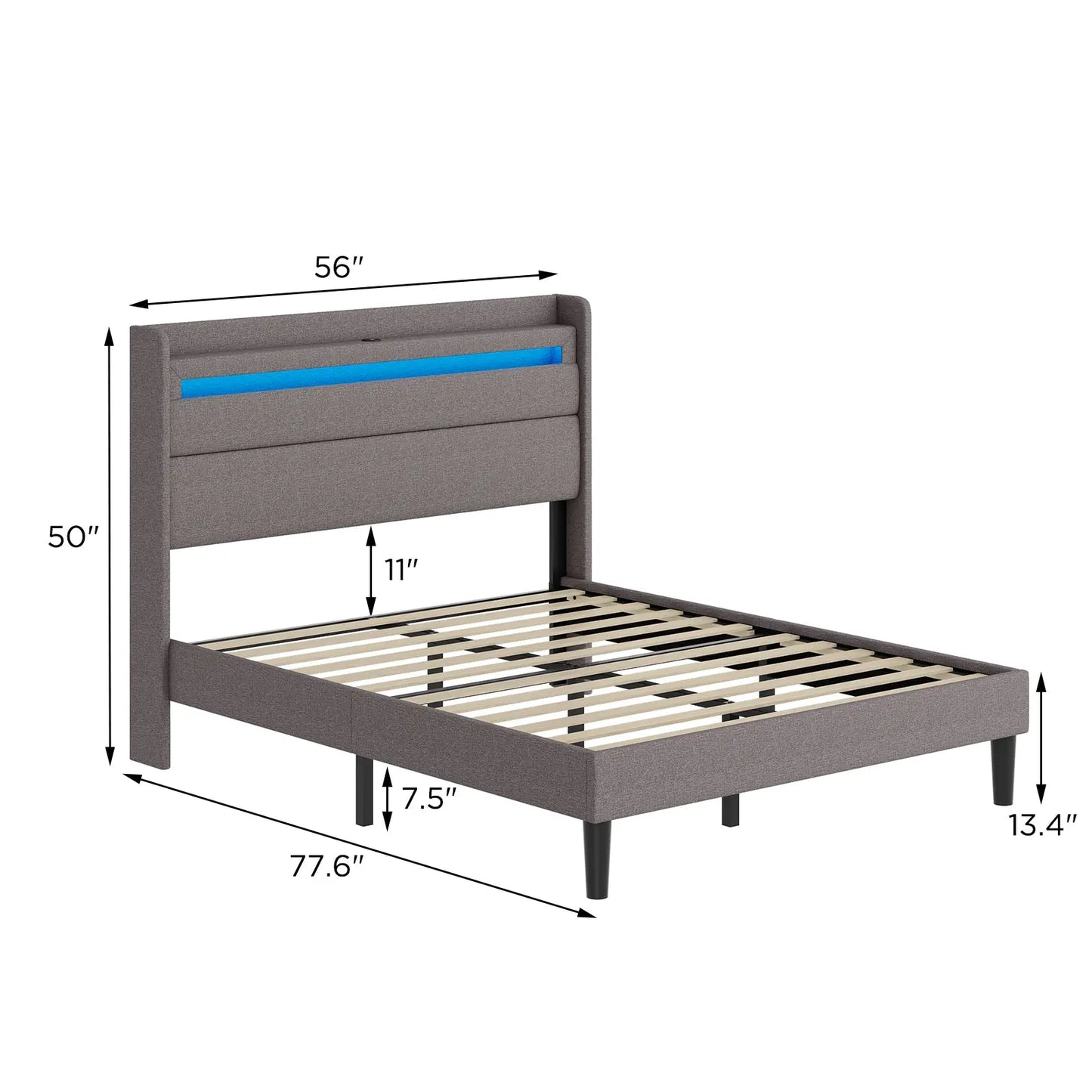 Elevate your bedroom with our Cavendish Full Bed Frame. Enjoy a restful sleep with the LED lights & wingback headboard, while staying connected with USB & USB-C ports. No need for a box spring and enjoy a noise-free experience. Experience luxury and comfort in one beautifully upholstered platform bed.