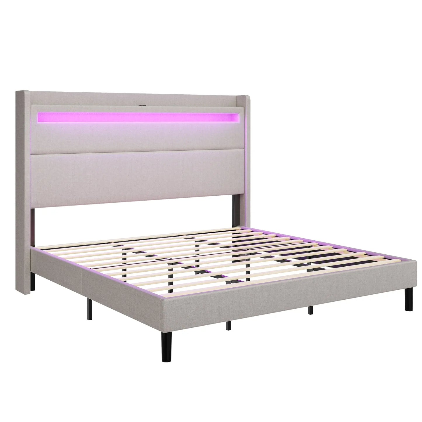 Elevate your bedroom with our Cavendish King Bed Frame. Enjoy a restful sleep with the LED lights & wingback headboard, while staying connected with USB & USB-C ports. No need for a box spring and enjoy a noise-free experience. Experience luxury and comfort in one beautifully upholstered platform bed.
