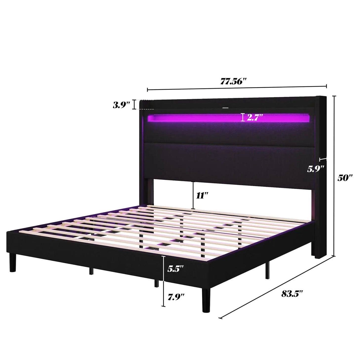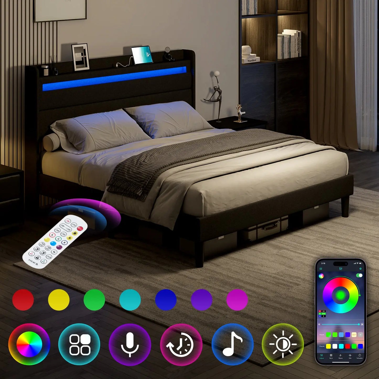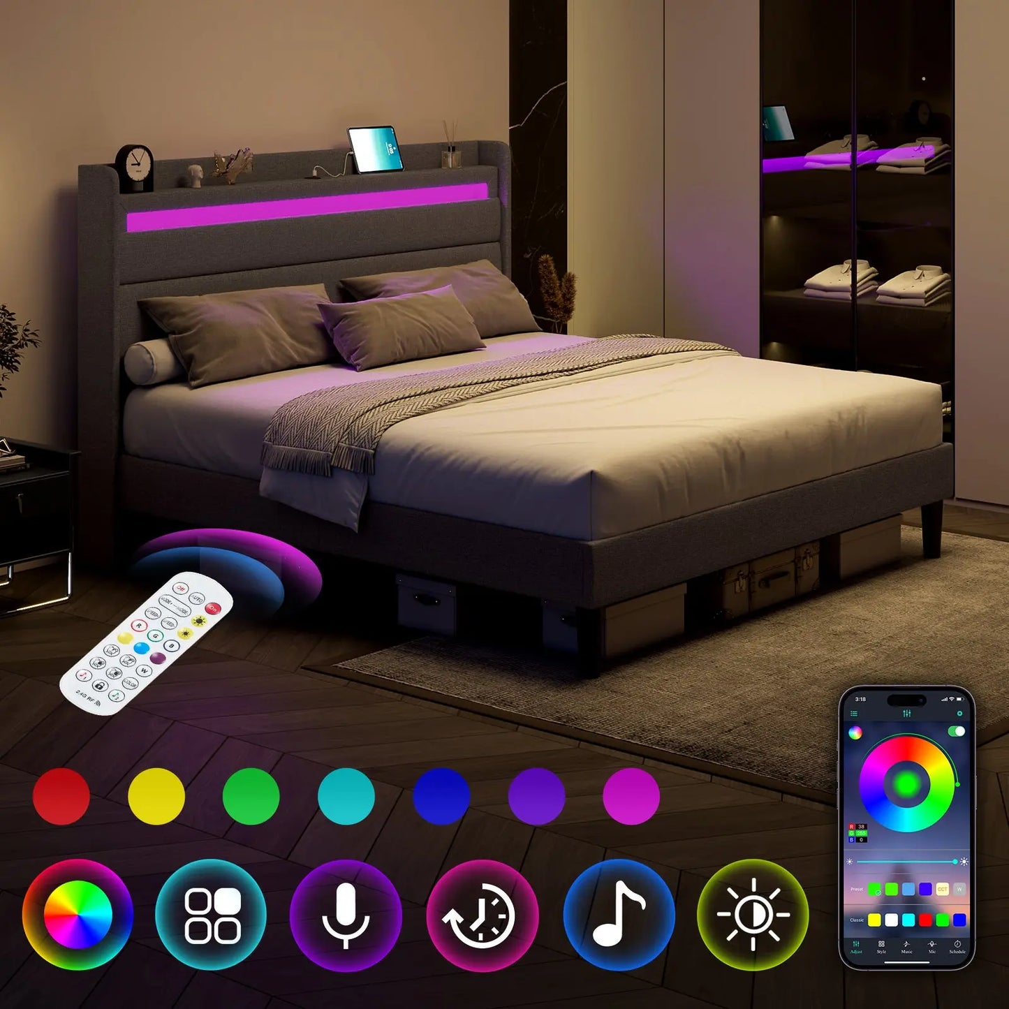 Offering millions colors and an array of dynamic effects, Controlled by APP & Remote, making it the perfect choice for those seeking a state-of-the-art LED bed frame.
