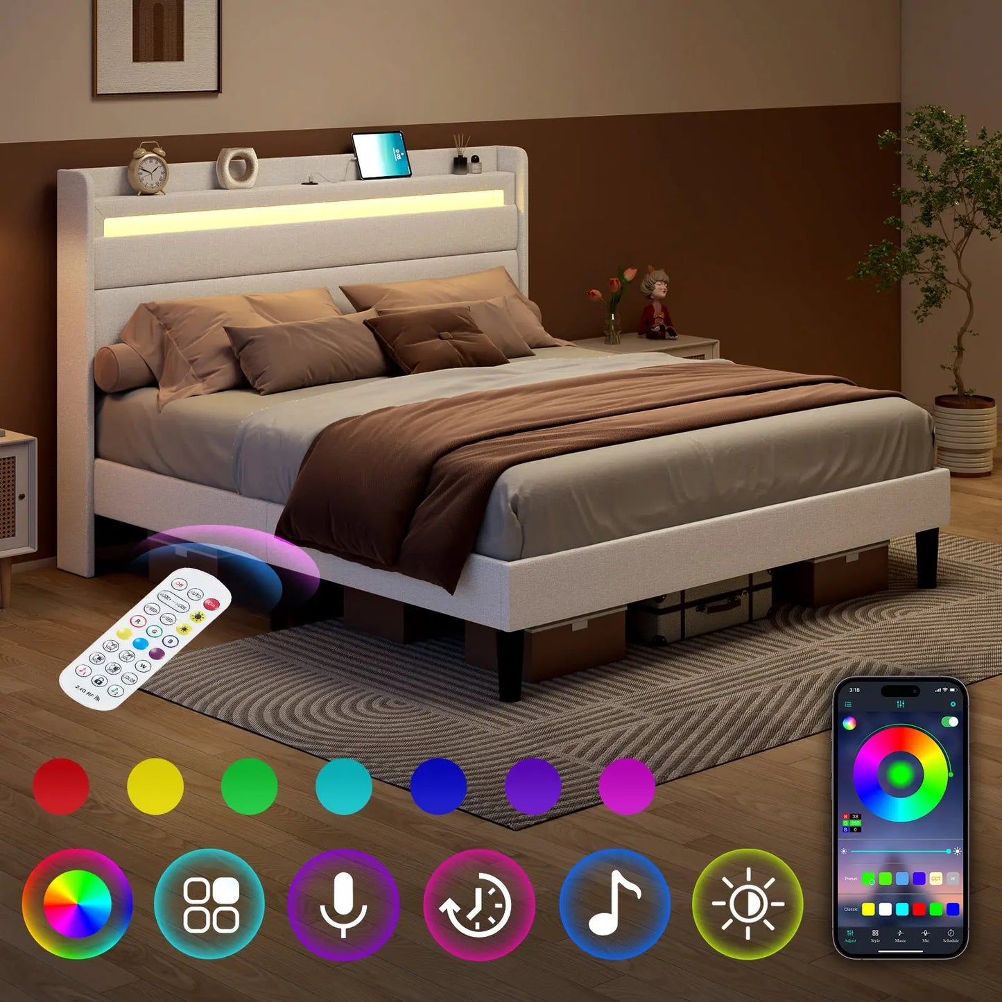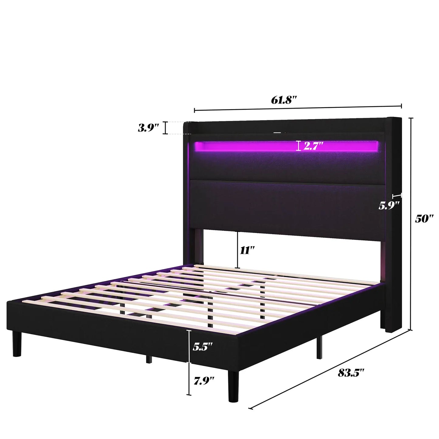 Offering millions colors and an array of dynamic effects, Controlled by APP & Remote, making it the perfect choice for those seeking a state-of-the-art LED bed frame.
