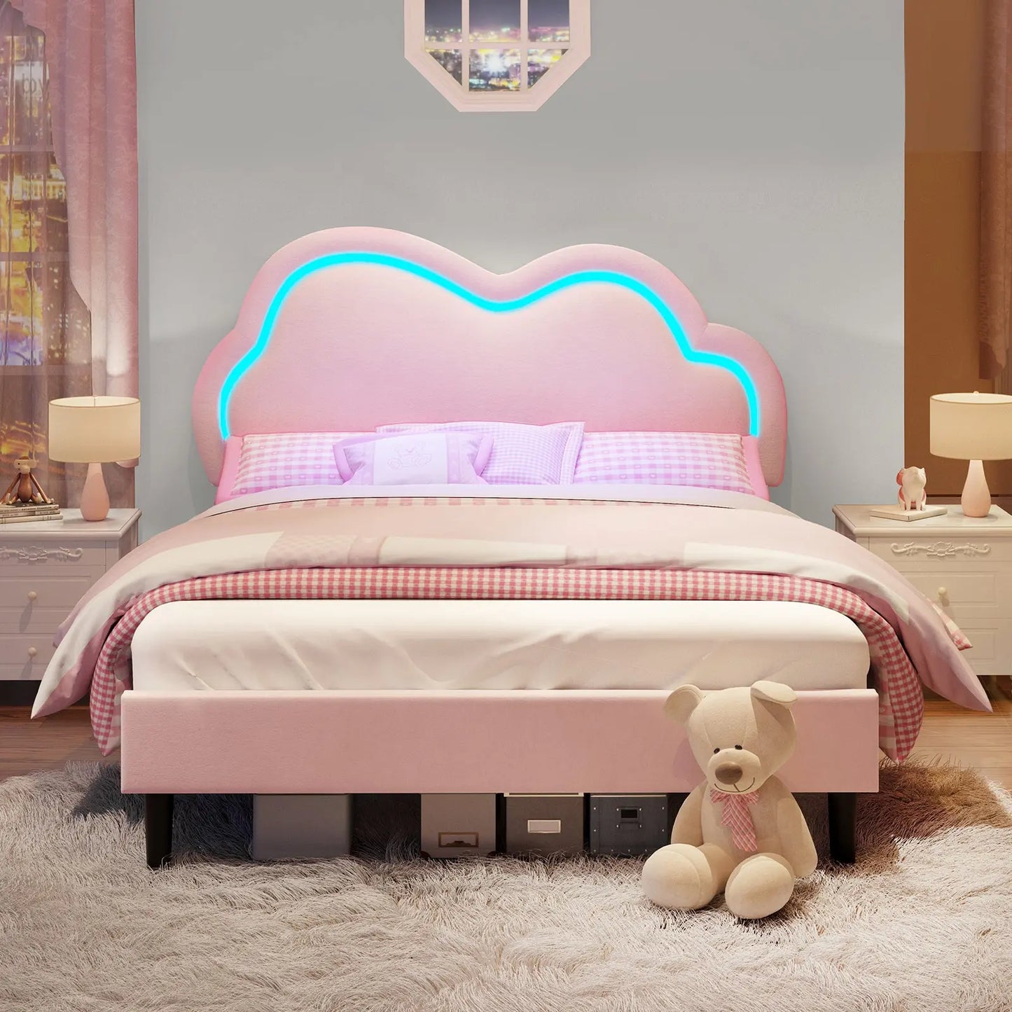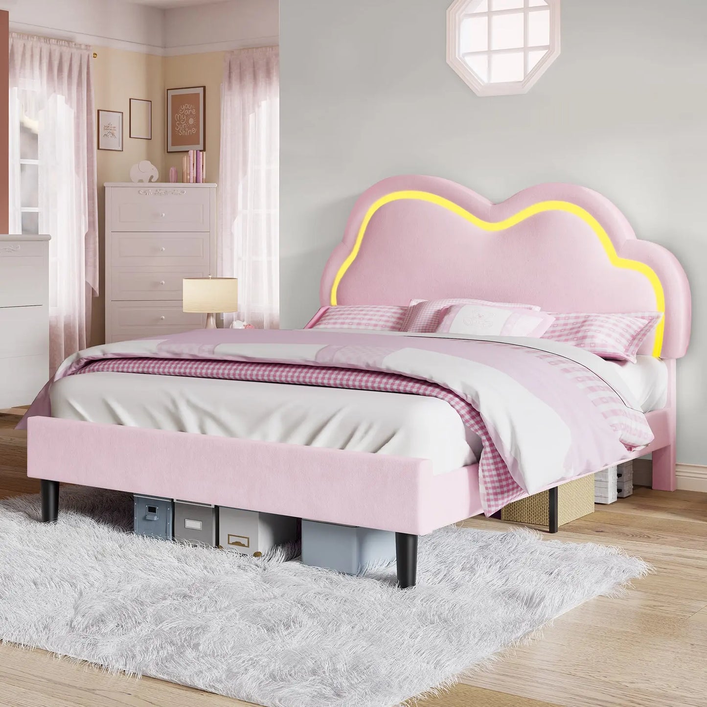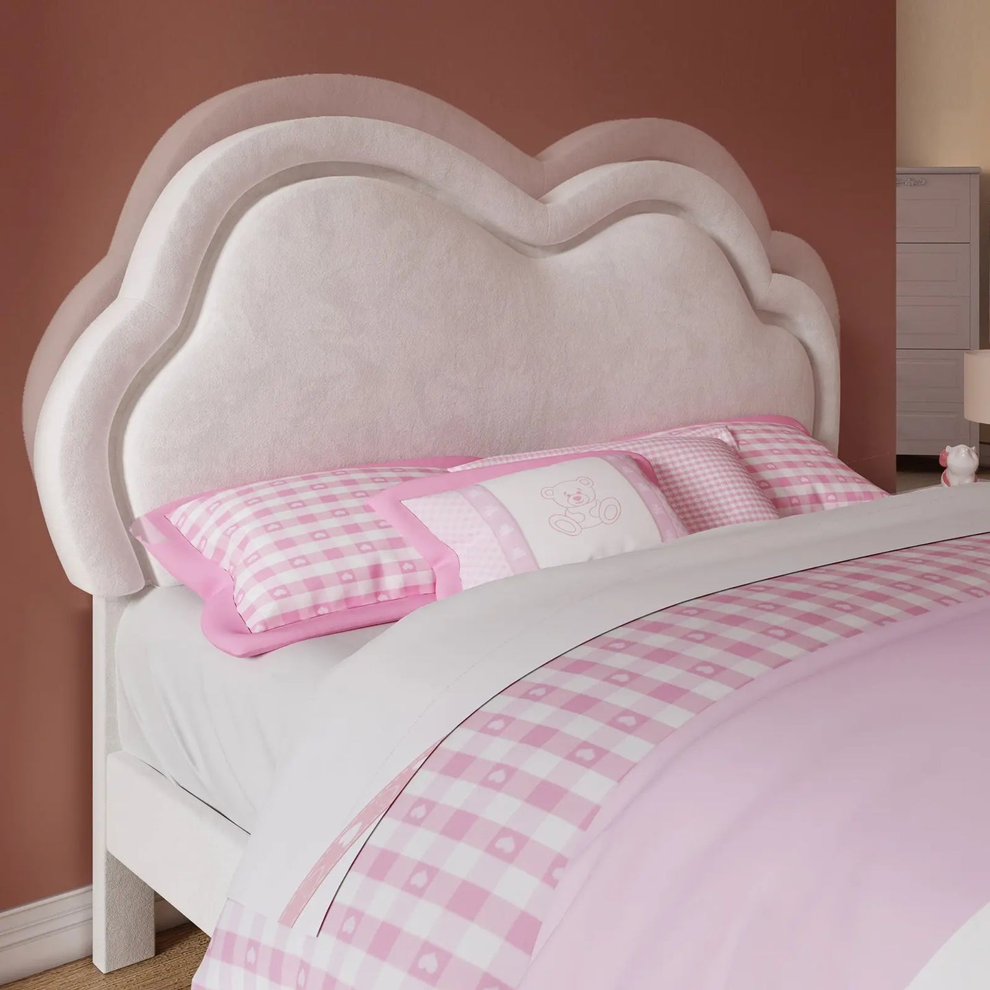 Amerlife Celeste girl bed features a unique shape design, luxurious velvet upholstery, and elegant curves, ensuring sweet dreams every night. Whether for a little princess or a fashion-forward girl, this bed offers a high-quality sleeping experience.