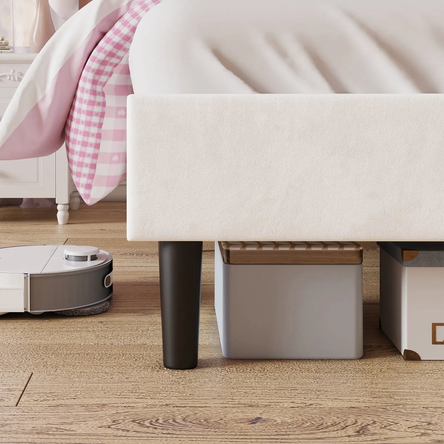 Equipped with RGB LED lights, the bed frame supports over 200 modes, adding ambiance and personalization to your bedroom. From warm, inviting glows to vibrant, flashing patterns, this bed frame creates a unique atmosphere tailored to your preferences.
