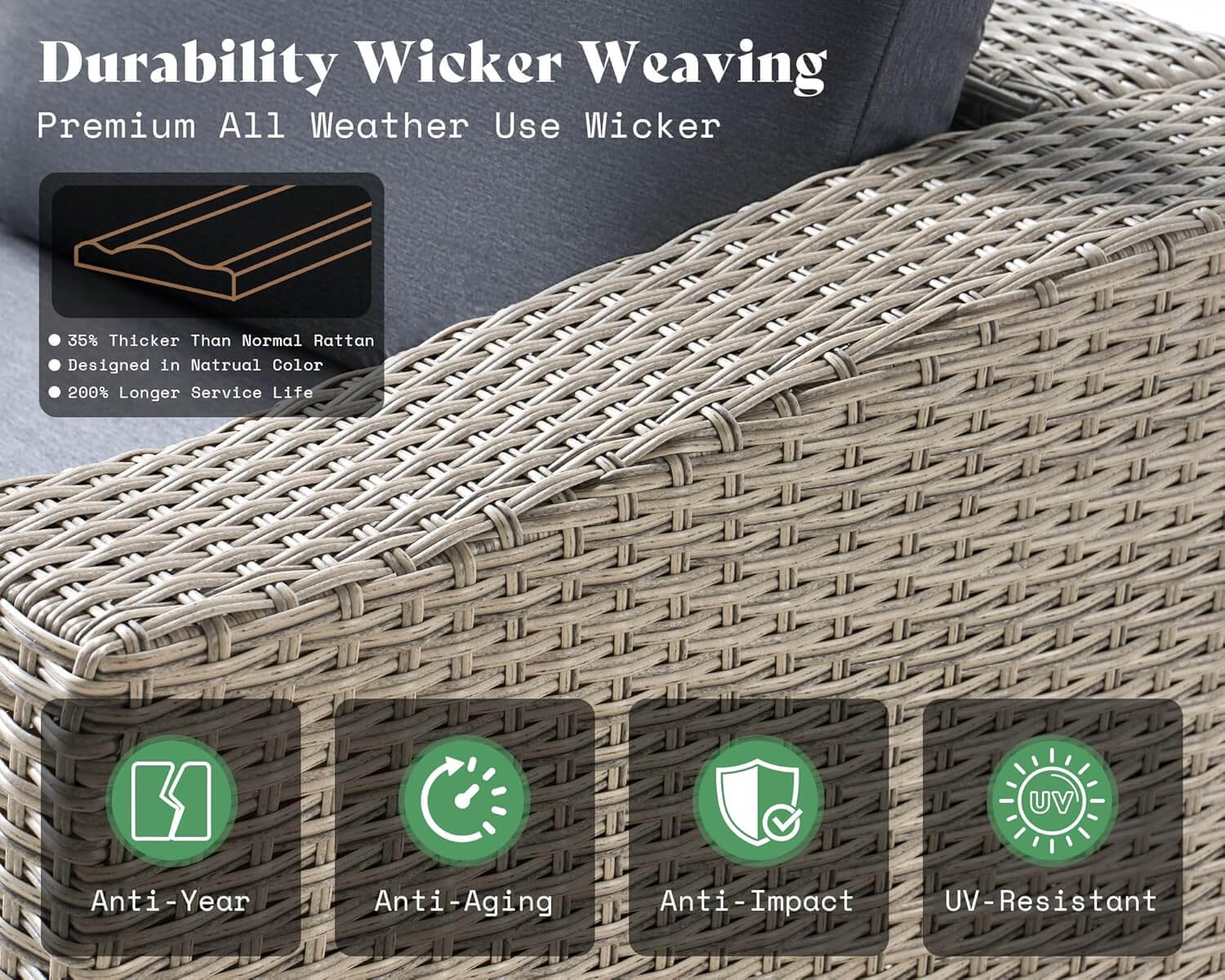 Features 6-inch cushions with 28D high-resilience foam, supporting up to 500 lbs (including ottomans). Soft yet firm, ideal for various Outdoor Sectional setups and outdoor gatherings.
