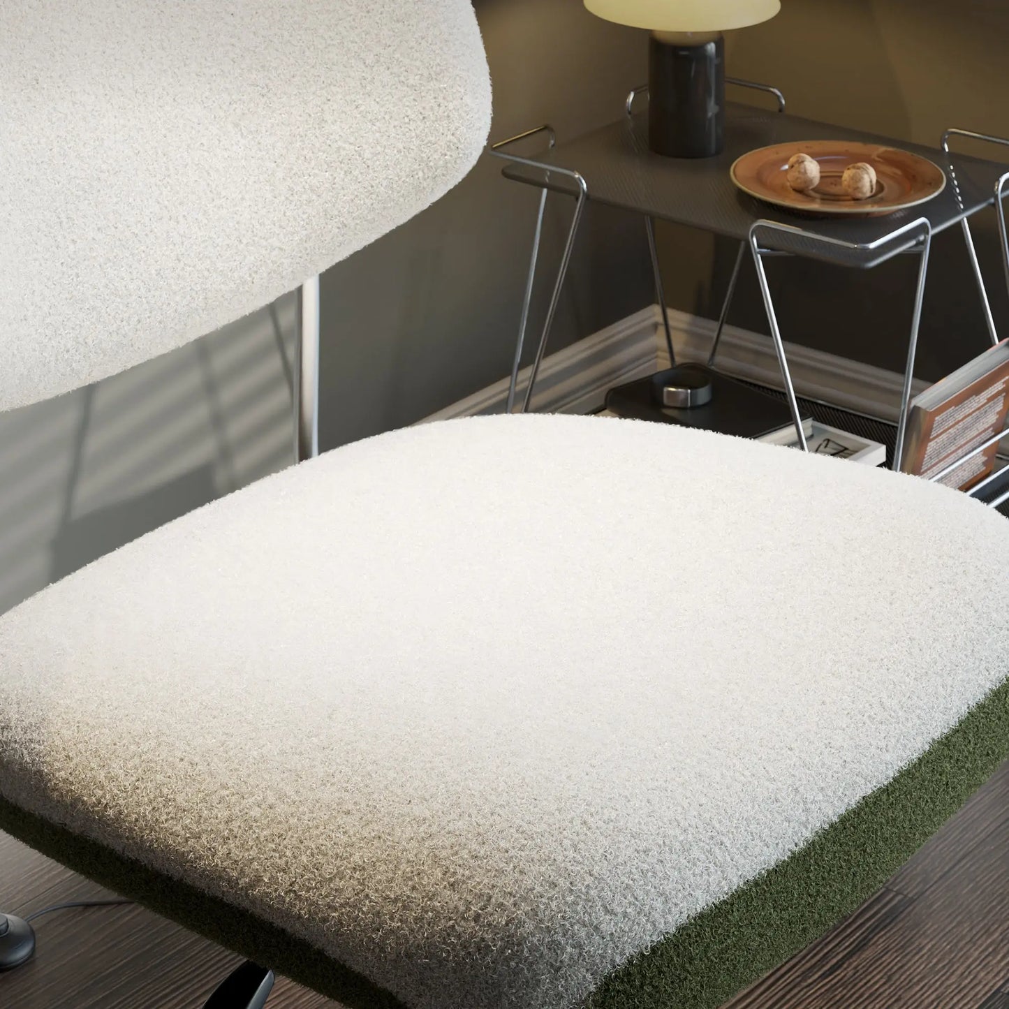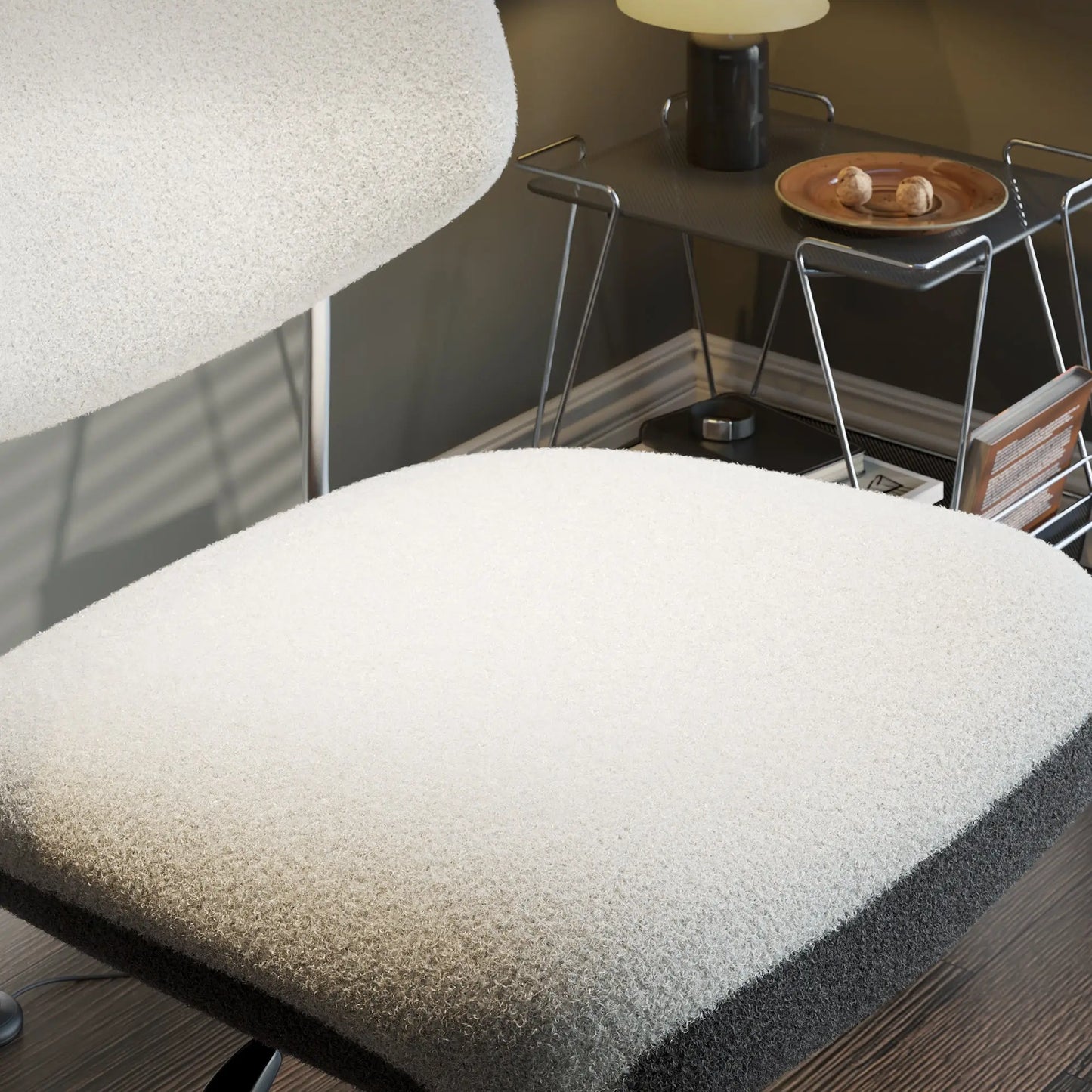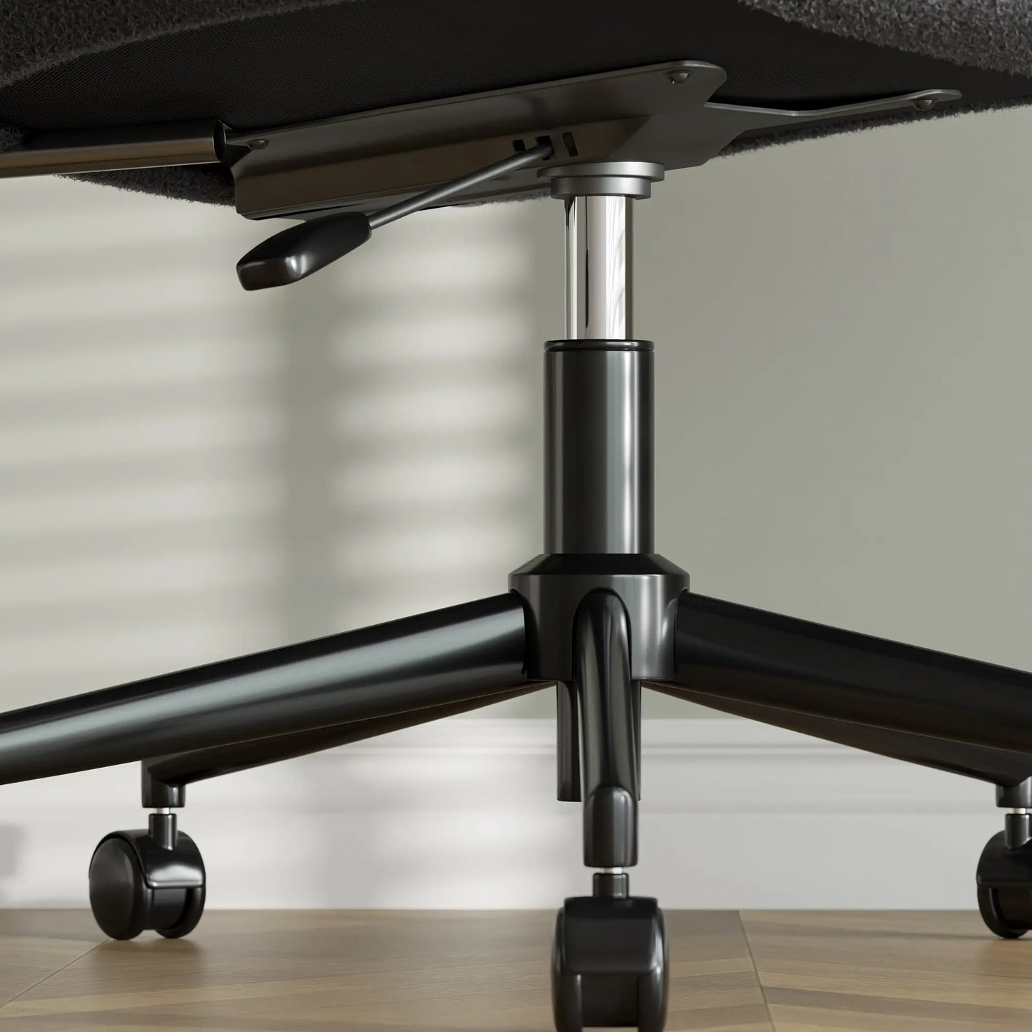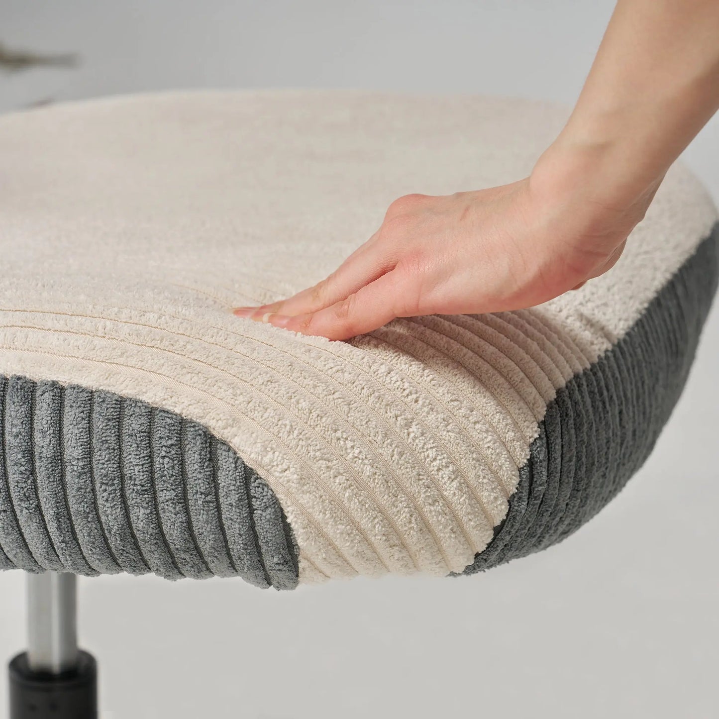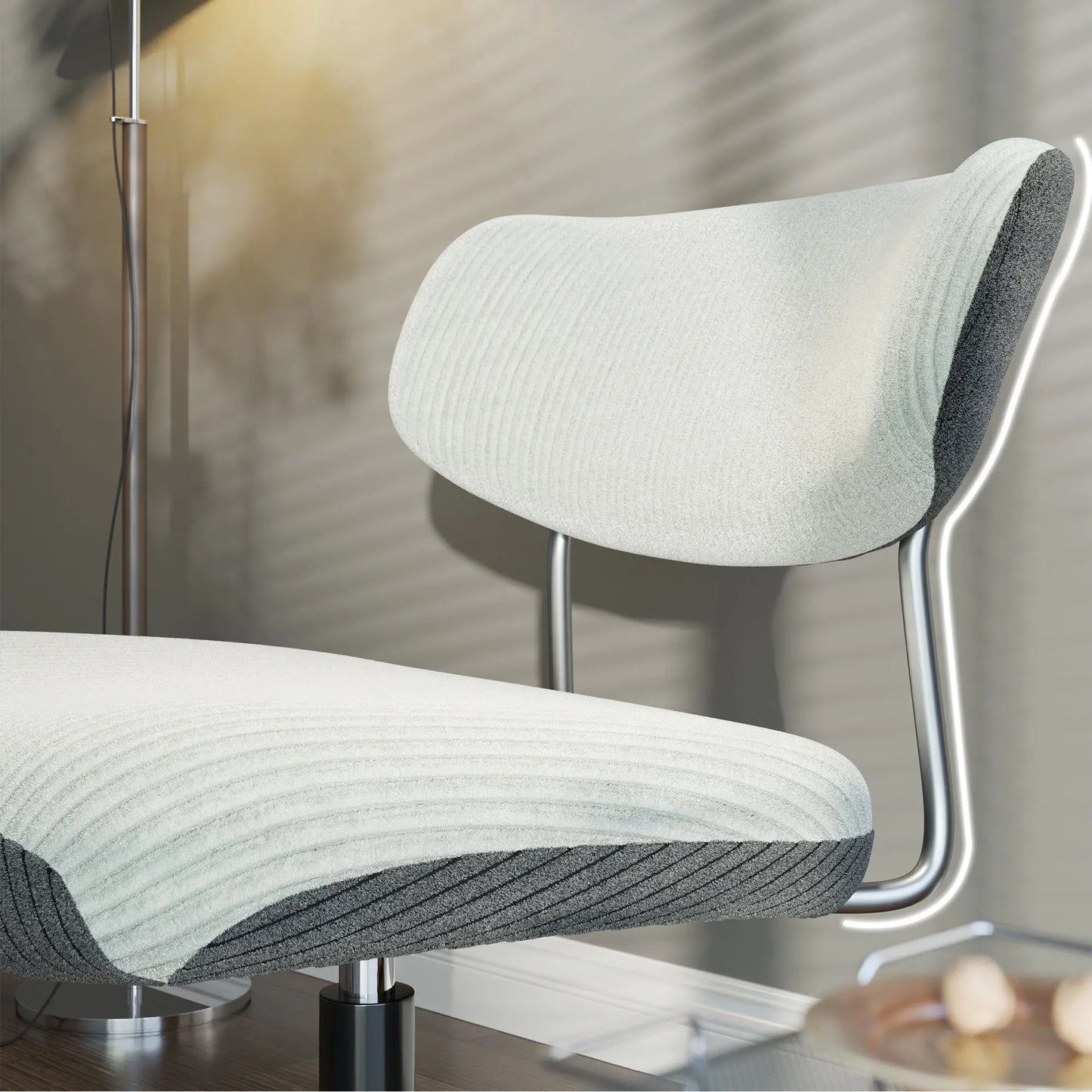 Cumulus swivel armless ergonomic chair with an ottoman set featuring an "S"-shaped backrest designed to support the spine's natural curve, reducing lower back strain. Its adjustable seat height allows users to customize their seating position for optimal comfort. The chair's 360-degree swivel base facilitates effortless movement around the workspace. With an armless design, it promotes unrestricted movement and comfortable sitting postures. Both the chair and ottoman are padded with high-density sponge and upholstered in soft fabric, providing plush comfort for extended periods. Reinforced stitching ensures durability, while the ottoman serves as a footrest, promoting circulation and reducing fatigue during long periods of use.