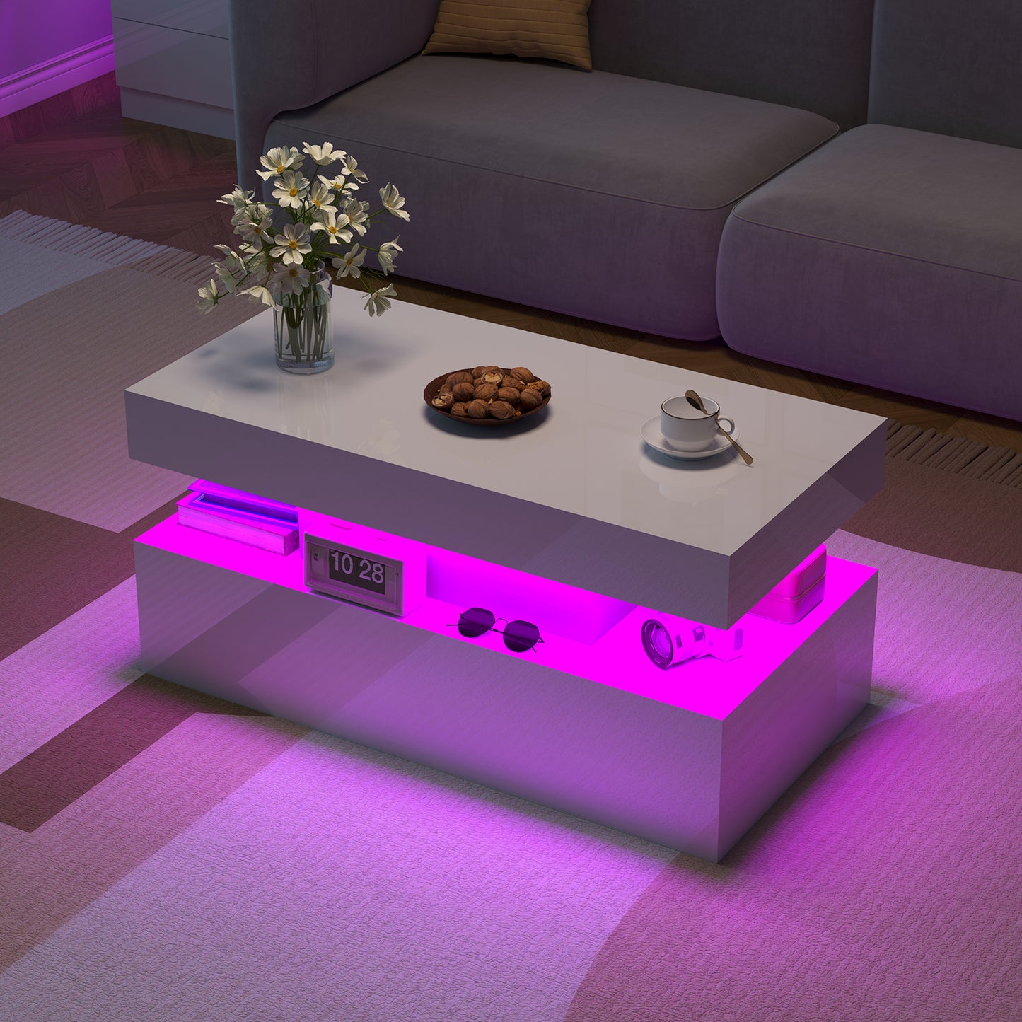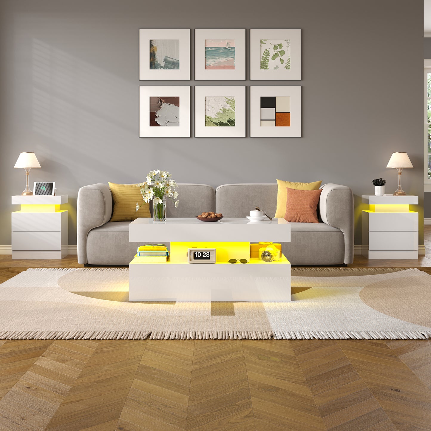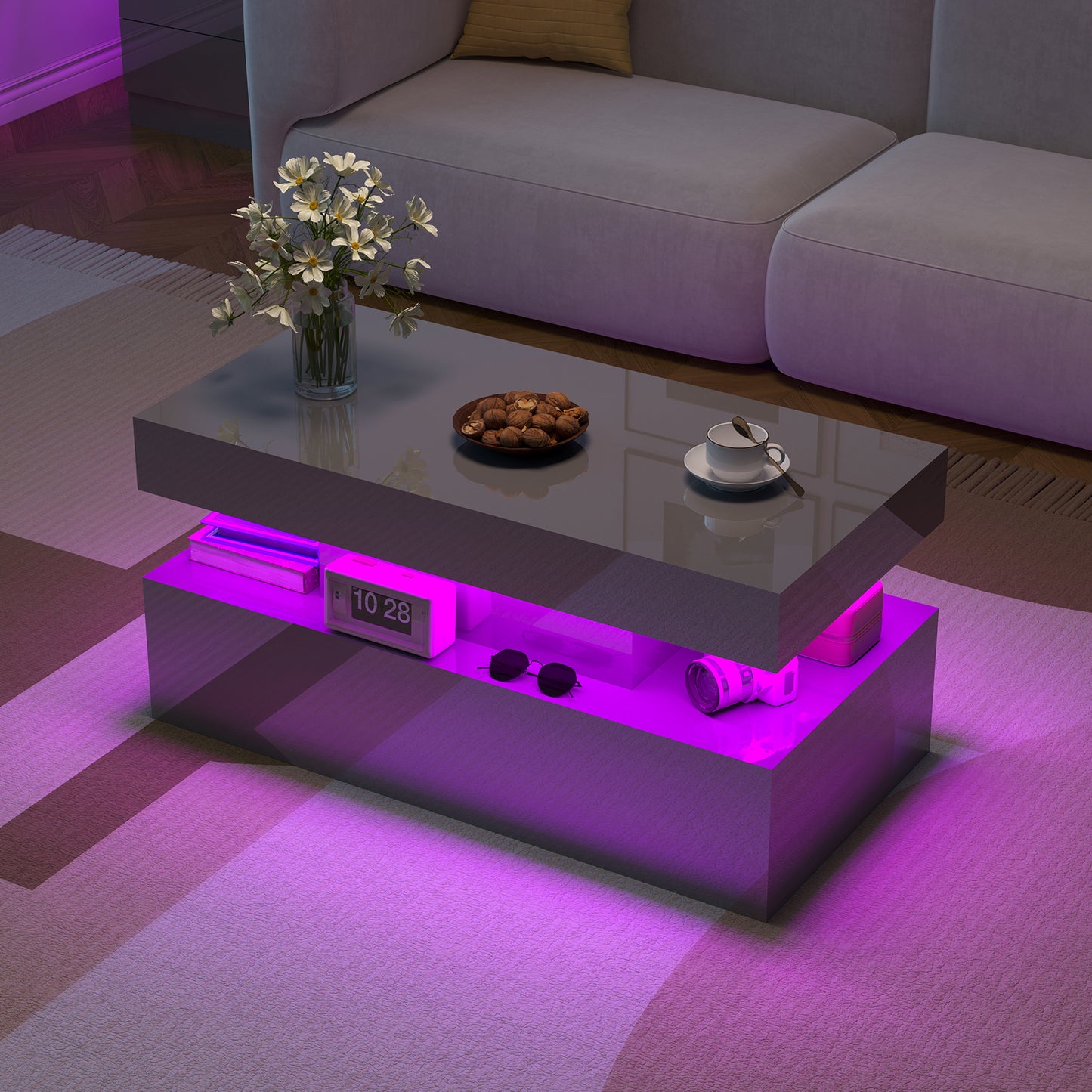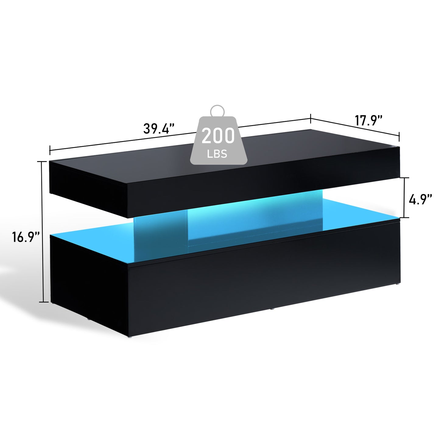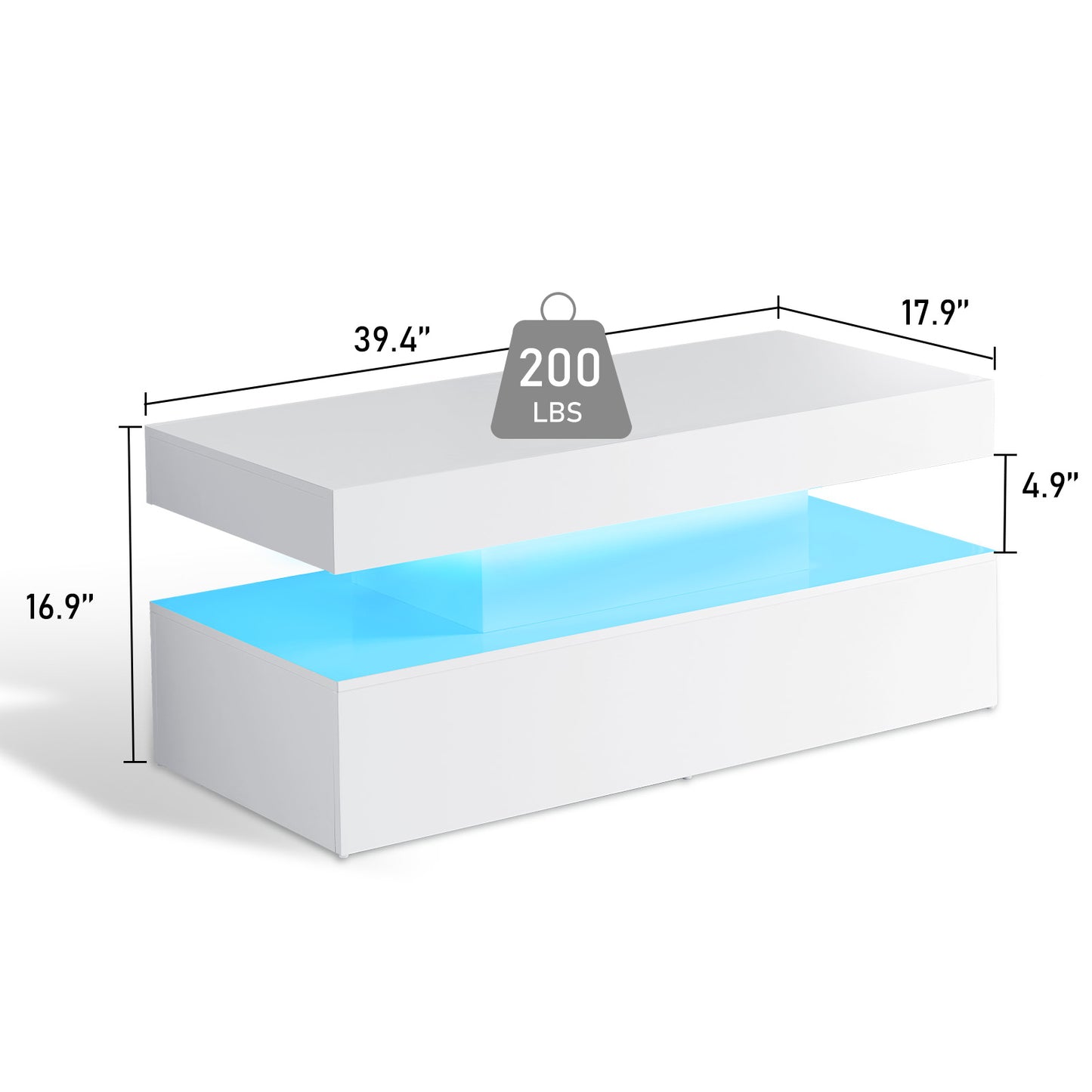 The Dimmesdale Coffee Table brings modern sophistication and functionality to your living space. With a UV high gloss finish and wood grain design, it features adjustable LED lighting with over 60,000 colors and dynamic modes controlled via remote or app. This 40-inch rectangular table offers a spacious tabletop, an open middle storage area, and a sturdy design supporting up to 220 lbs. Its minimalist aesthetic pairs seamlessly with sofas, TV stands, and various decor styles. Easy to assemble with clear instructions, it’s part of AMERLIFE’s complete matching furniture collection for a cohesive home experience.