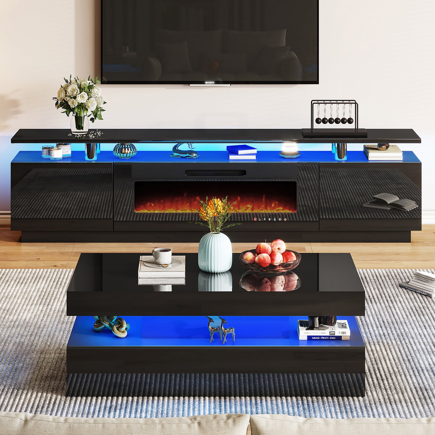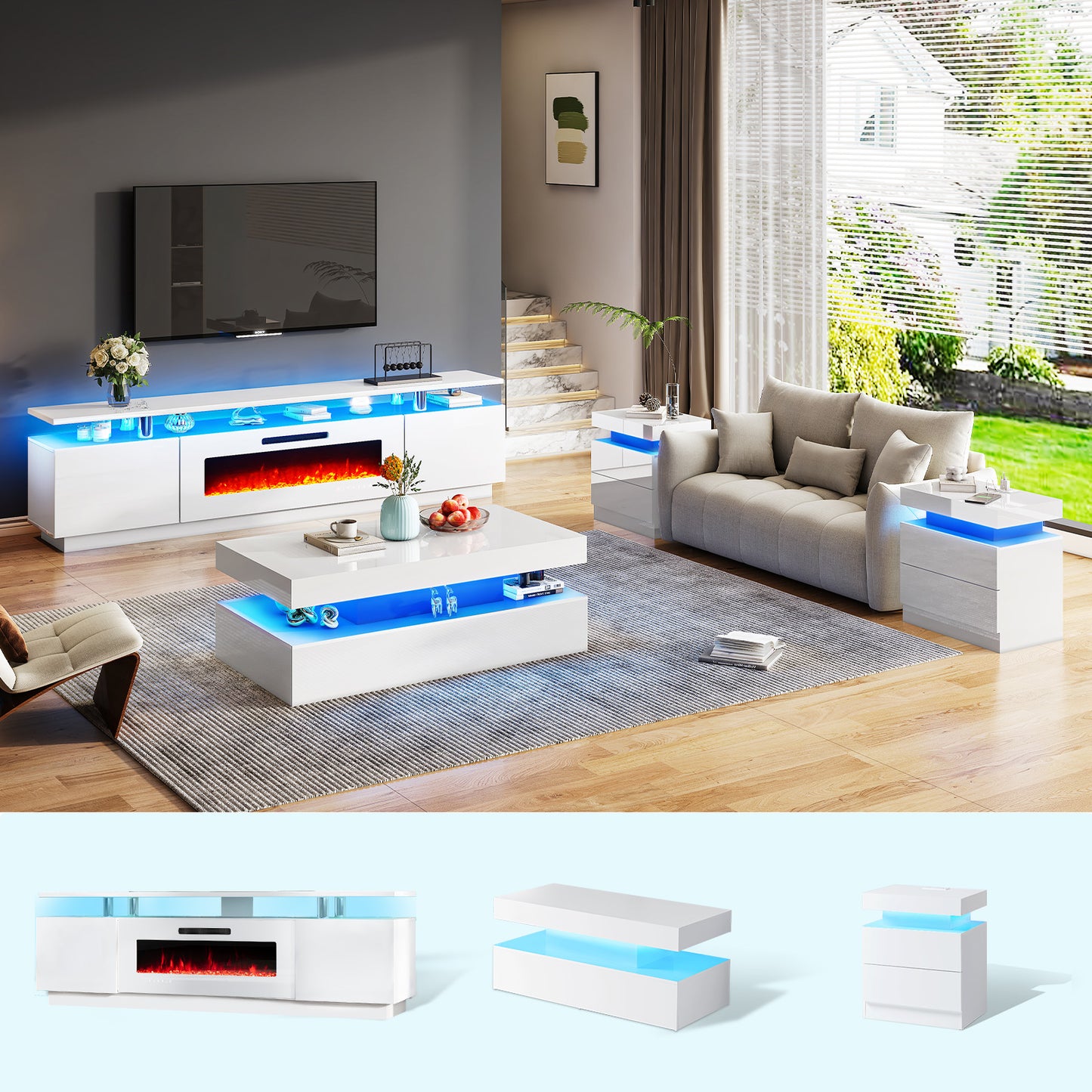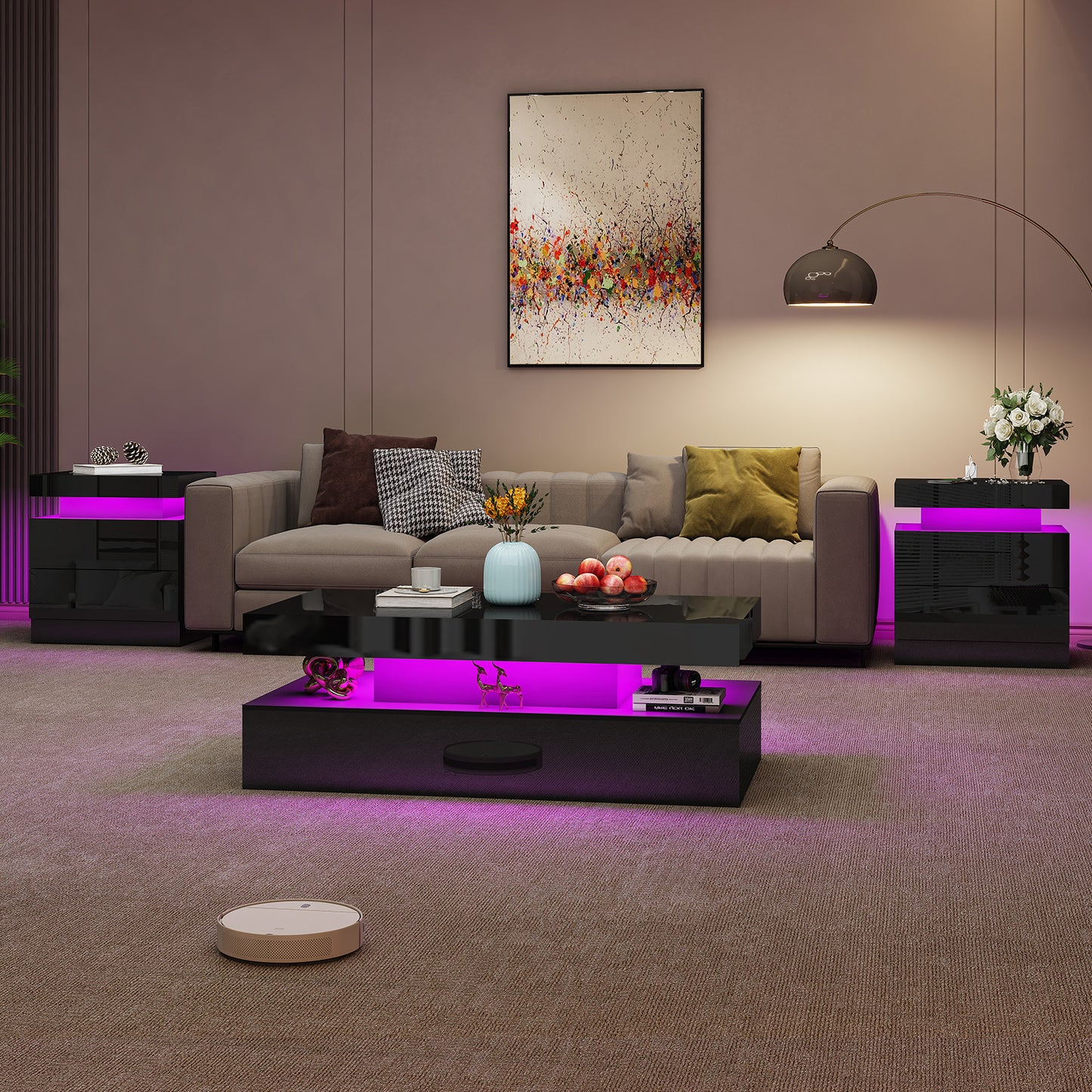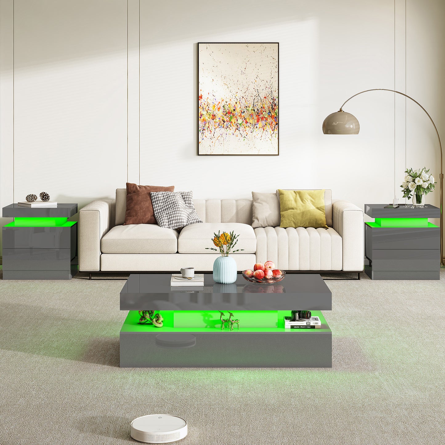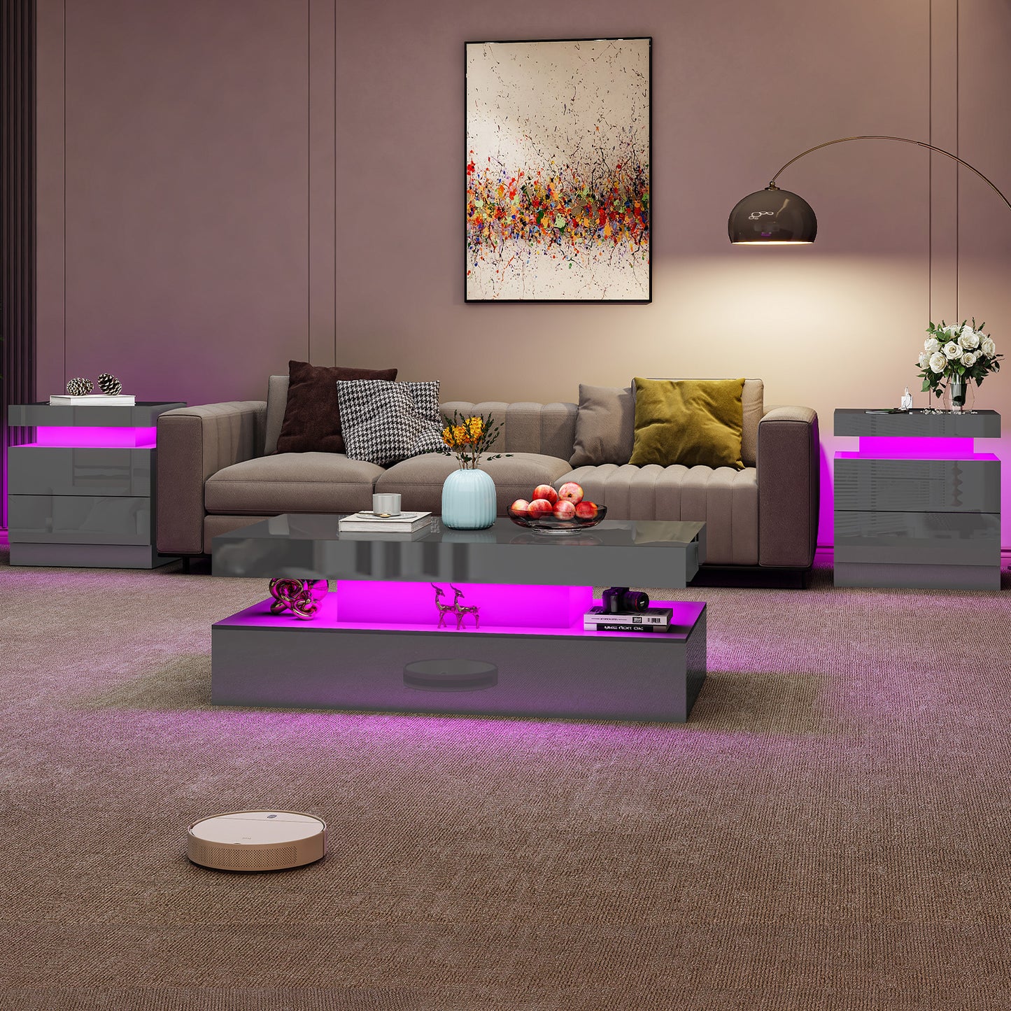 The Dimmesdale Coffee Table brings modern sophistication and functionality to your living space. With a UV high gloss finish and wood grain design, it features adjustable LED lighting with over 60,000 colors and dynamic modes controlled via remote or app. This 40-inch rectangular table offers a spacious tabletop, an open middle storage area, and a sturdy design supporting up to 220 lbs. Its minimalist aesthetic pairs seamlessly with sofas, TV stands, and various decor styles. Easy to assemble with clear instructions, it’s part of AMERLIFE’s complete matching furniture collection for a cohesive home experience.