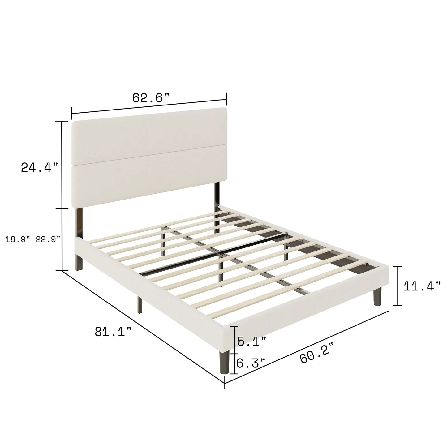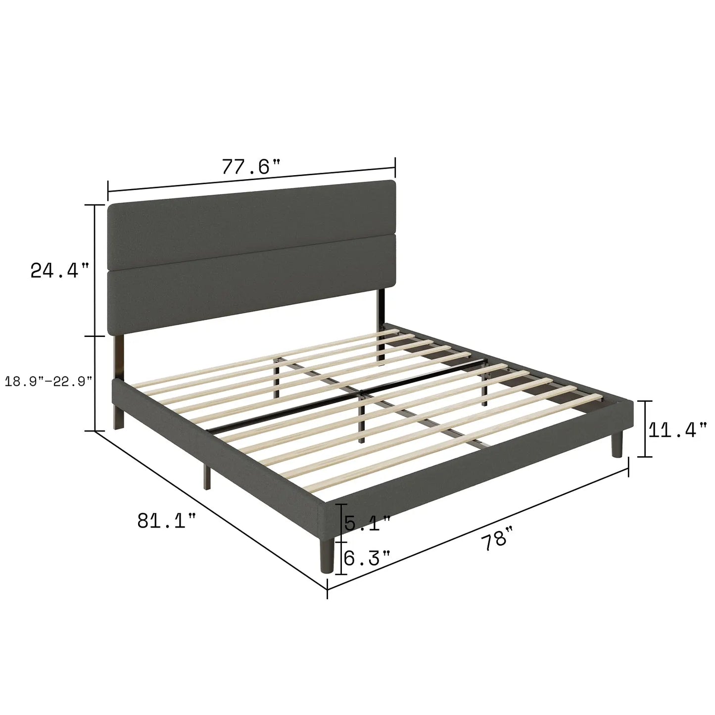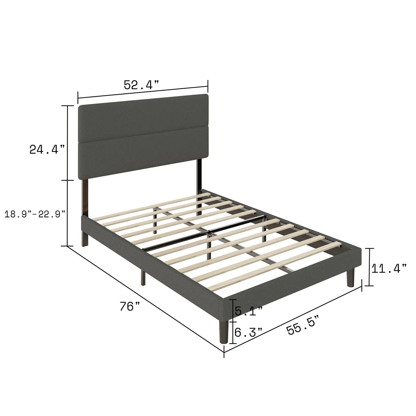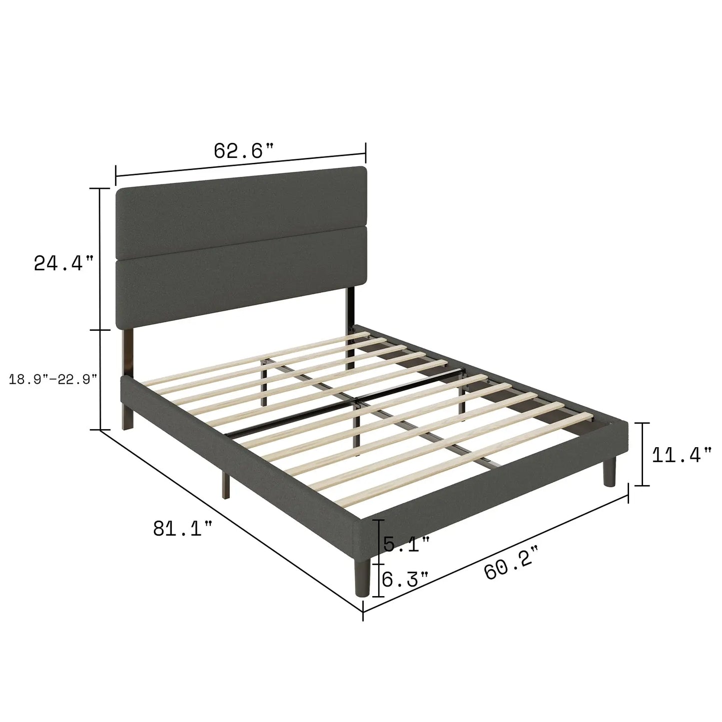 The bed frame with headboard has 3 heights adjustability, fits the needs of various mattress and box spring height combinations from 11.6" -15.6".