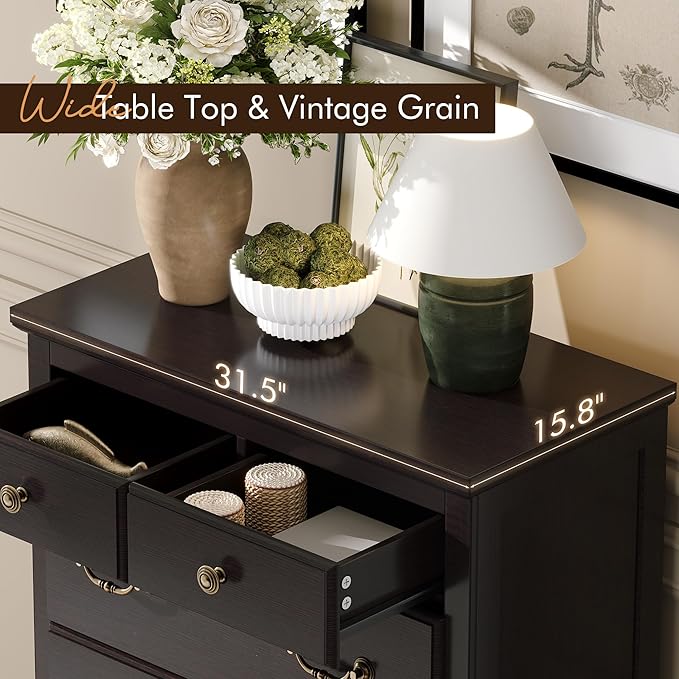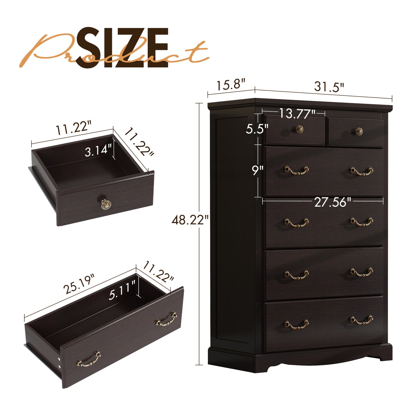 The Erebus 6-Drawer Dresser combines vintage farmhouse charm with practical functionality, making it a perfect storage solution for any room. Featuring 3D raised drawer fronts and antique bronze handles, this dresser exudes timeless elegance. With four spacious drawers for clothes and linens, plus two smaller drawers for accessories, it provides versatile organization options. Crafted with a thickened top and sturdy base, it ensures durability and stability for years of reliable use. Suitable for bedrooms, living rooms, or hallways, the Erebus Dresser adds both style and functionality to your space. Dimensions: 31.5"W x 15.8"D x 48.22"H.