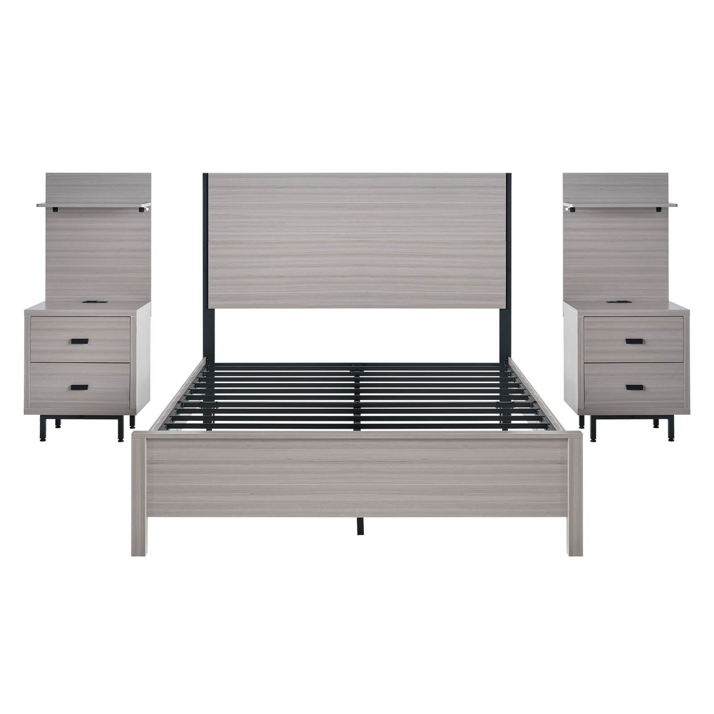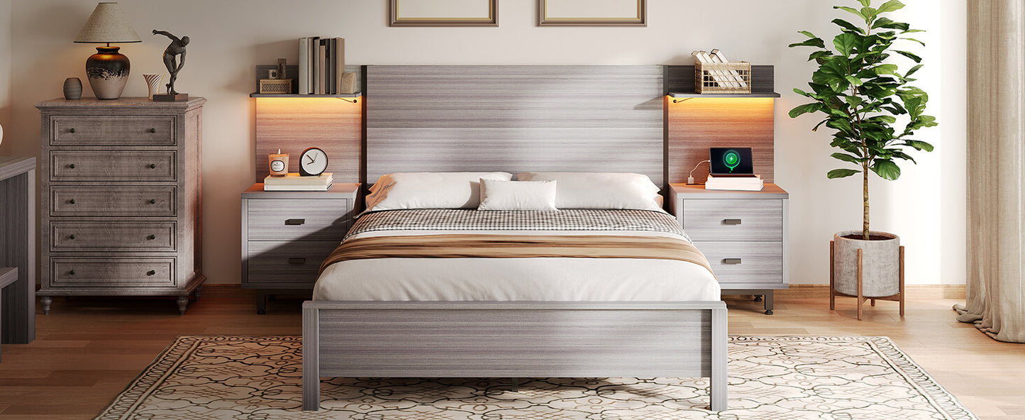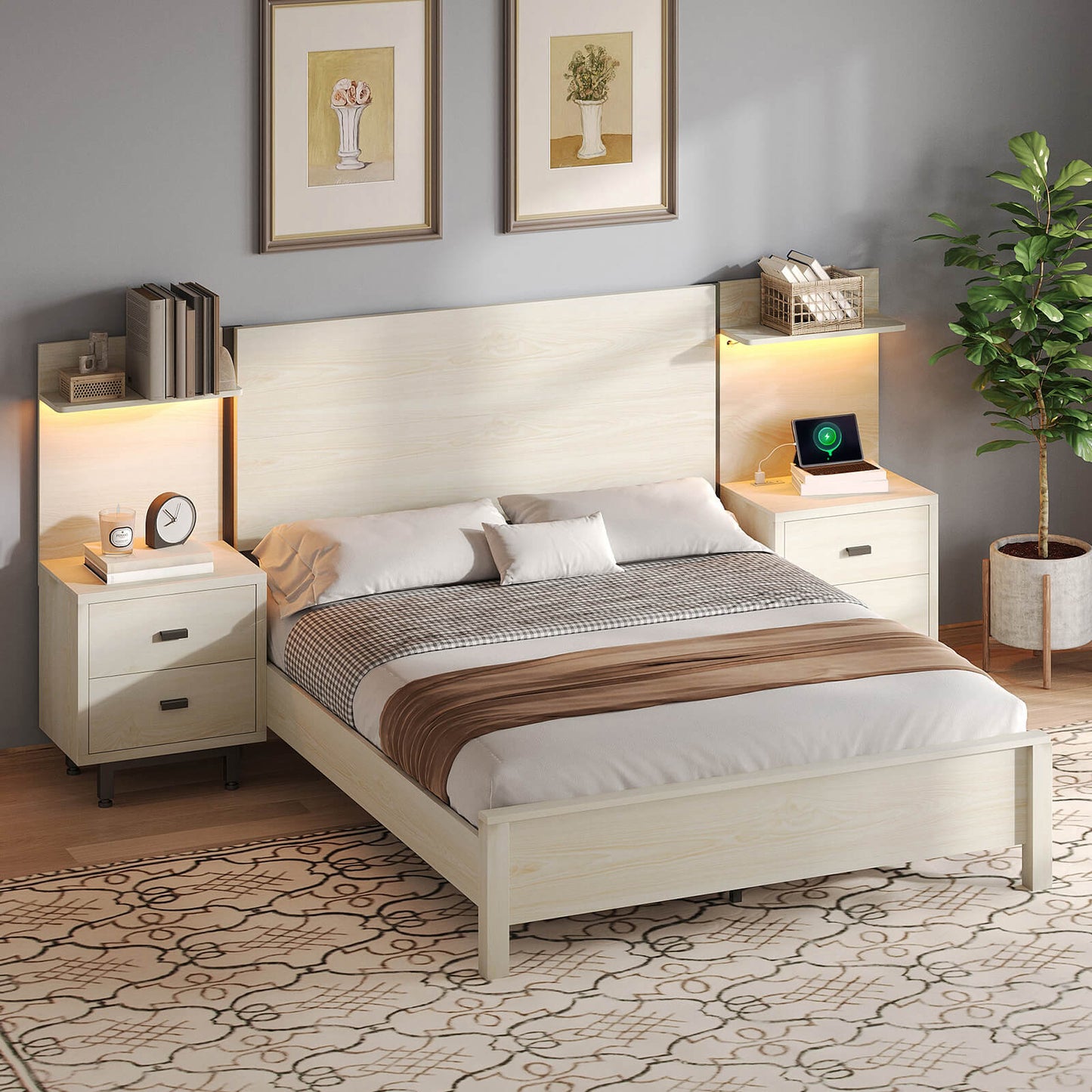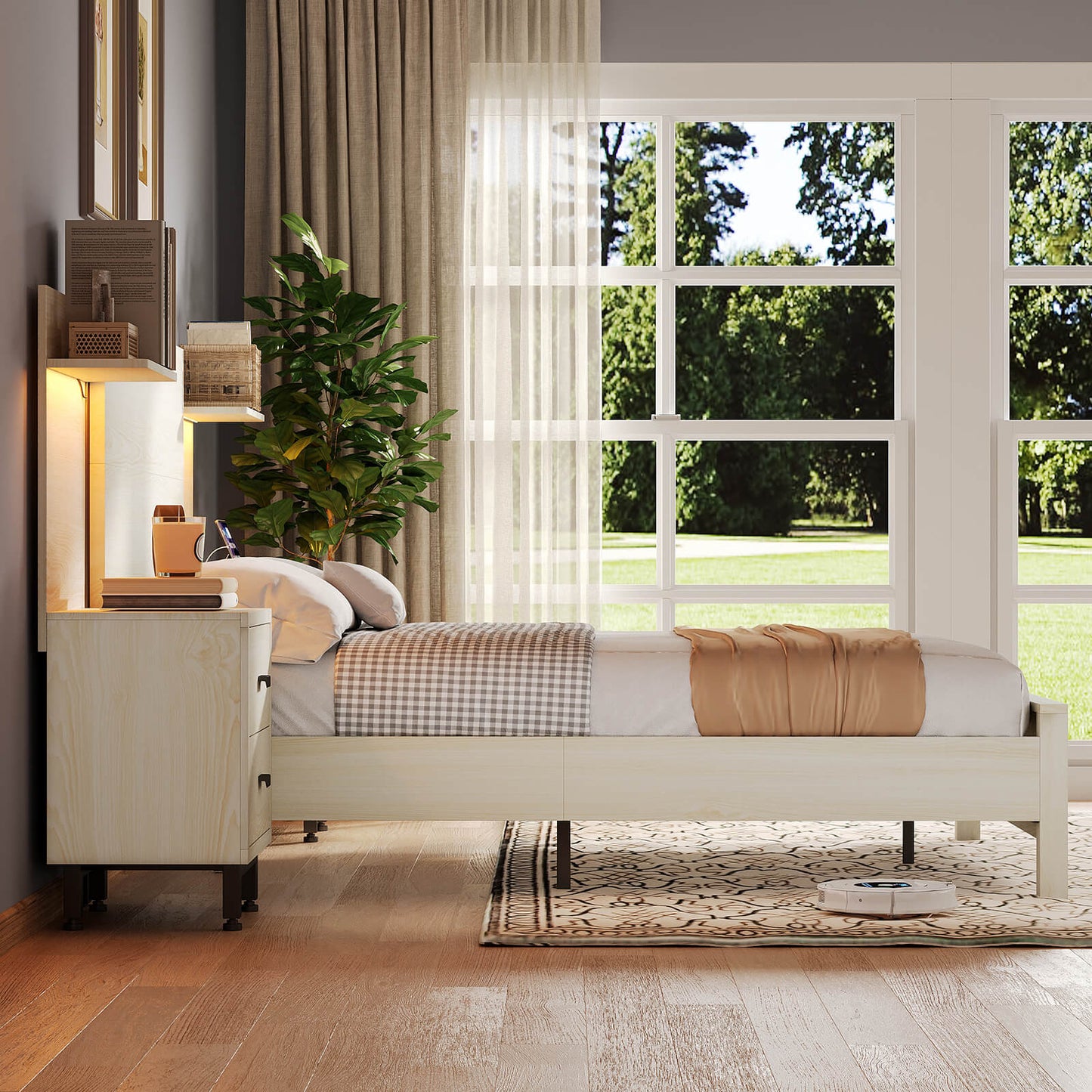 The platform bed each end table feature 2 large drawers, keeping your bedroom organized. Build-in power station including 2xAC outlets, 1xUSB ports, and 1xType C, making your life more convenient