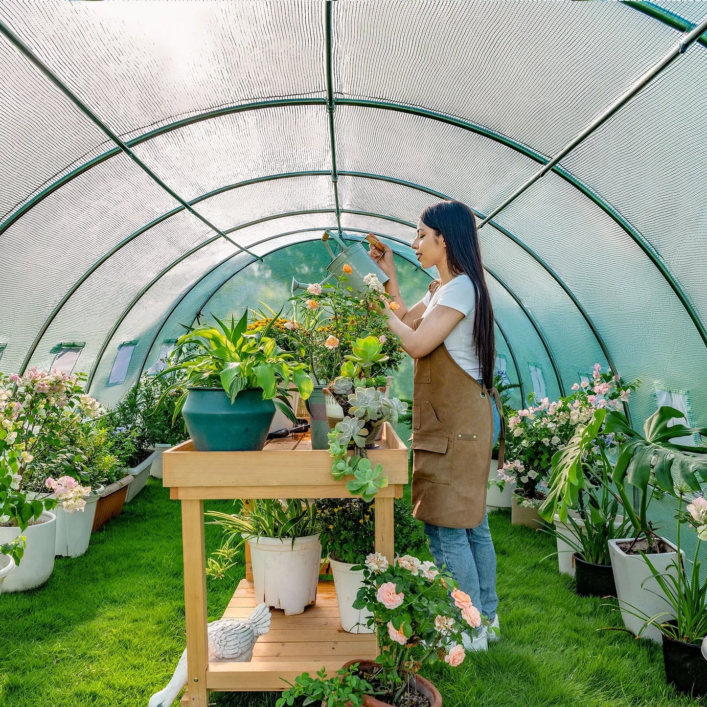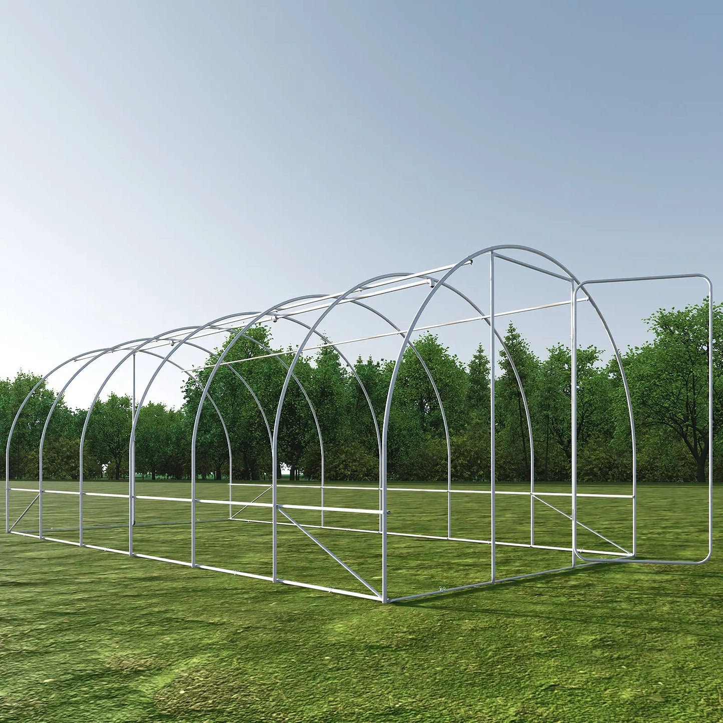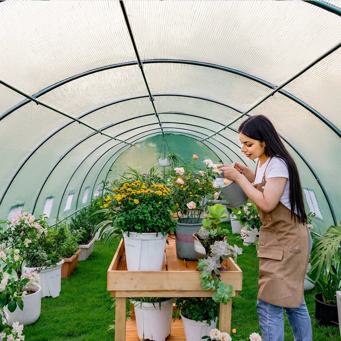 The Everglade ring greenhouse frame has 7 rows of crossbars, the cover is made of 140g/m durable PE material, and the double-stranded edges are more durable for at least 2 years of use, keeping your plants protected from direct UV rays and will not fade. Save water to the maximum extent by adjusting the density, size, and range of water. The arched shape encloses a large space for the tunnel greenhouse, which is convenient for growing various plants, such as vegetables, potatoes, tomatoes, plants, etc. It is also easy to place the greenhouse outdoors.