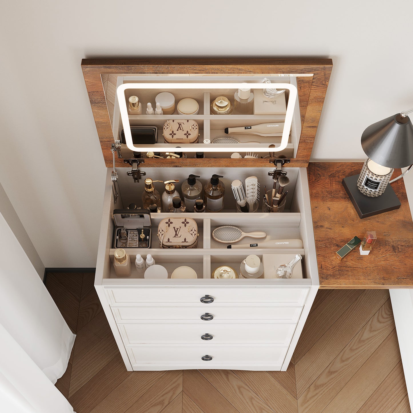 The cabinet's fold-up capability turns it into a triple threat: a sideboard, Makeup Vanity Desk, and Table and chair set.Allows you to change products according to usage scenarios, combining aesthetics and functionality
