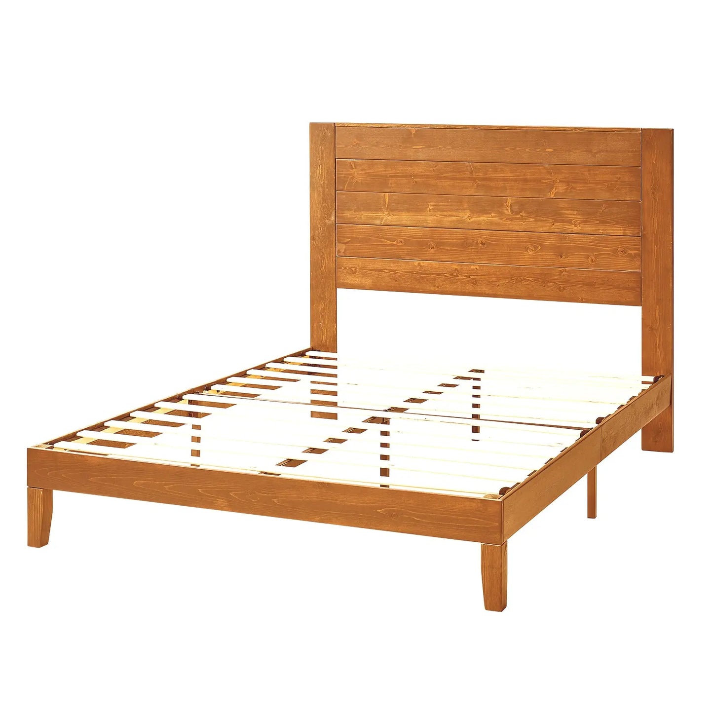 Inspired by mid-century modern style, full size bed frame is made of solid wood, headboard adopts a splicing design, ensuring durability and longevity while showing the natural beauty of wood.