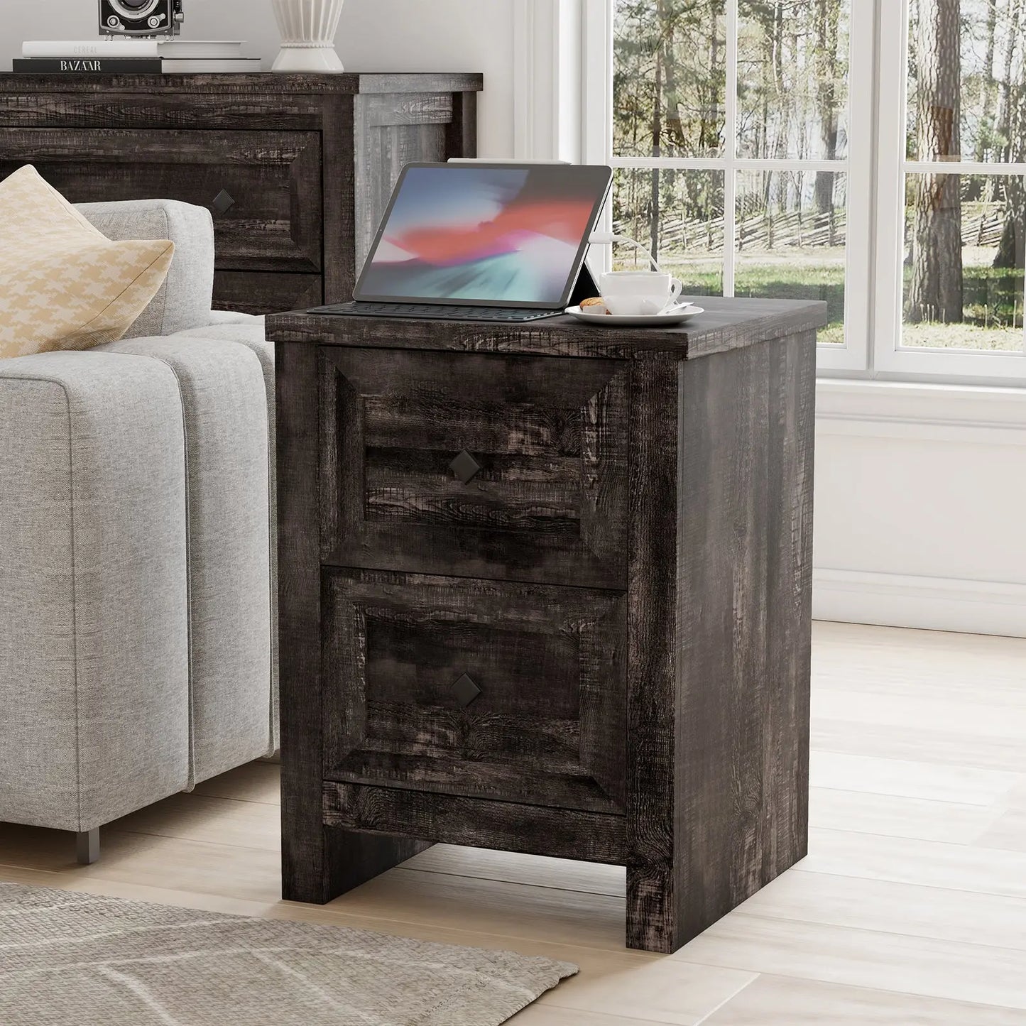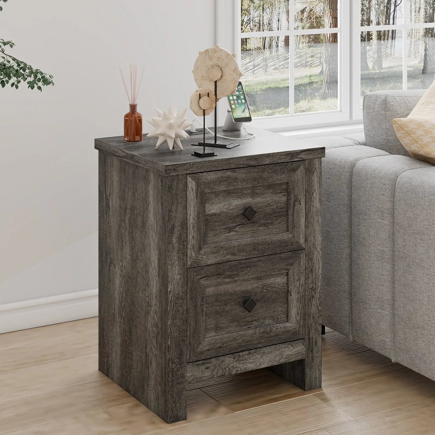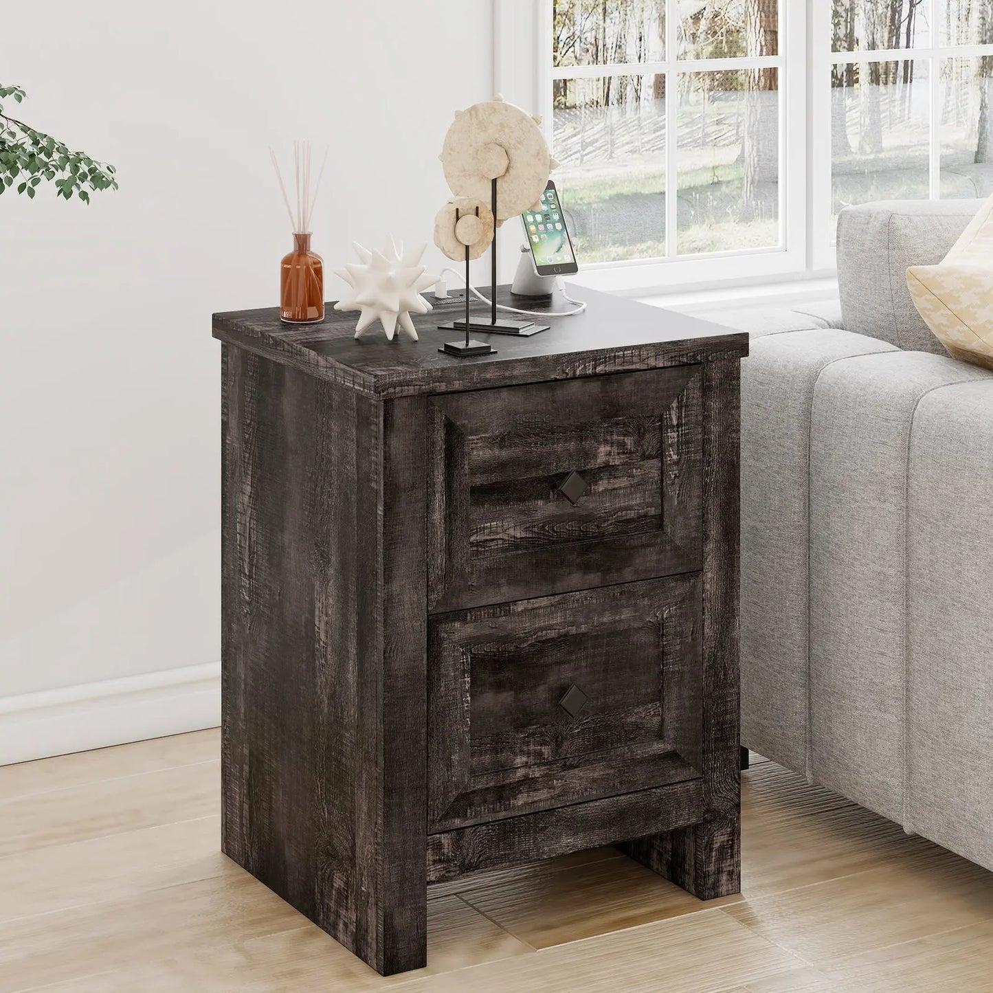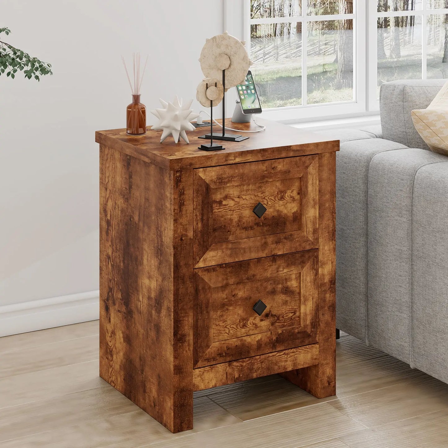 The design of the bedside table is perfectly integrated with a variety of decoration styles, both vintage and rustic. The wooden farmhouse-style end table with storage can be placed in the bedroom or in the living room.