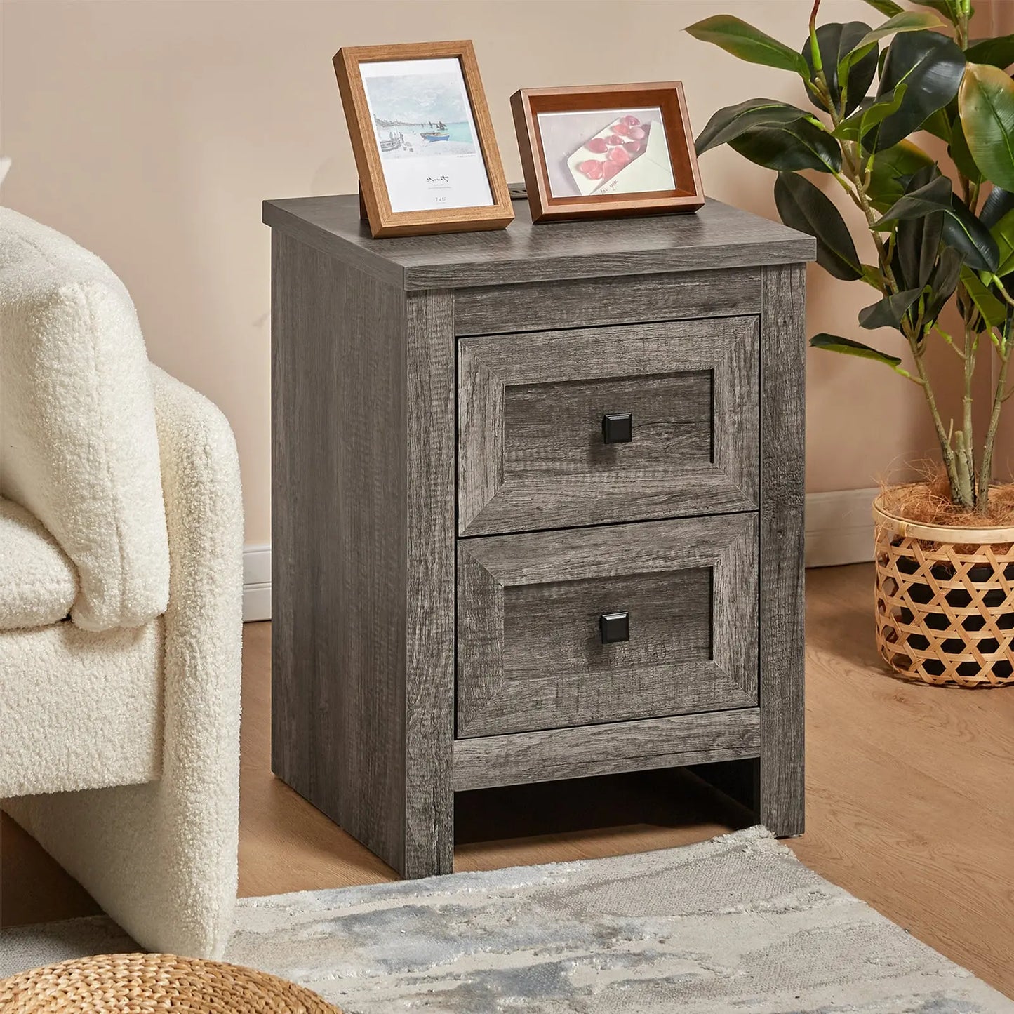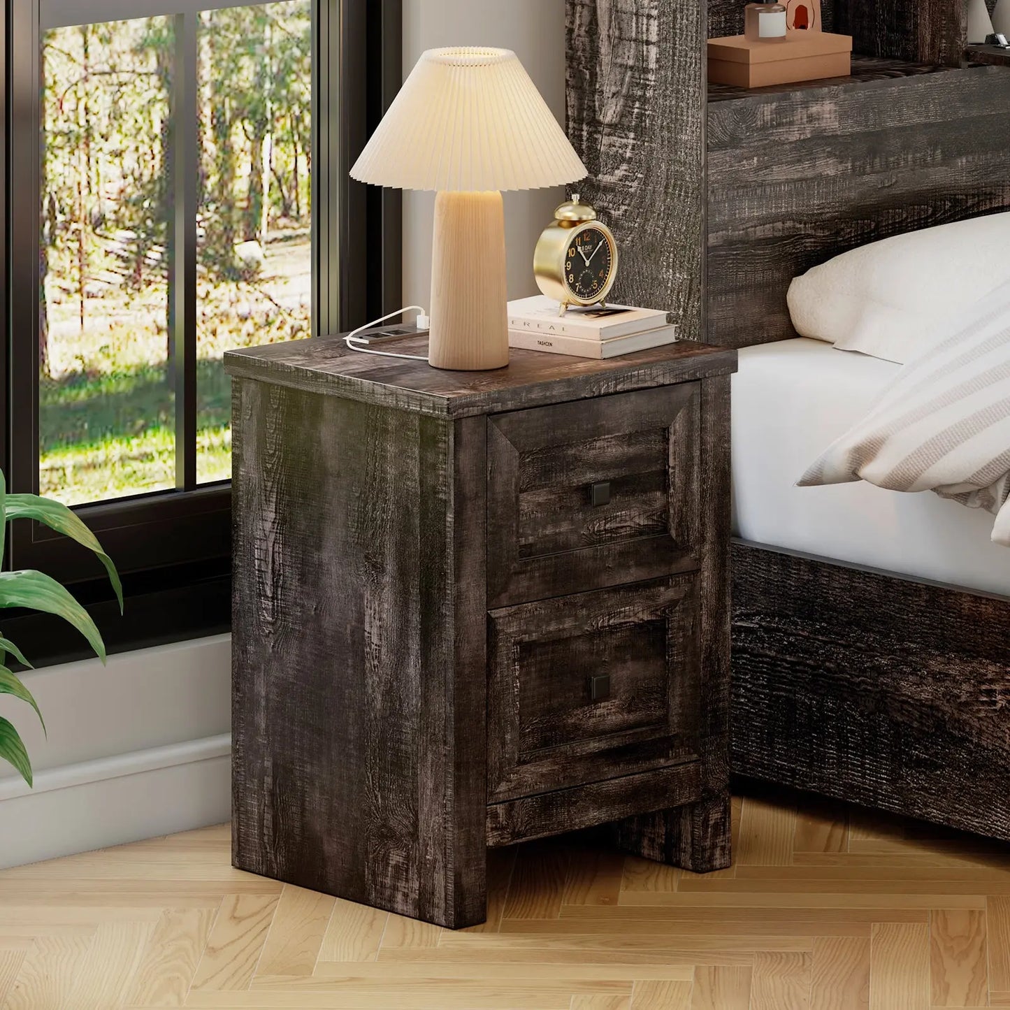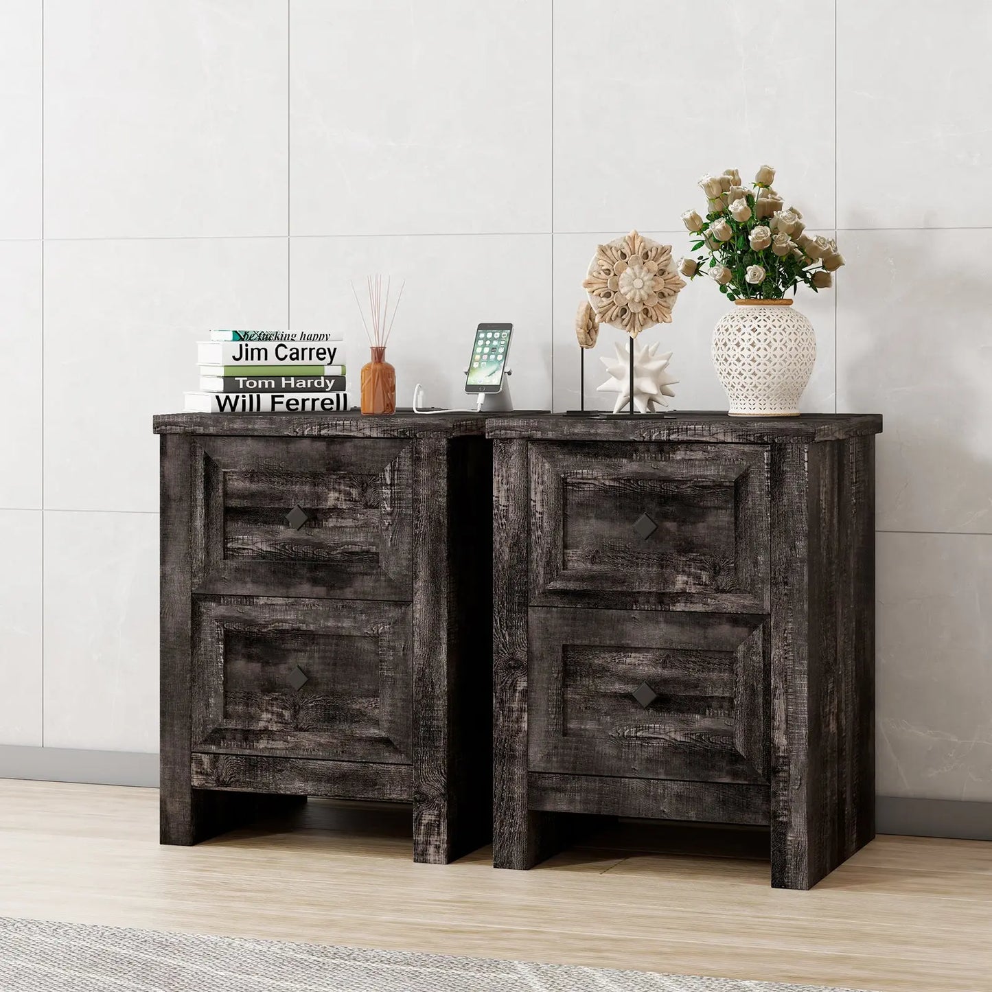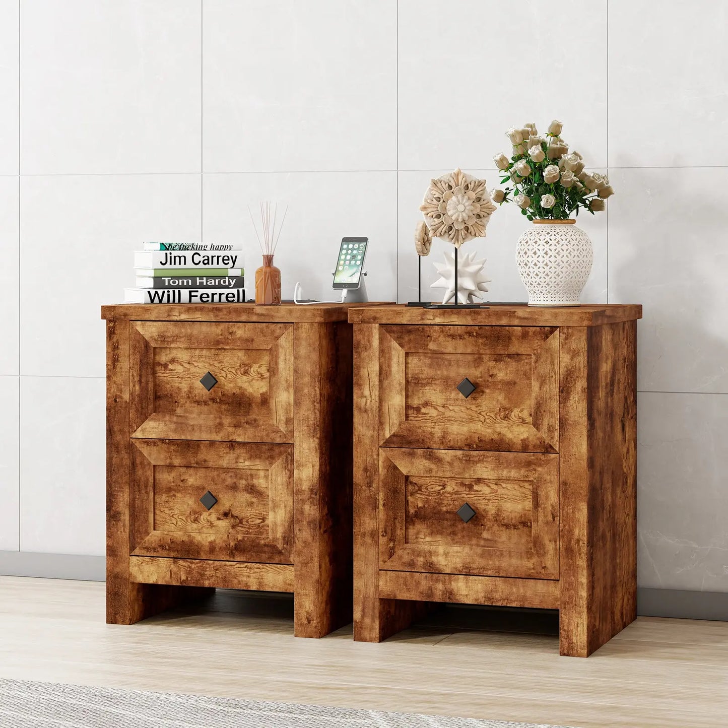 The design of the bedside table is perfectly integrated with a variety of decoration styles, both vintage and rustic. The wooden farmhouse-style end table with storage can be placed in the bedroom or in the living room.