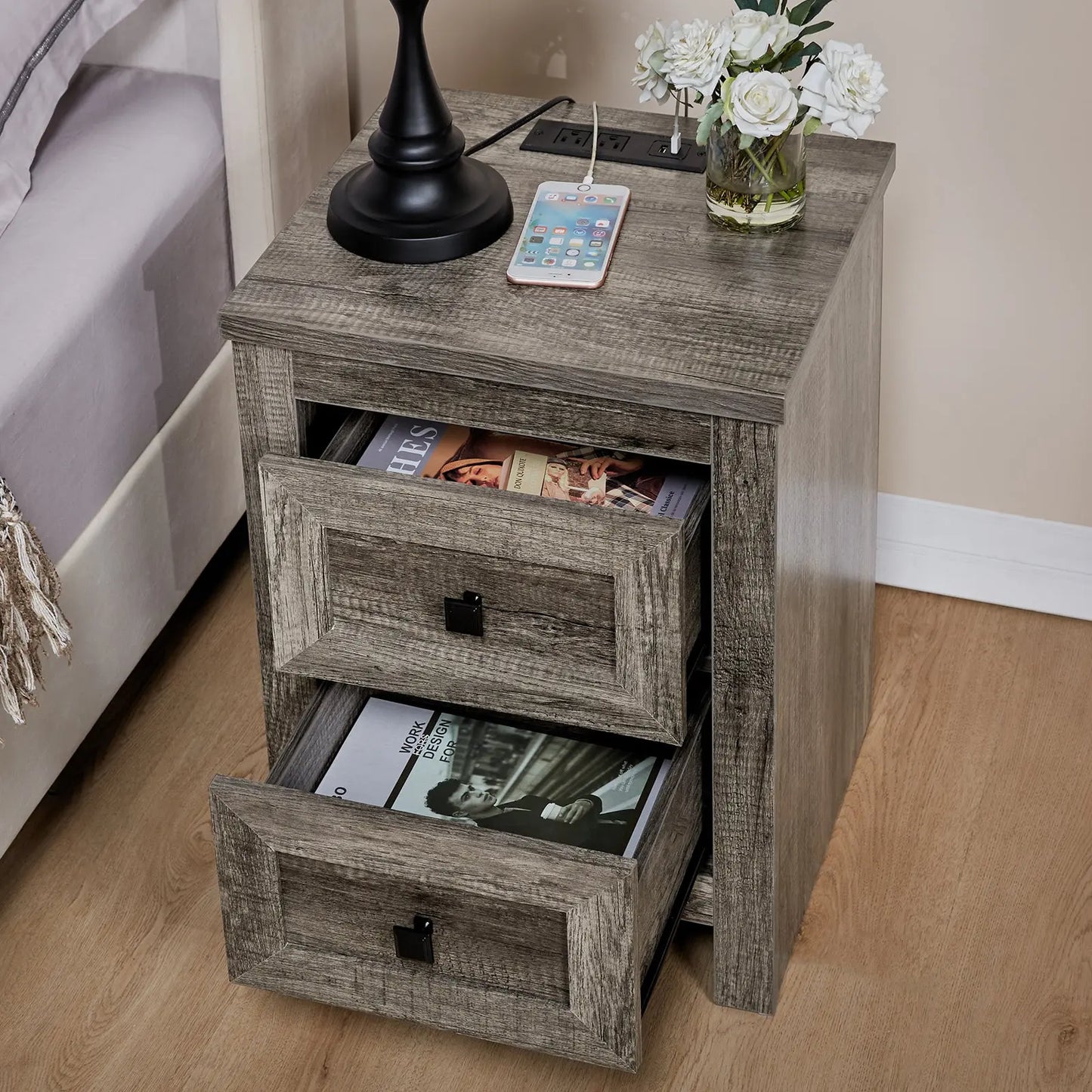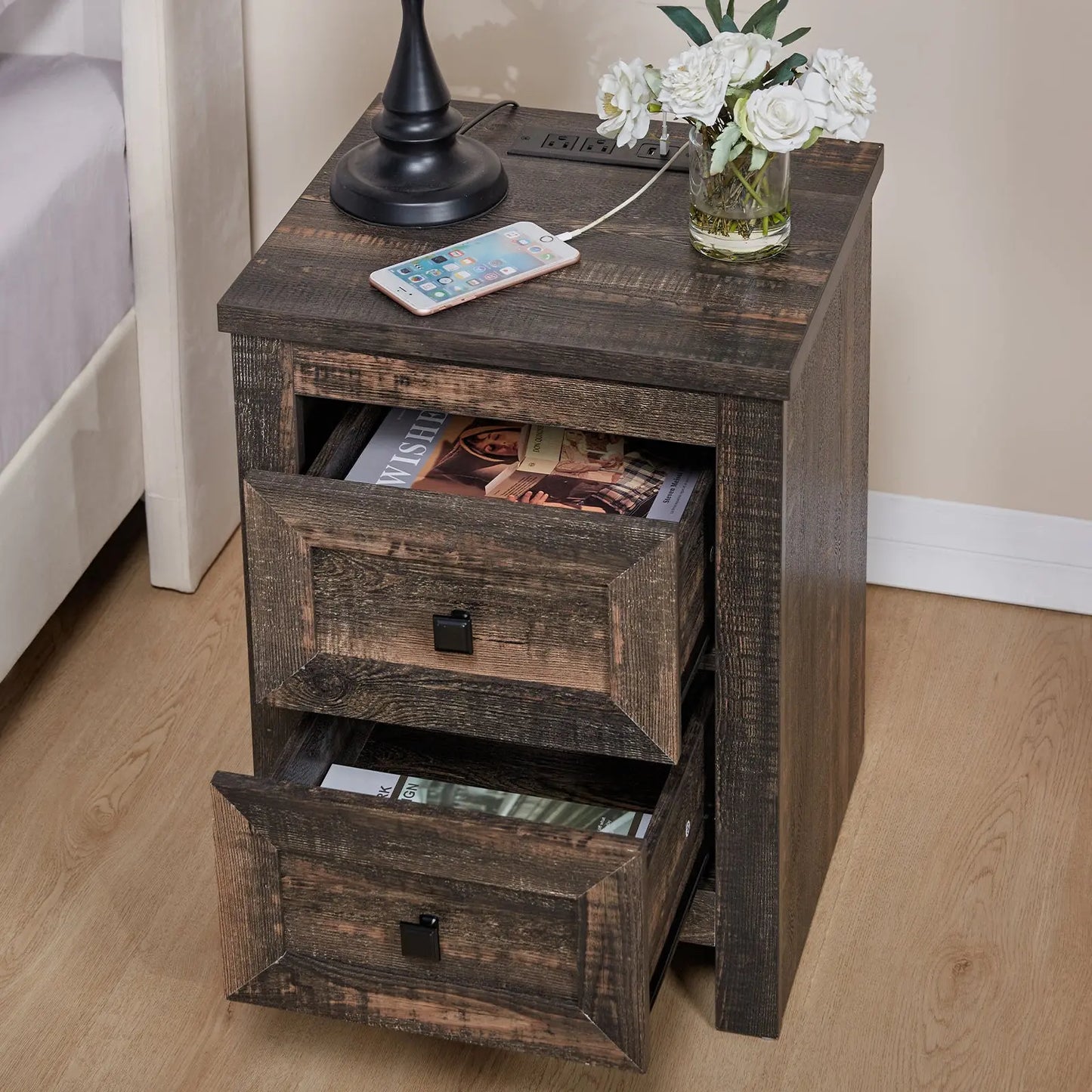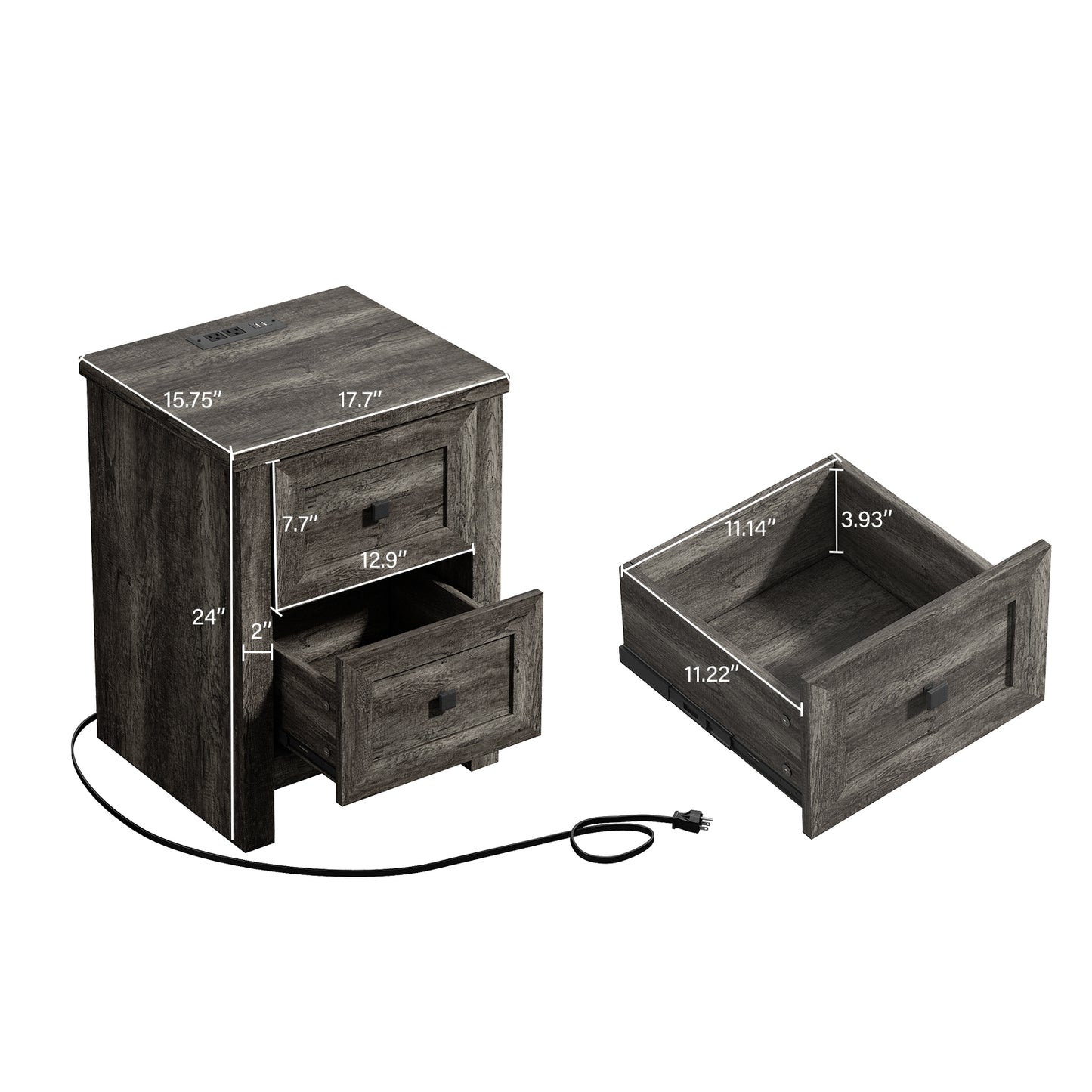 This nightstand with charging station is arranged with 2 Standard AC Outlets and 4 USB ports. Side table with a hole at the back for organizing cords, making the desk neater while providing convenience for charging your devices such as cell phones, tablets, earphones.