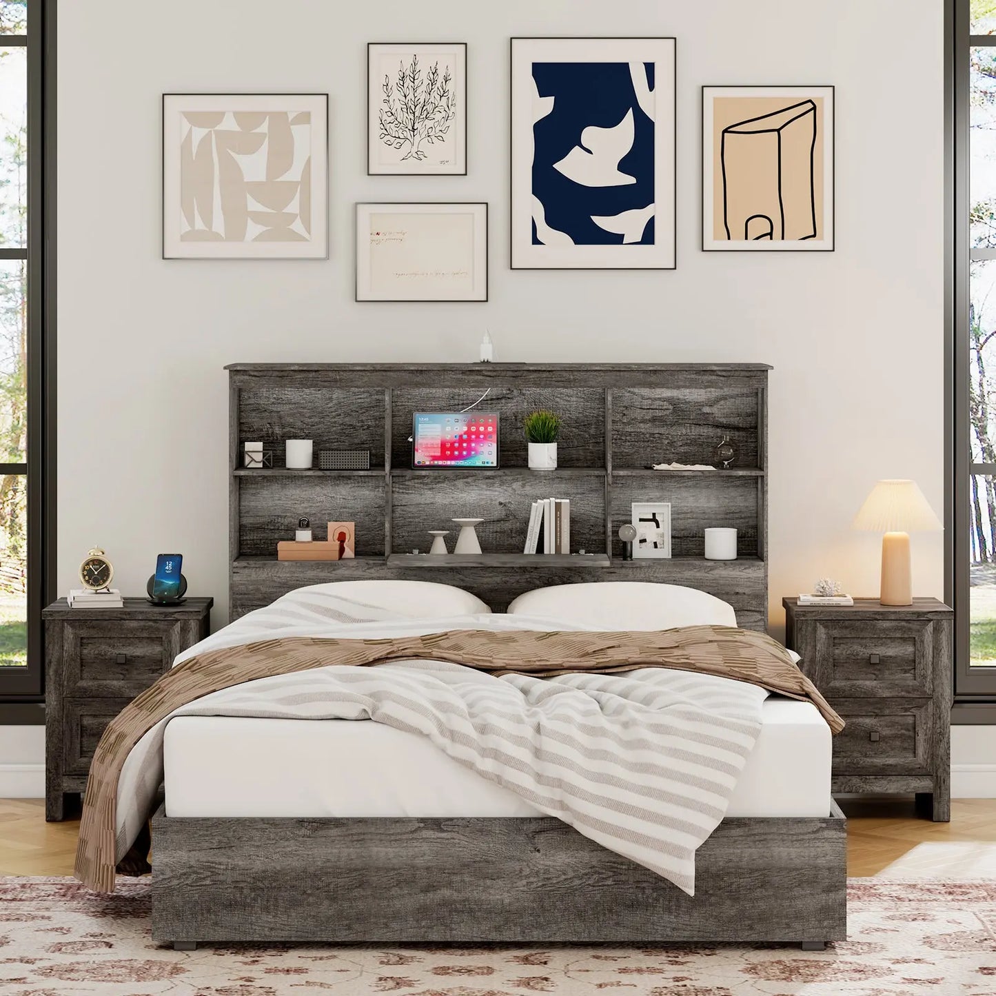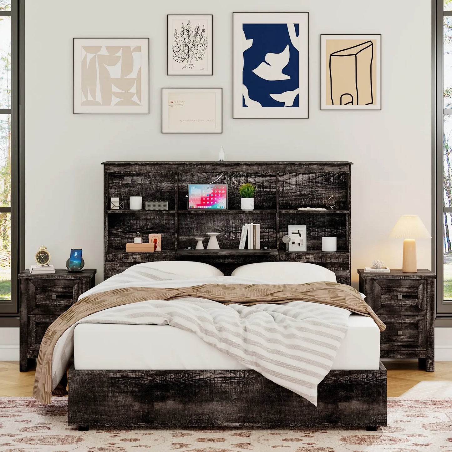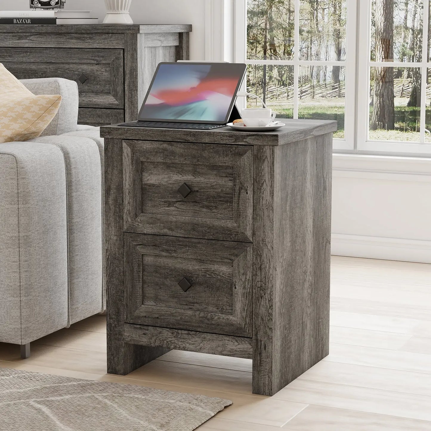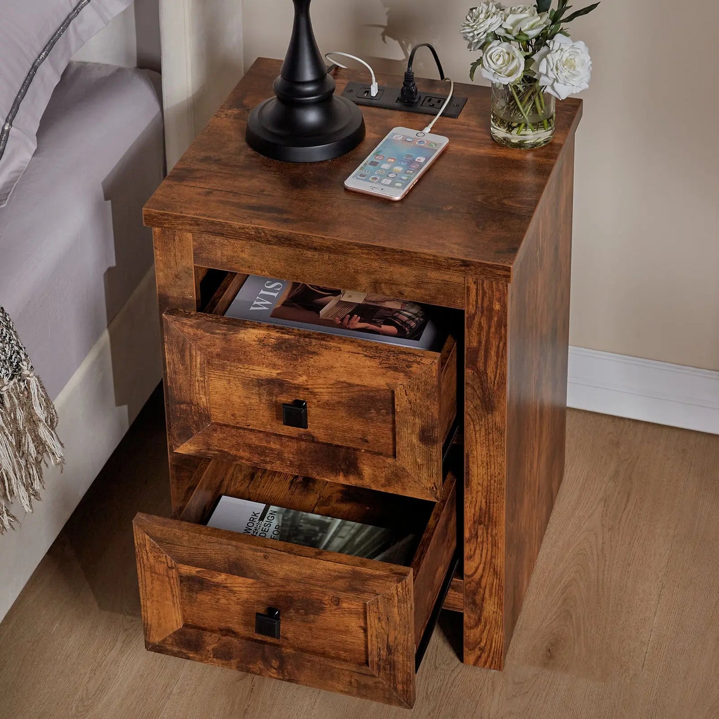 This nightstand with charging station is arranged with 2 Standard AC Outlets and 4 USB ports. Side table with a hole at the back for organizing cords, making the desk neater while providing convenience for charging your devices such as cell phones, tablets, earphones.