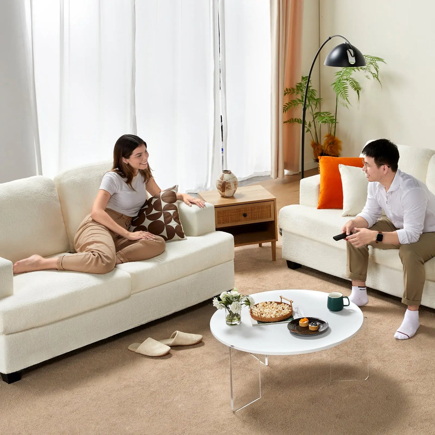Upholstered in cloud-like bouclé fabric, this creamy couch adds warmth and calmness to your home, embracing modern minimalist style.
