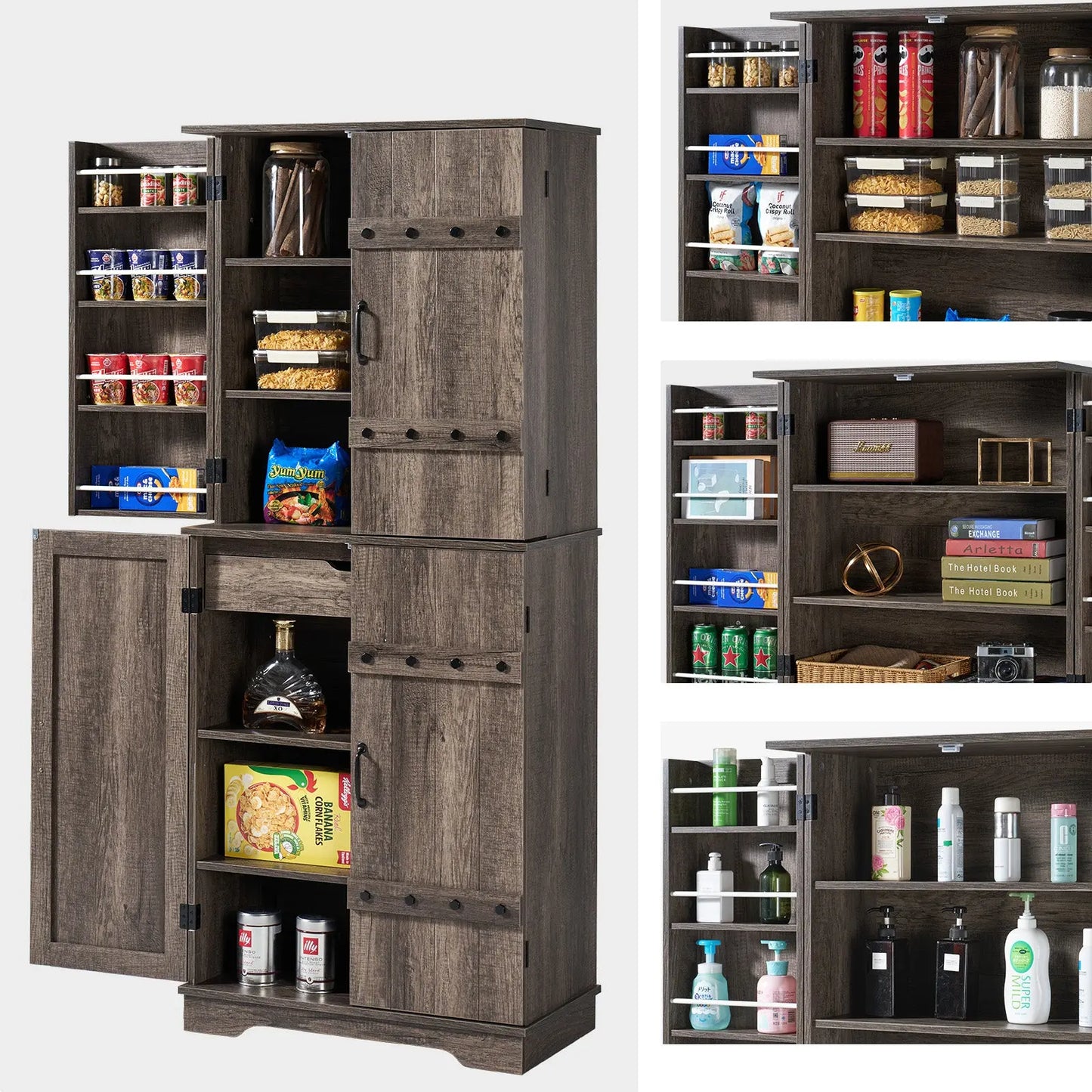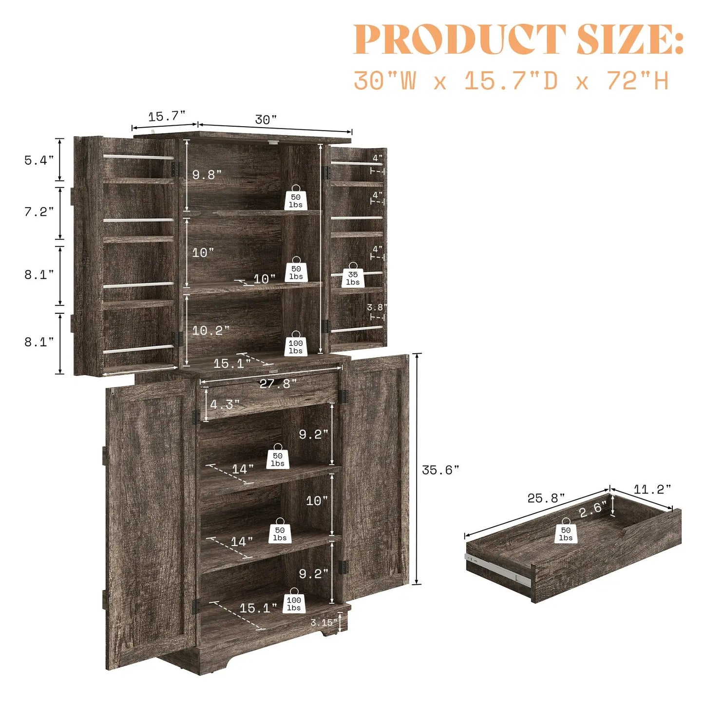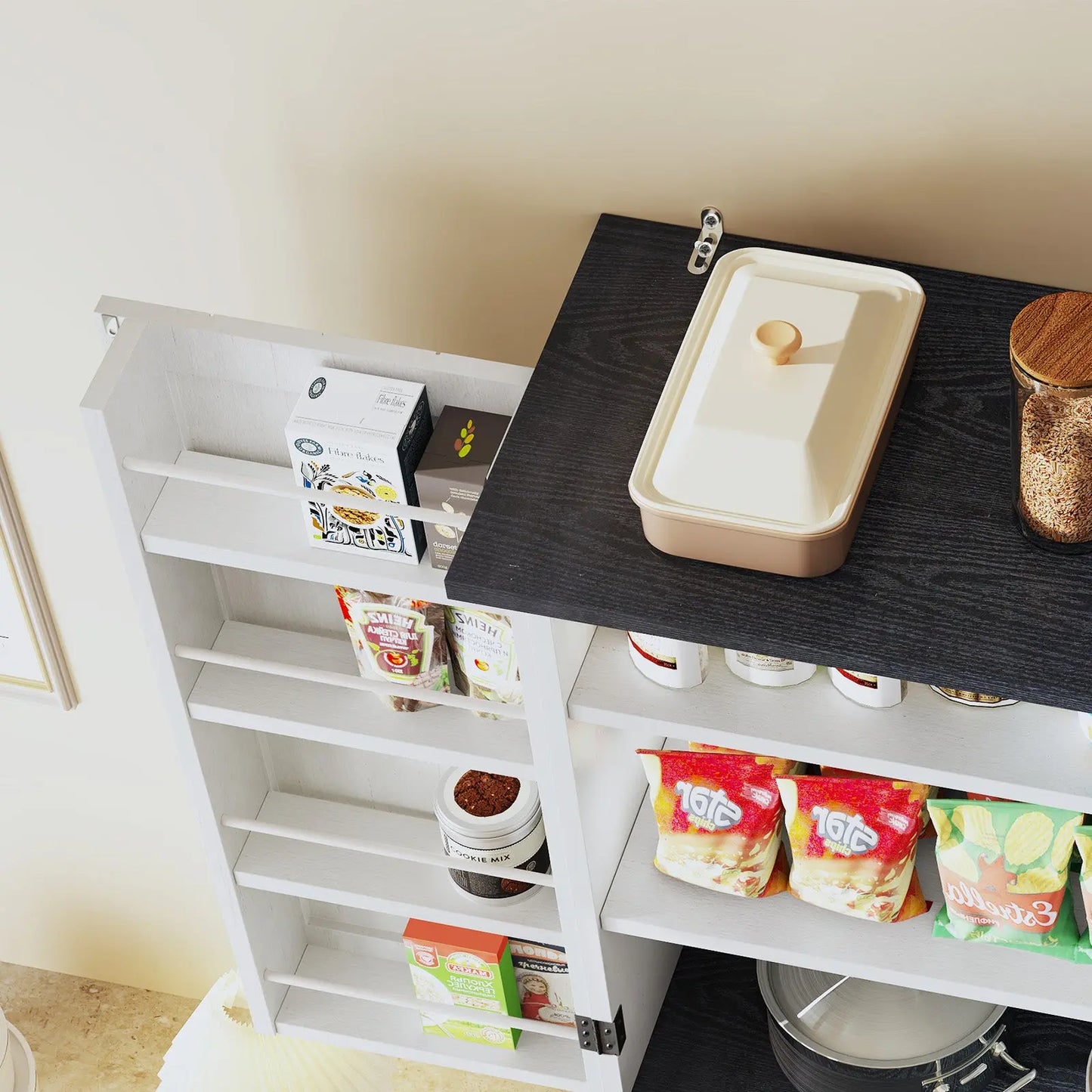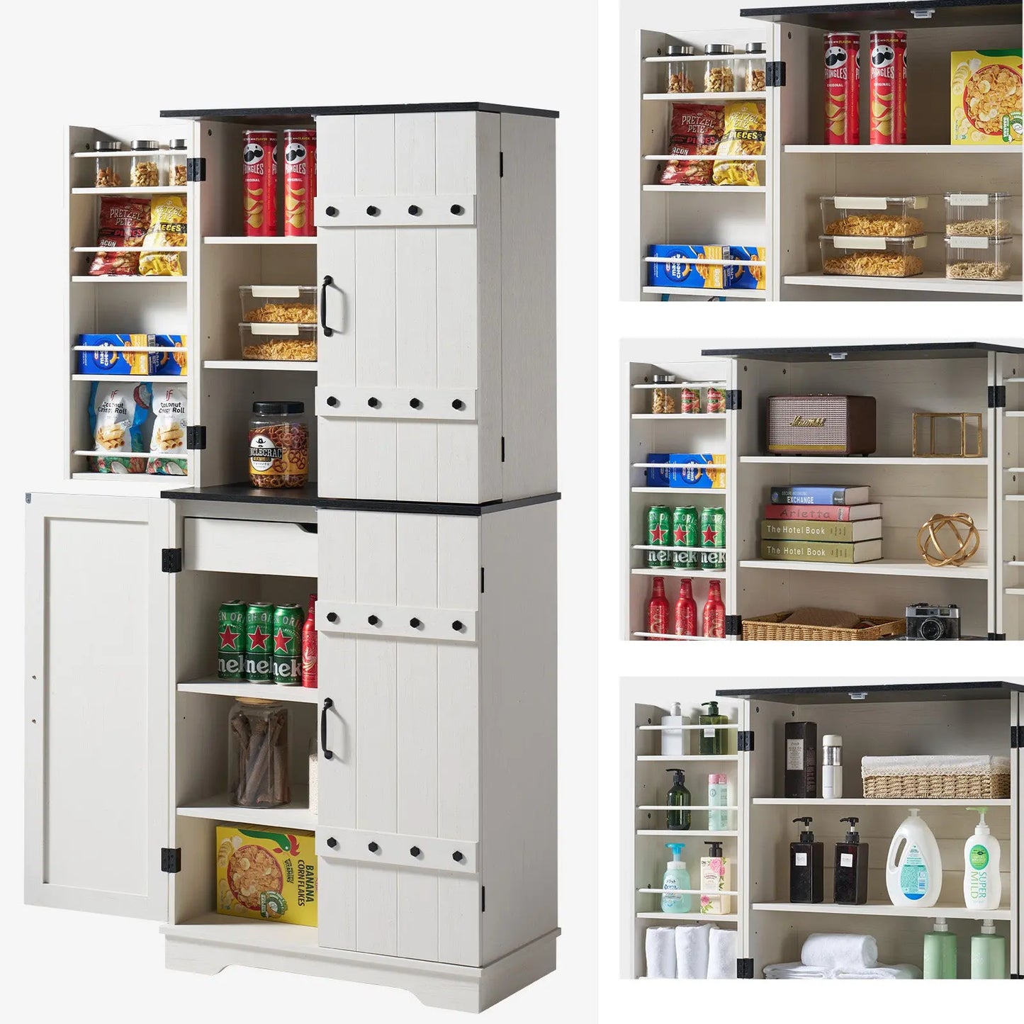 Equipped with a sturdy base and an anti-tip design for this freestanding kitchen pantry. Provides excellent load-bearing capacity, prevents shaking, and eliminates the worry of tipping. The door's magnetic closure ensures a tight closure.
