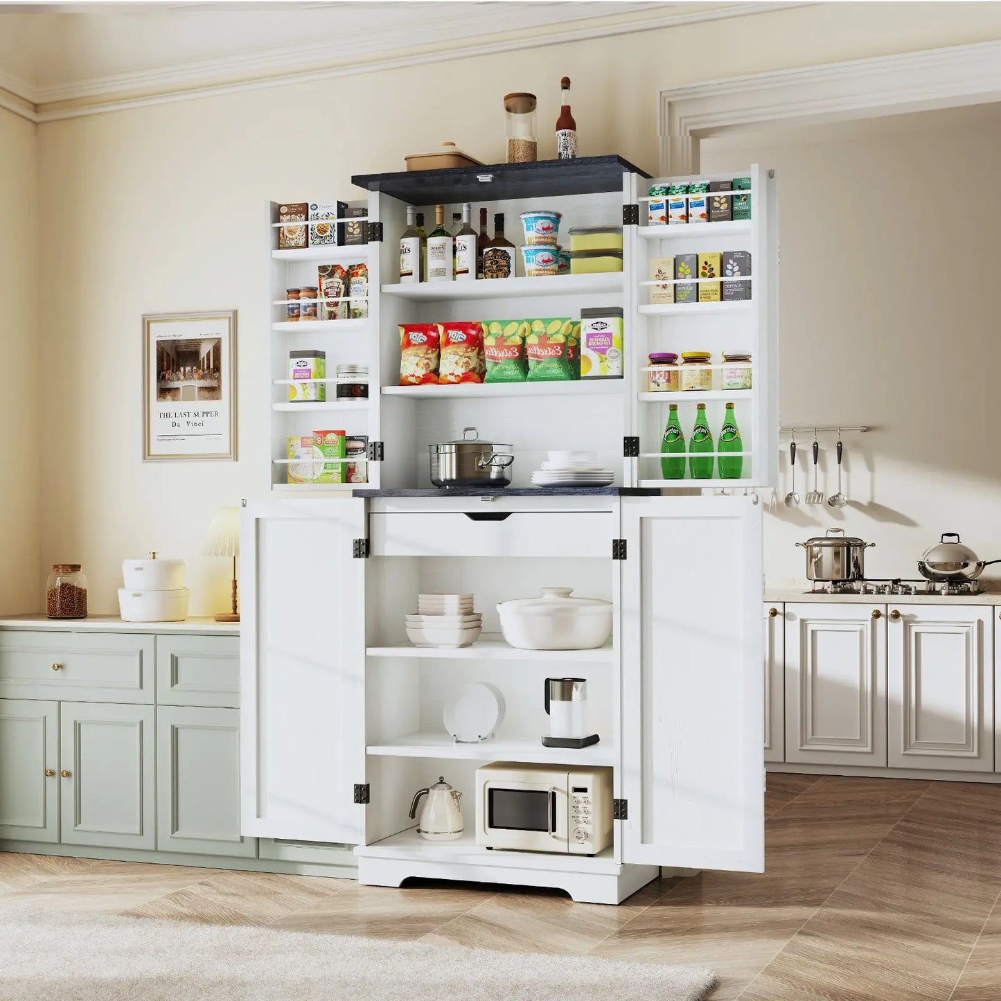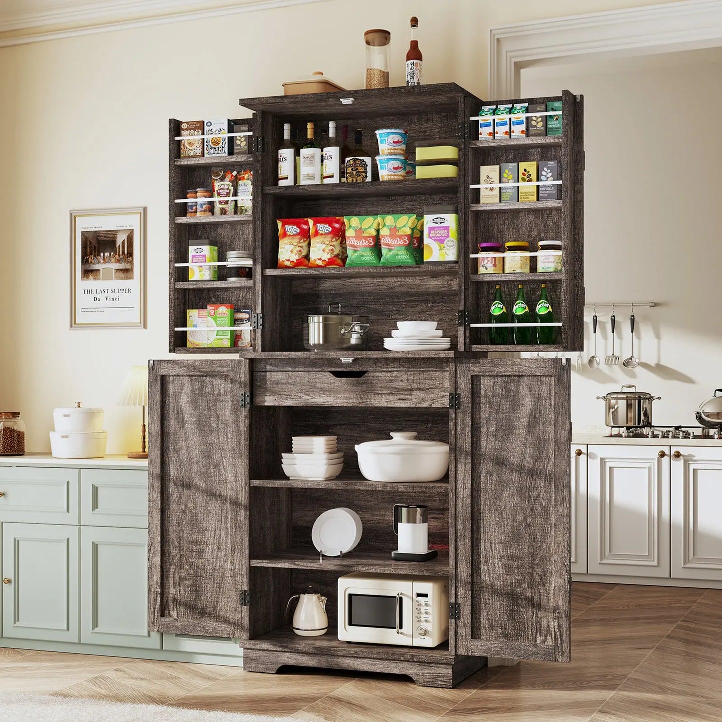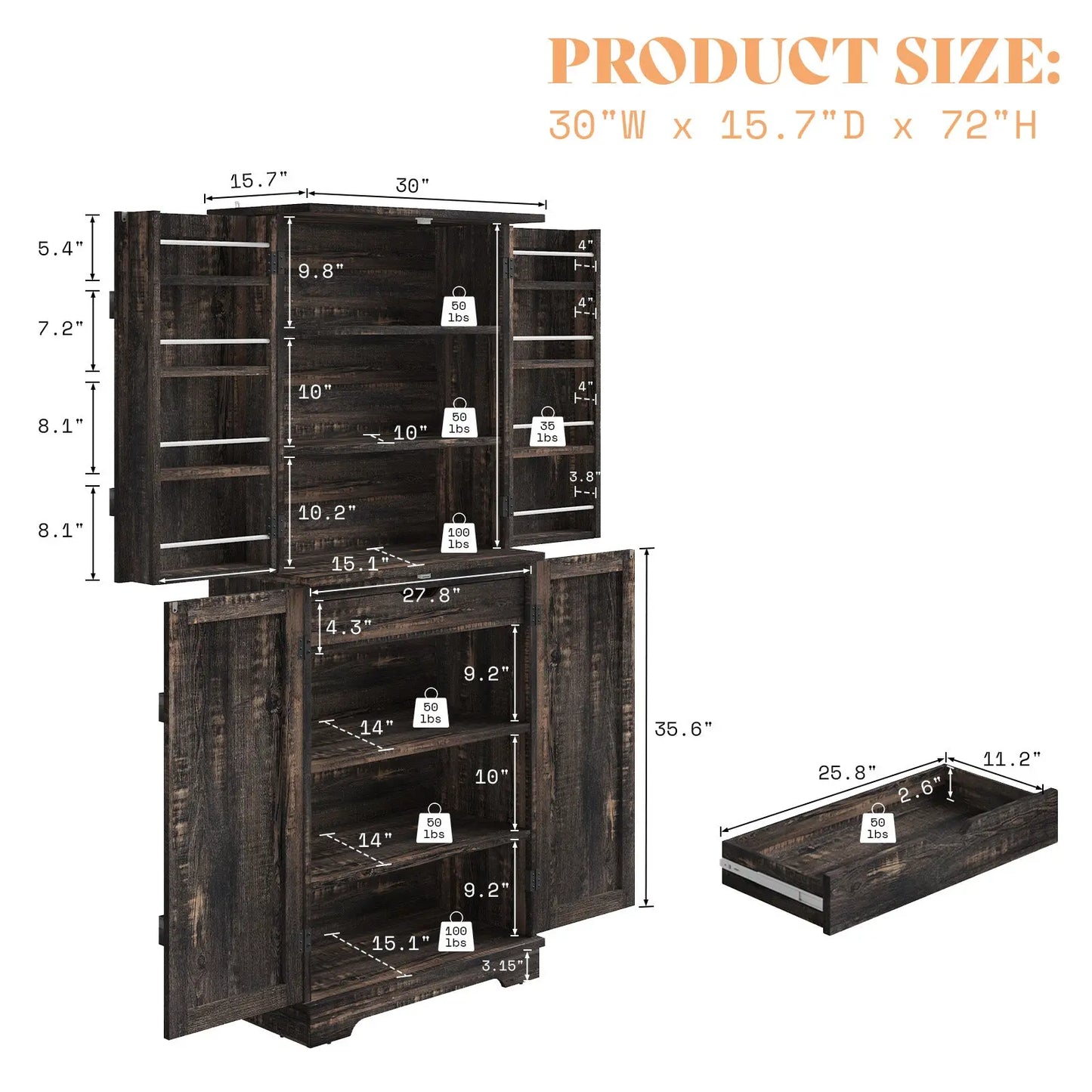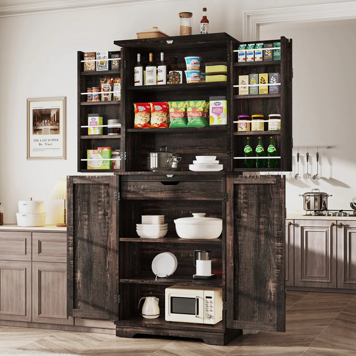 Equipped with a sturdy base and an anti-tip design for this freestanding kitchen pantry. Provides excellent load-bearing capacity, prevents shaking, and eliminates the worry of tipping. The door's magnetic closure ensures a tight closure.