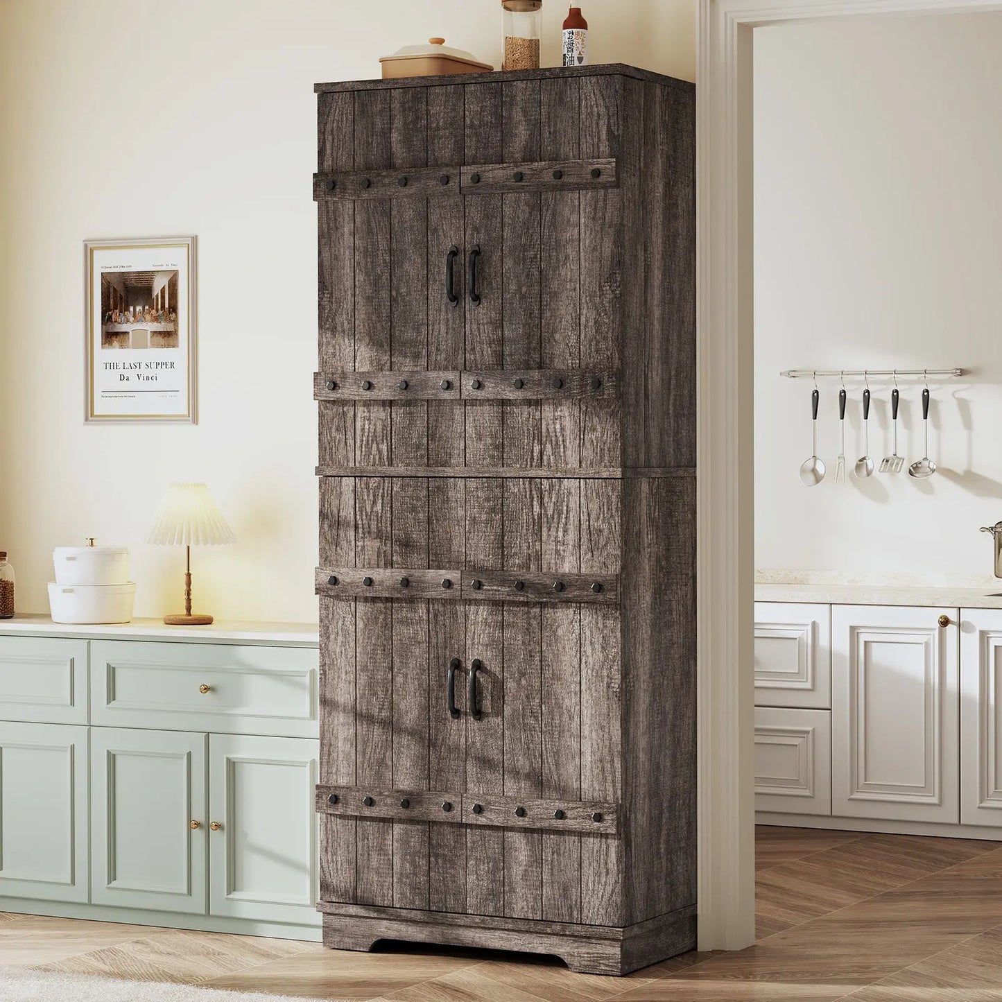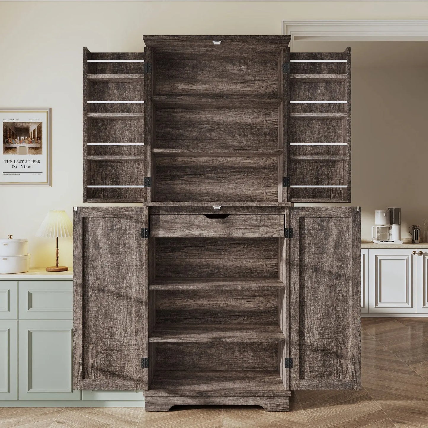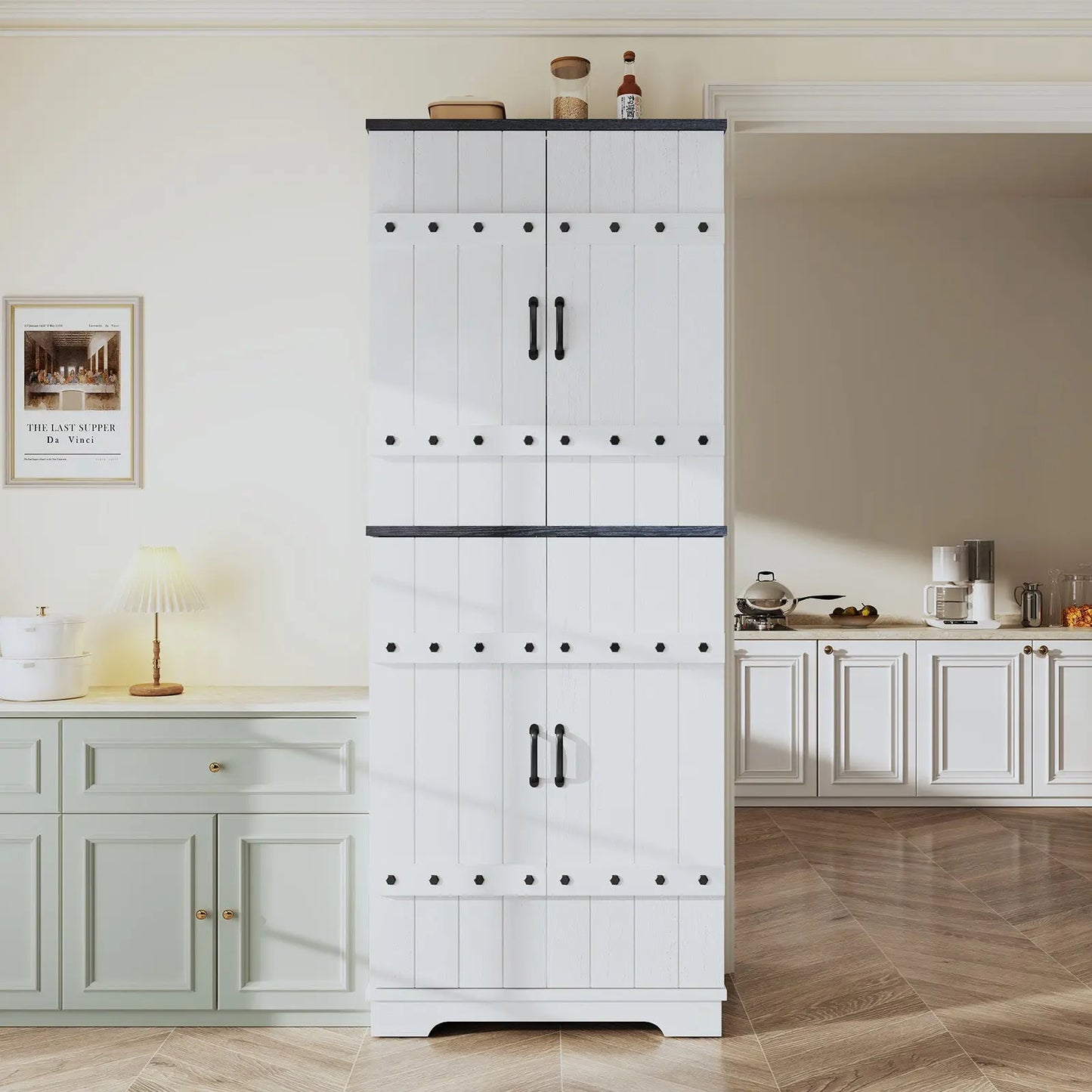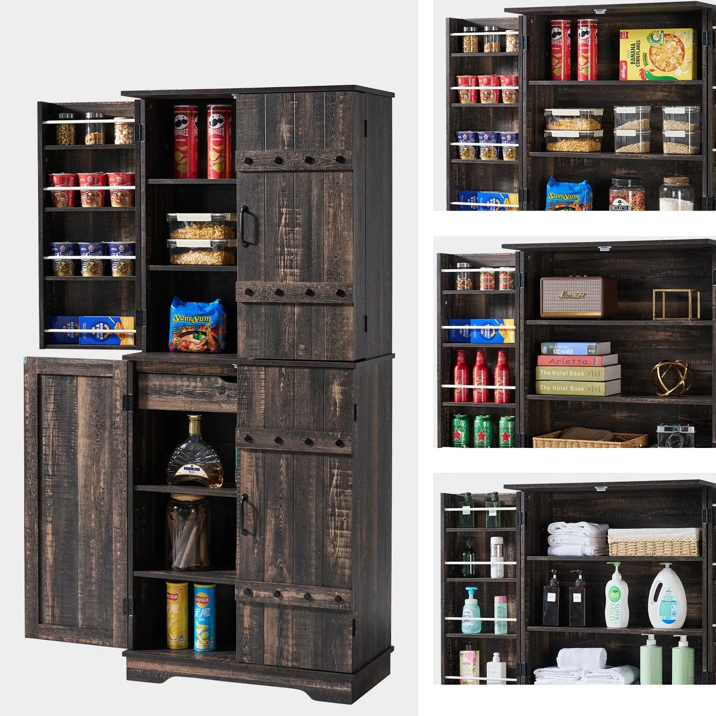 Equipped with a sturdy base and an anti-tip design for this freestanding kitchen pantry. Provides excellent load-bearing capacity, prevents shaking, and eliminates the worry of tipping. The door's magnetic closure ensures a tight closure.