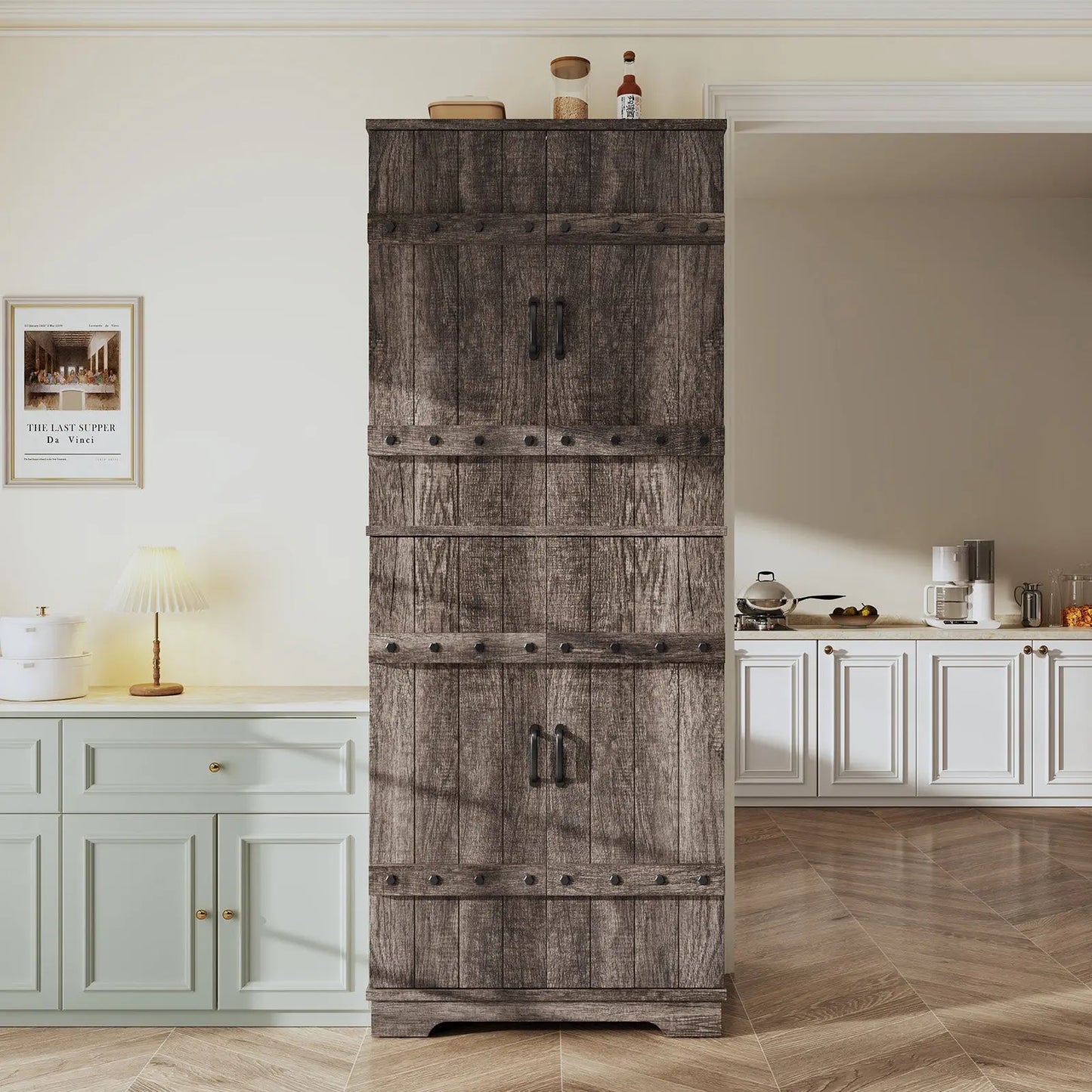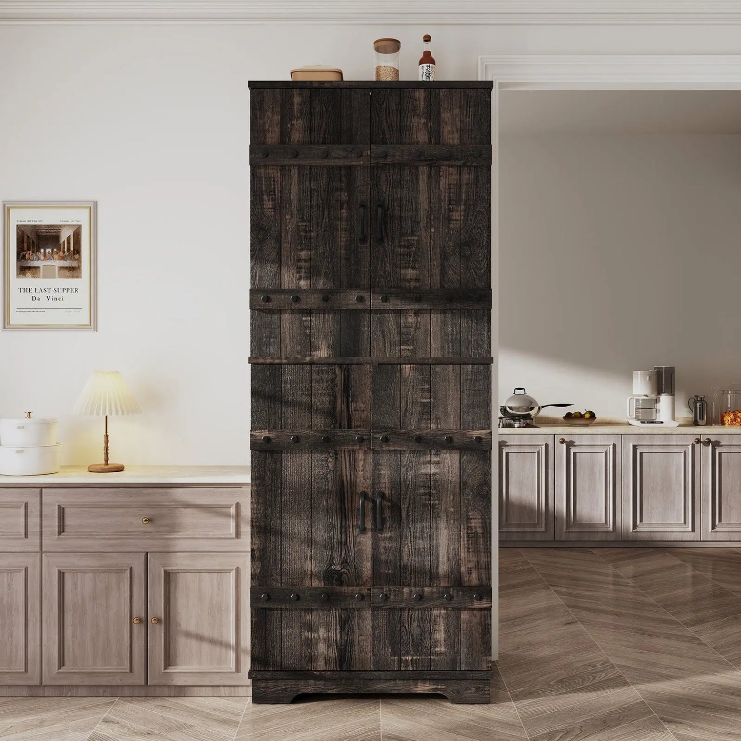 Jasper kitchen pantry features a simple design that complements any space, such as the kitchen, dining room, or living room. This cupboard serves as a versatile storage choice, offering ample capacity while bringing a touch of rustic charm to your home.
