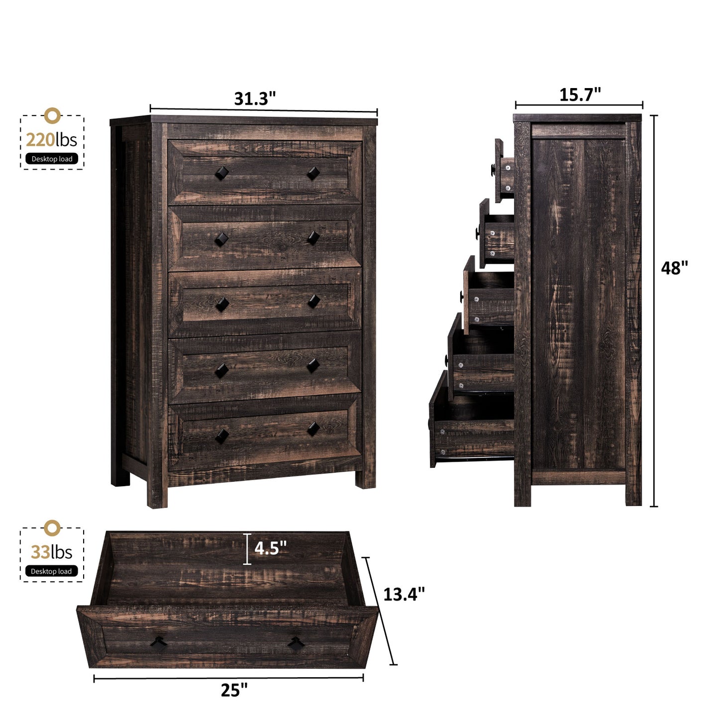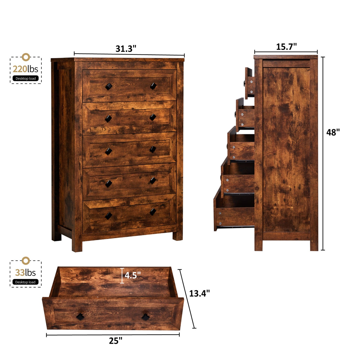 5 drawer dresser for bedroom with rustic style. Vintage tall dresser is a perfect fit with farmhouse styles, chest of dresser adds character and charm to your bedroom and living room.