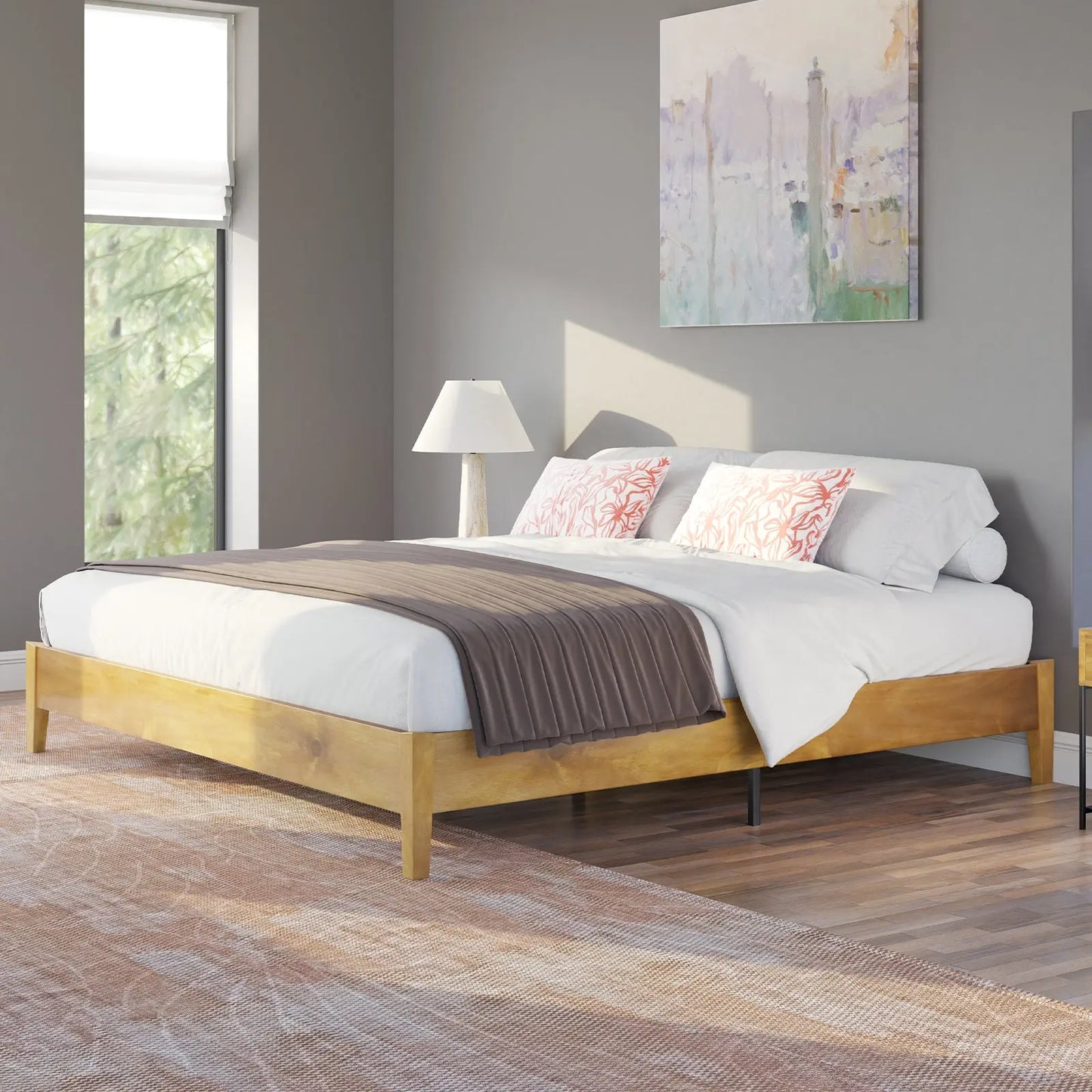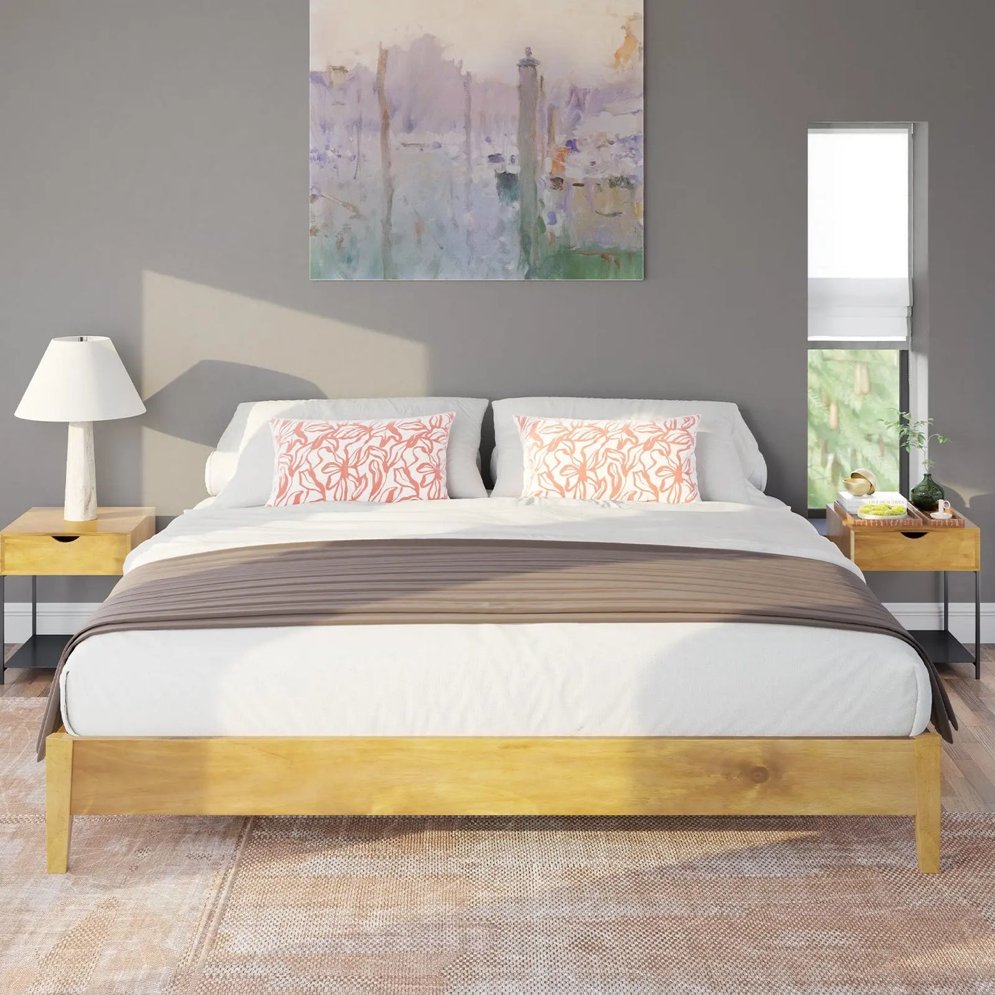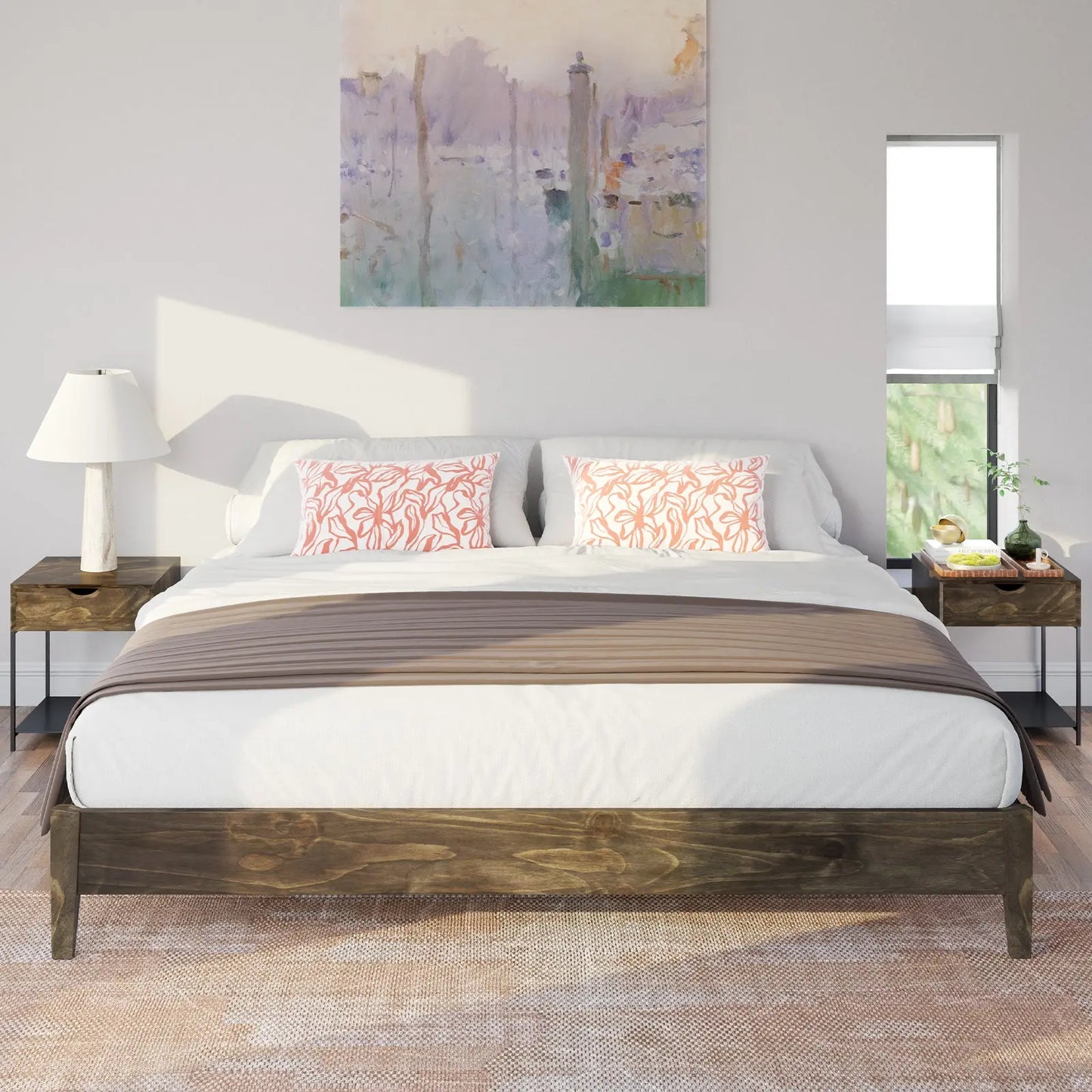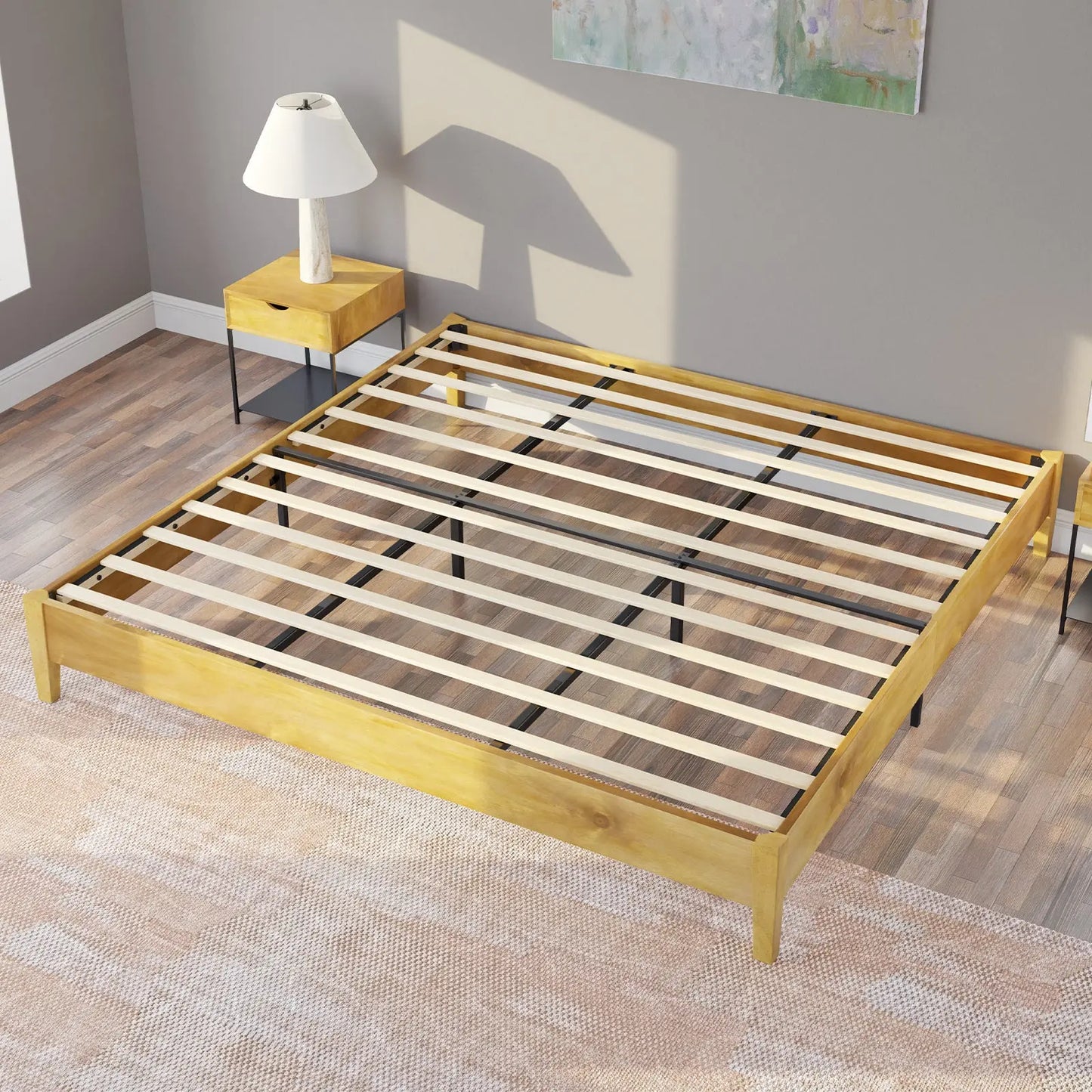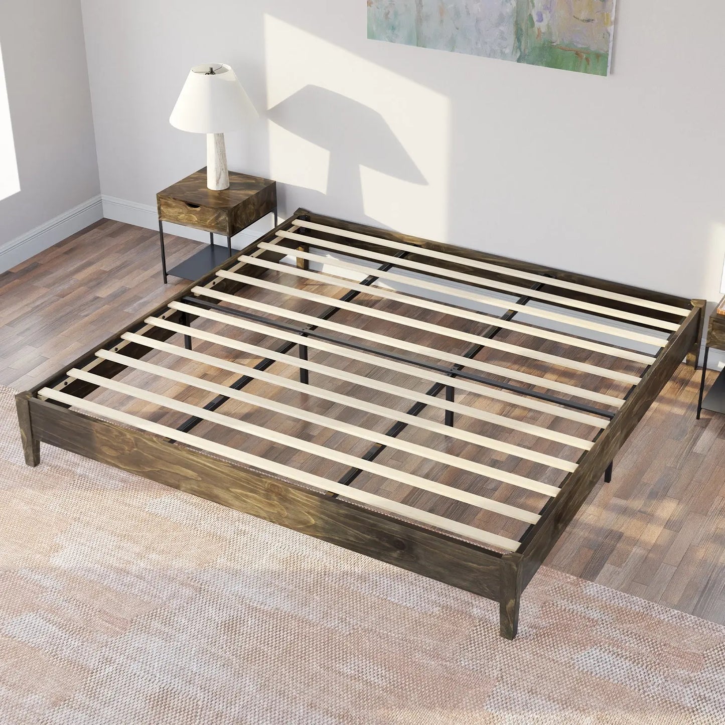 Embrace both firmness and practicality with our solid wood platform bed. Crafted with thick, sturdy slats, it provides exceptional support for your mattress, ensuring longevity and comfort. With a maximum weight capacity of 1000 pounds, this bed offers peace of mind along with enduring durability, making it a reliable centerpiece for your bedroom.