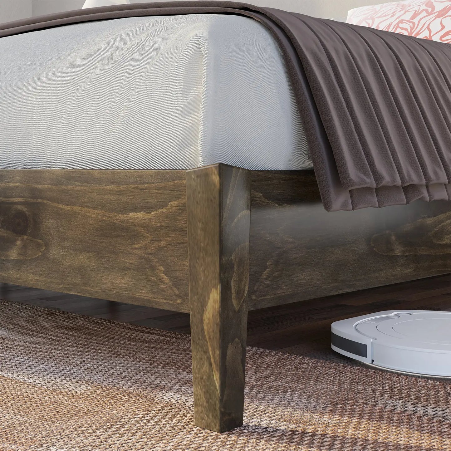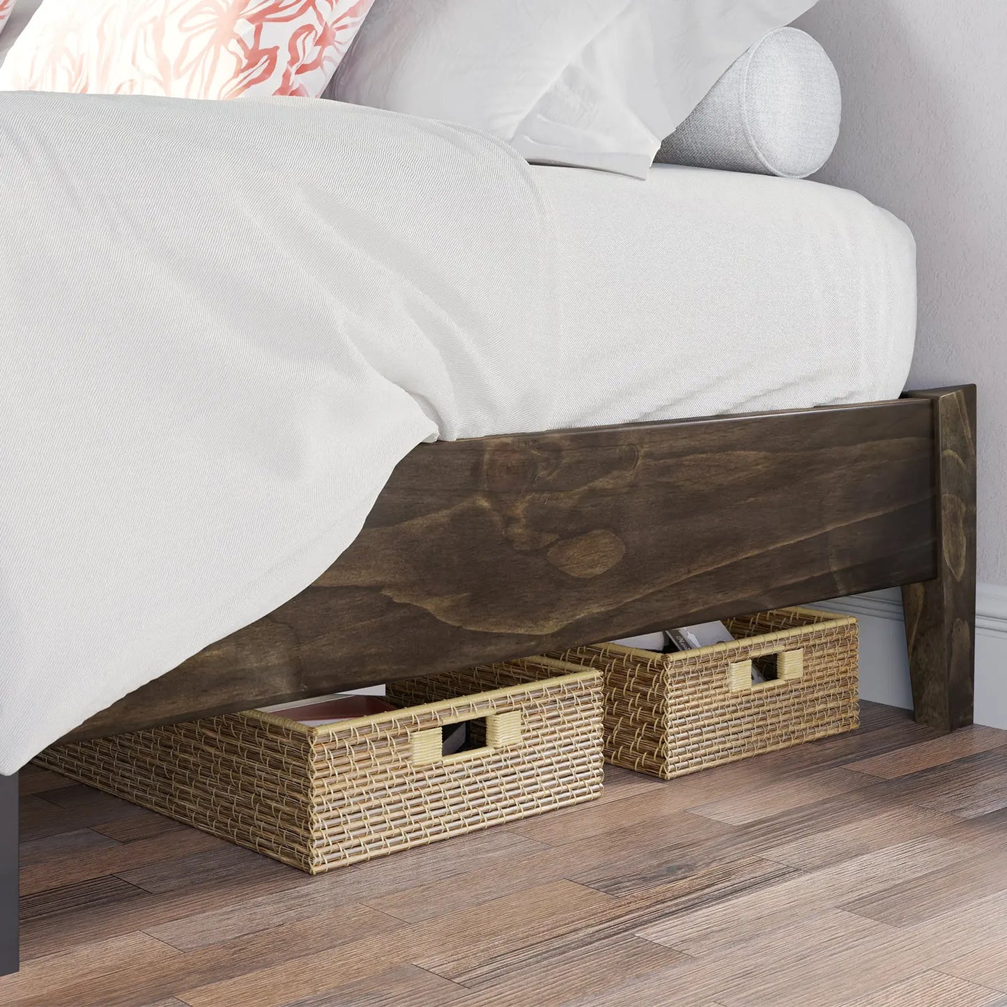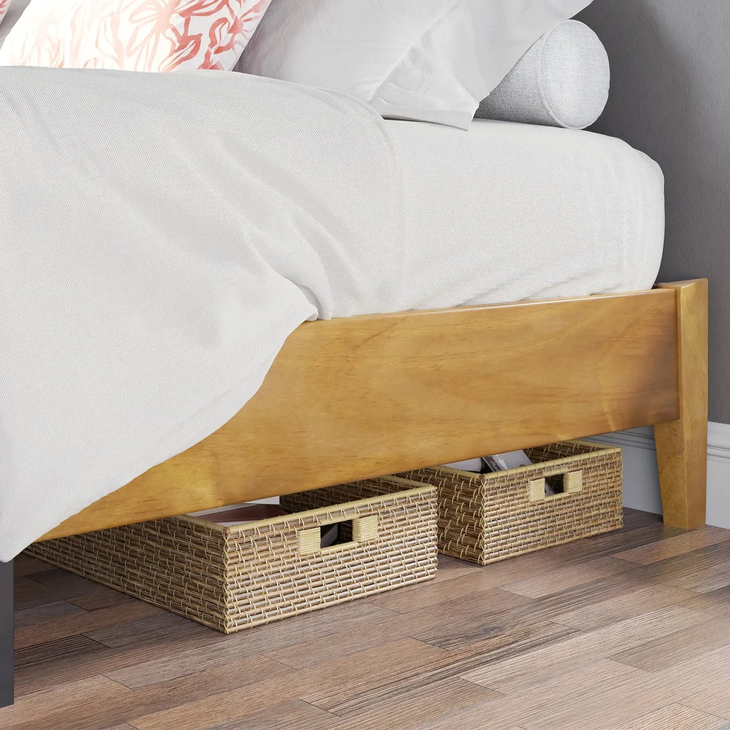 Enjoy abundant storage space with our designed solid wood bed. Beneath its generous frame lies a roomy storage area, perfect for stowing away belongings and keeping your bedroom clutter-free. Experience the convenience of effortless cleaning paired with ample storage, seamlessly integrated into your living space.