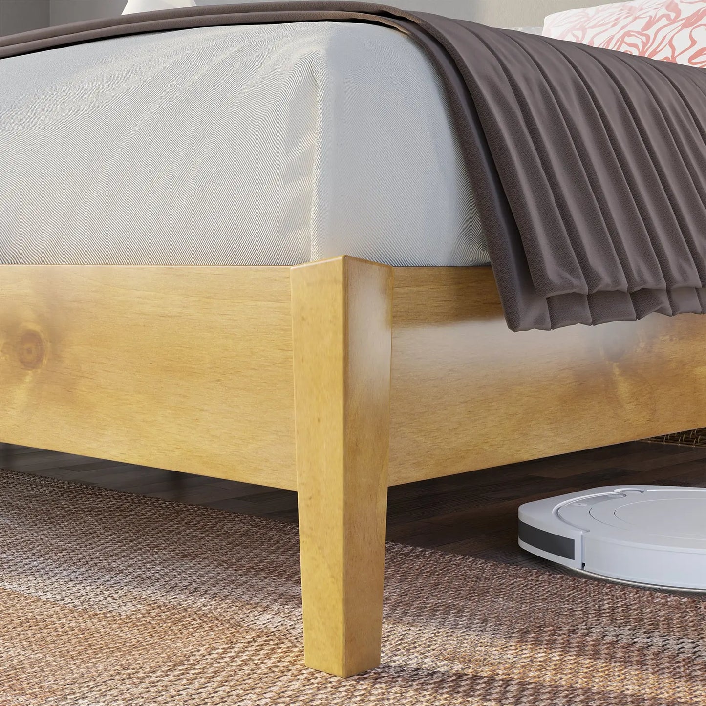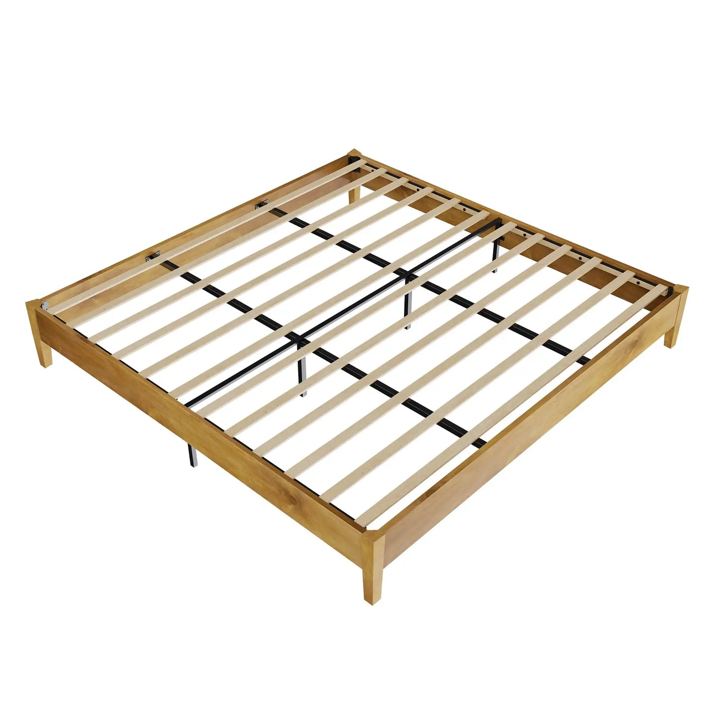Celebrate the enduring allure of mid-century modern design with our solid wood bed frame. With its classic silhouette and natural grain wood finish, it exudes elegance and sophistication, elevating any bedroom space. Crafted from 100% pine wood, its robust frame and tapered legs ensure exceptional strength and stability, while the spacious under-bed storage area makes organization a breeze and cleaning effortless. Supported by thick solid wood slats, this bed frame offers firmness and practicality, boasting a maximum weight capacity of 1000 pounds. Experience the perfect fusion of style, durability, and functionality with this captivating addition to your home.