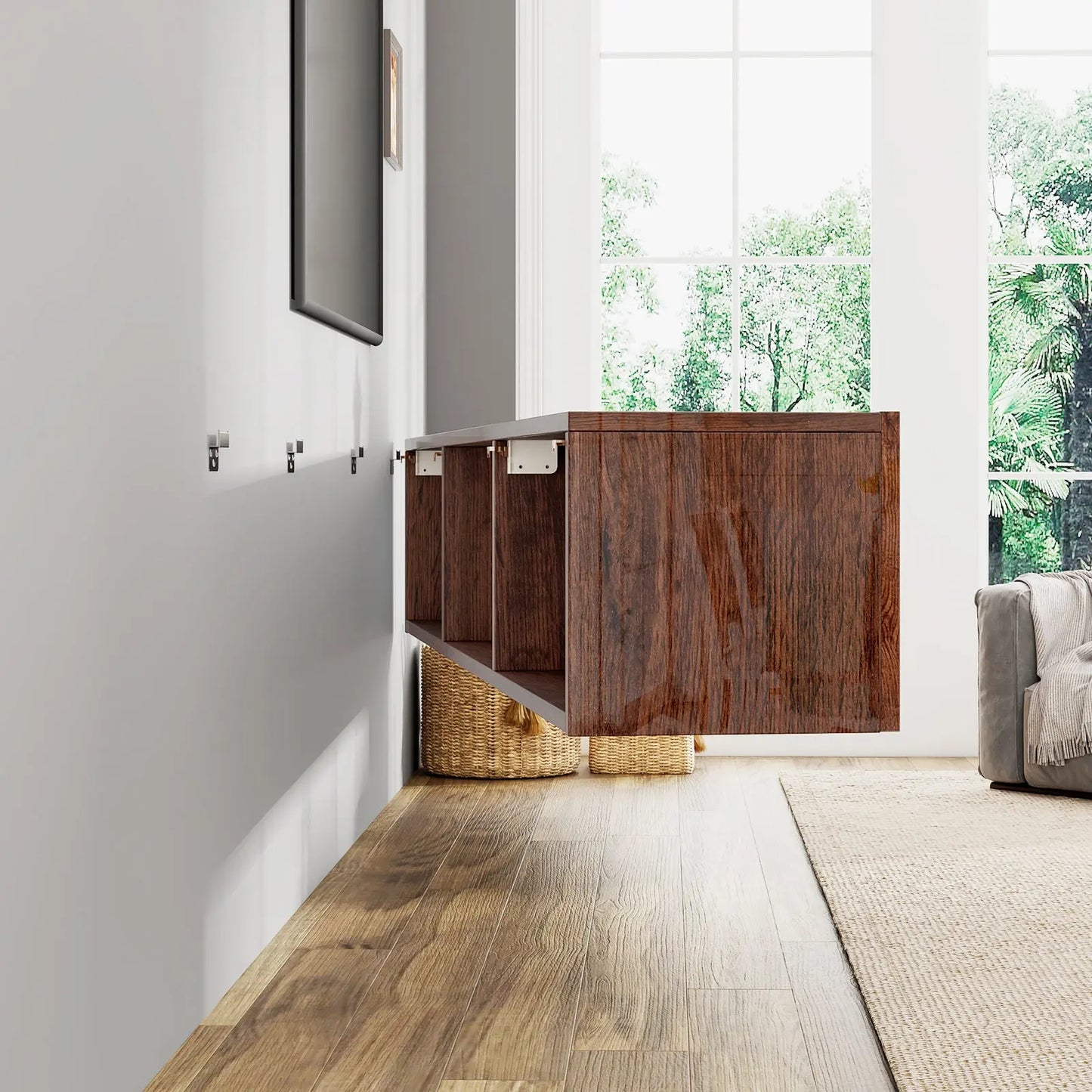 Floating TV console inside power outlet with 3 standard plug outlets and 2 USB plugs, you can charge your TV, DVDs, game devices, etc. Cable hole is for your wire management.