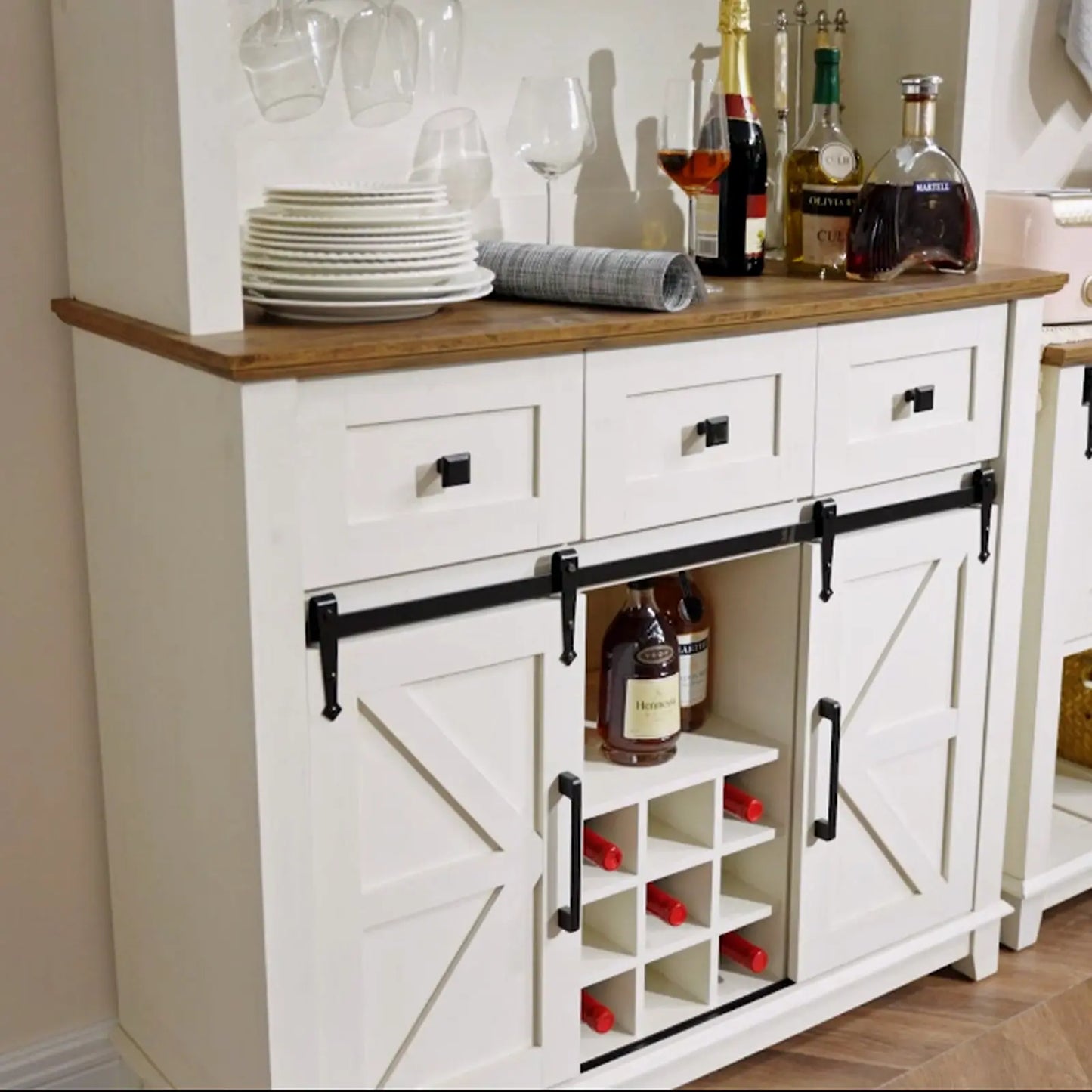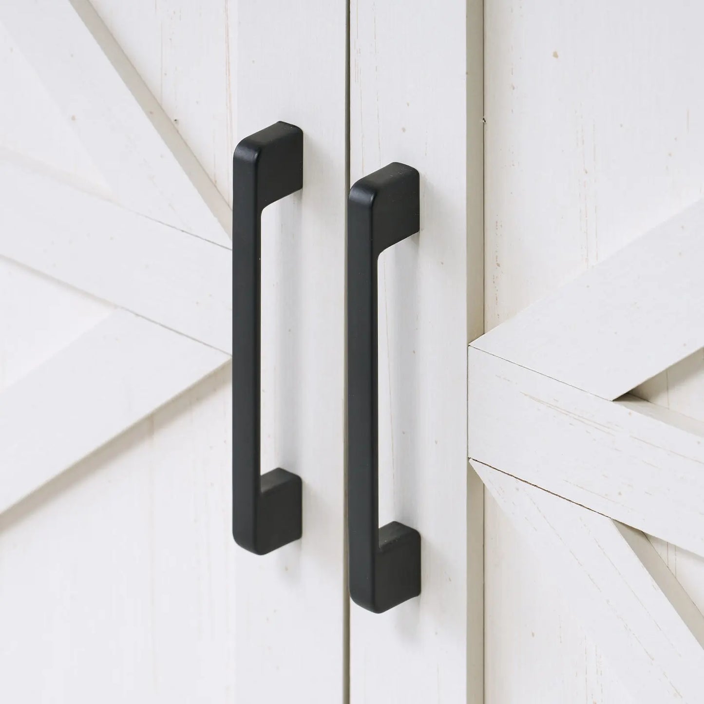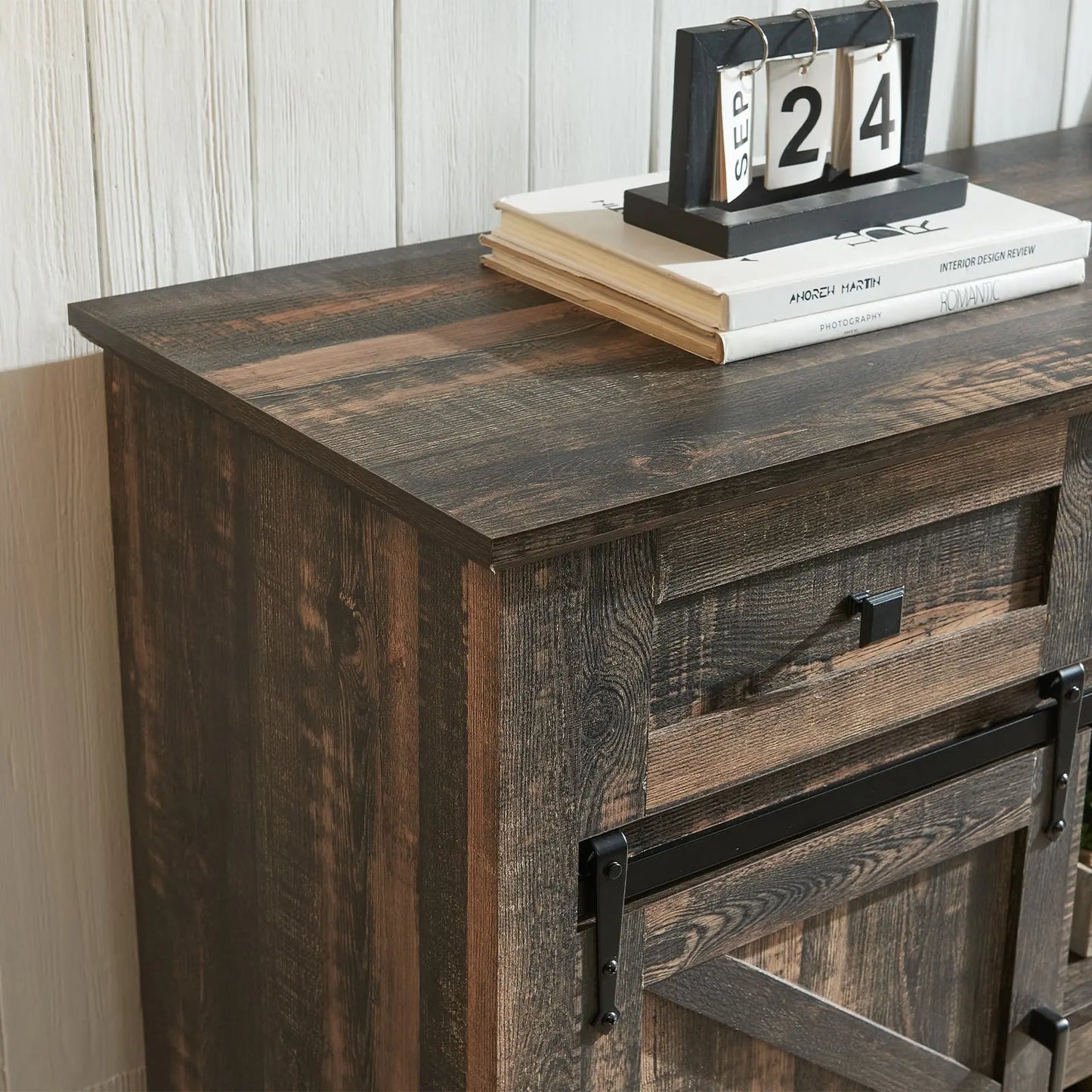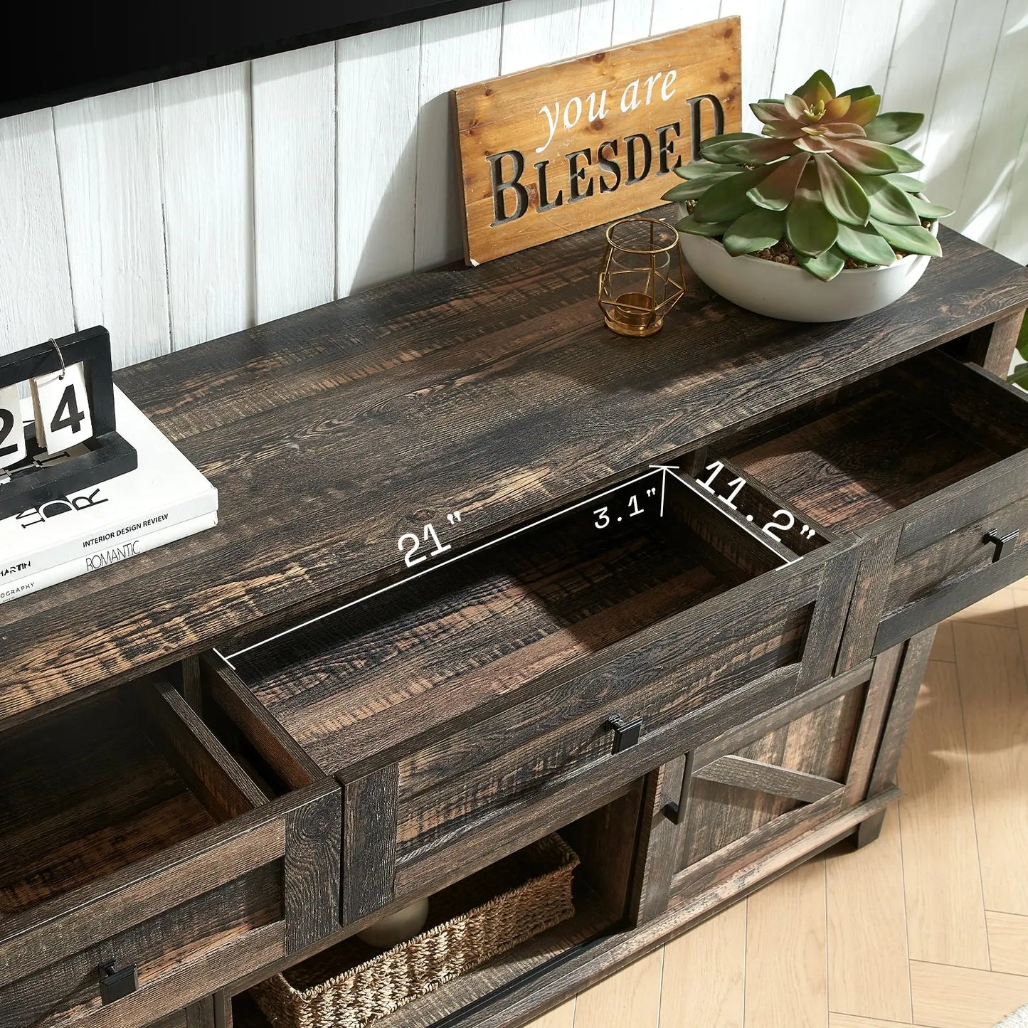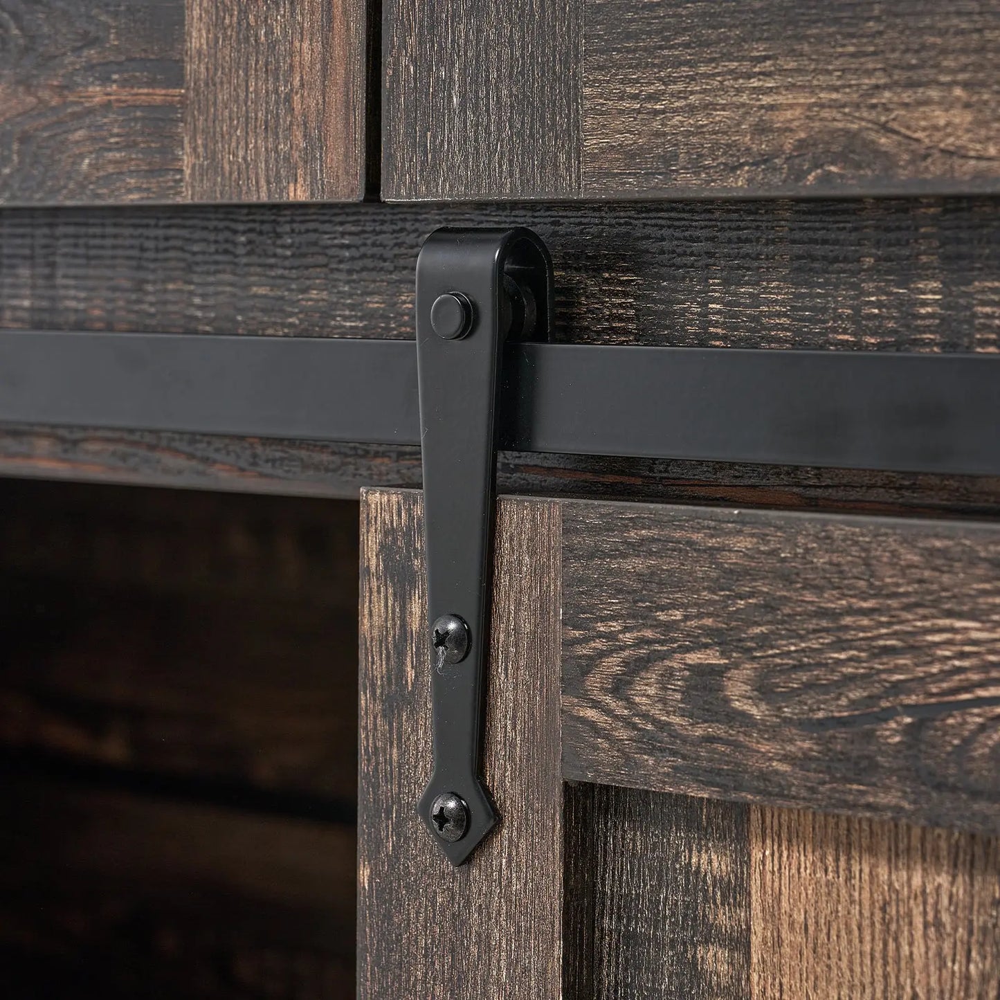 Two movable smooth barn doors on the television stand for convenient access to cabinets, adds a touch of character and functionality to your storage solution.