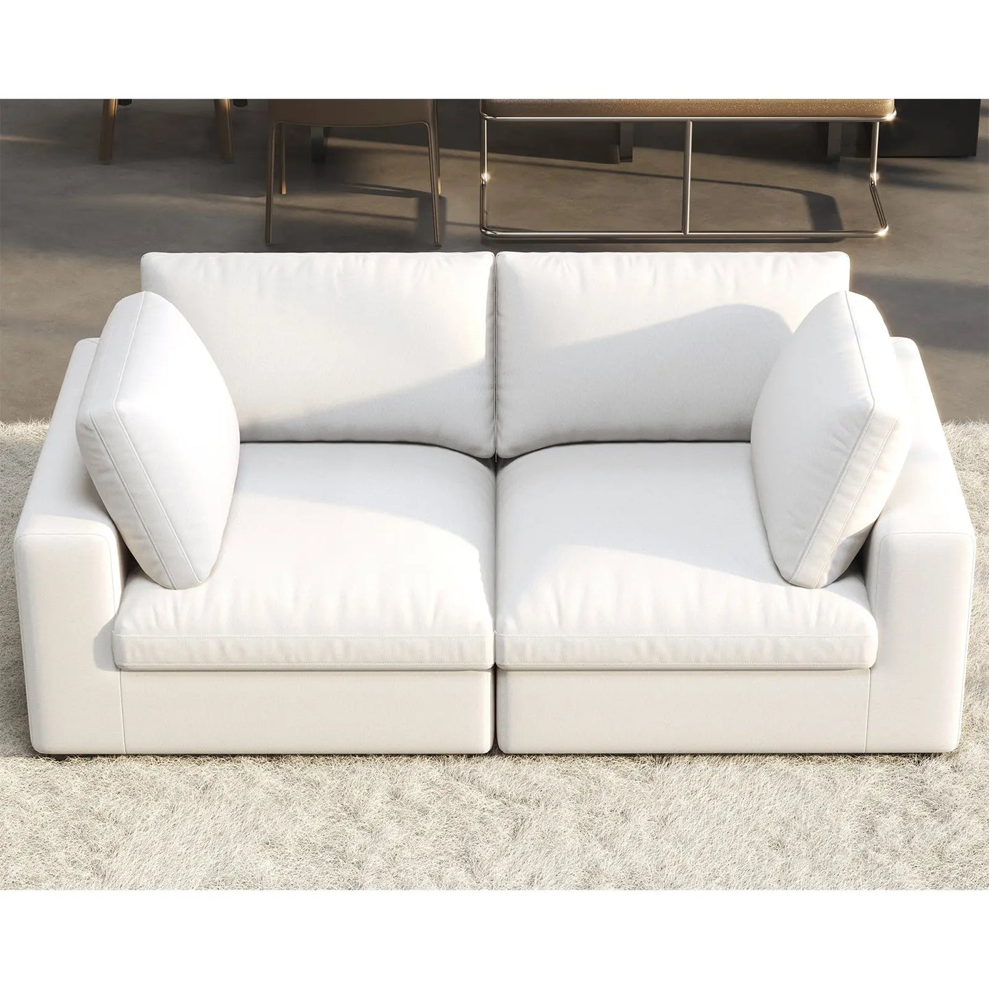 Experience unparalleled comfort with our Montauk duck down sofa, featuring 70% down-feather filled cushions and back pillows that conform to your every curve, enveloping you in a snug embrace while ensuring optimal breathability. Its modular design allows you to mix and match pieces to create the perfect seating arrangement for your space. With a grand size offering a 30″ depth seat, you can stretch out and relax in luxurious leisure. The feather filling provides excellent resilience and shape retention, supported by a robust wooden frame for lasting durability. Crafted from soft linen fabric, this sofa not only feels irresistibly cozy but also exudes a modern, sophisticated elegance that enhances any room.