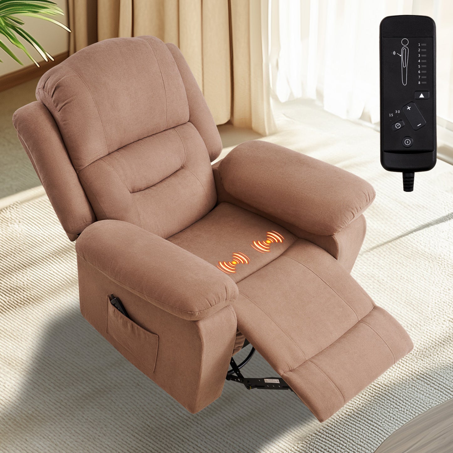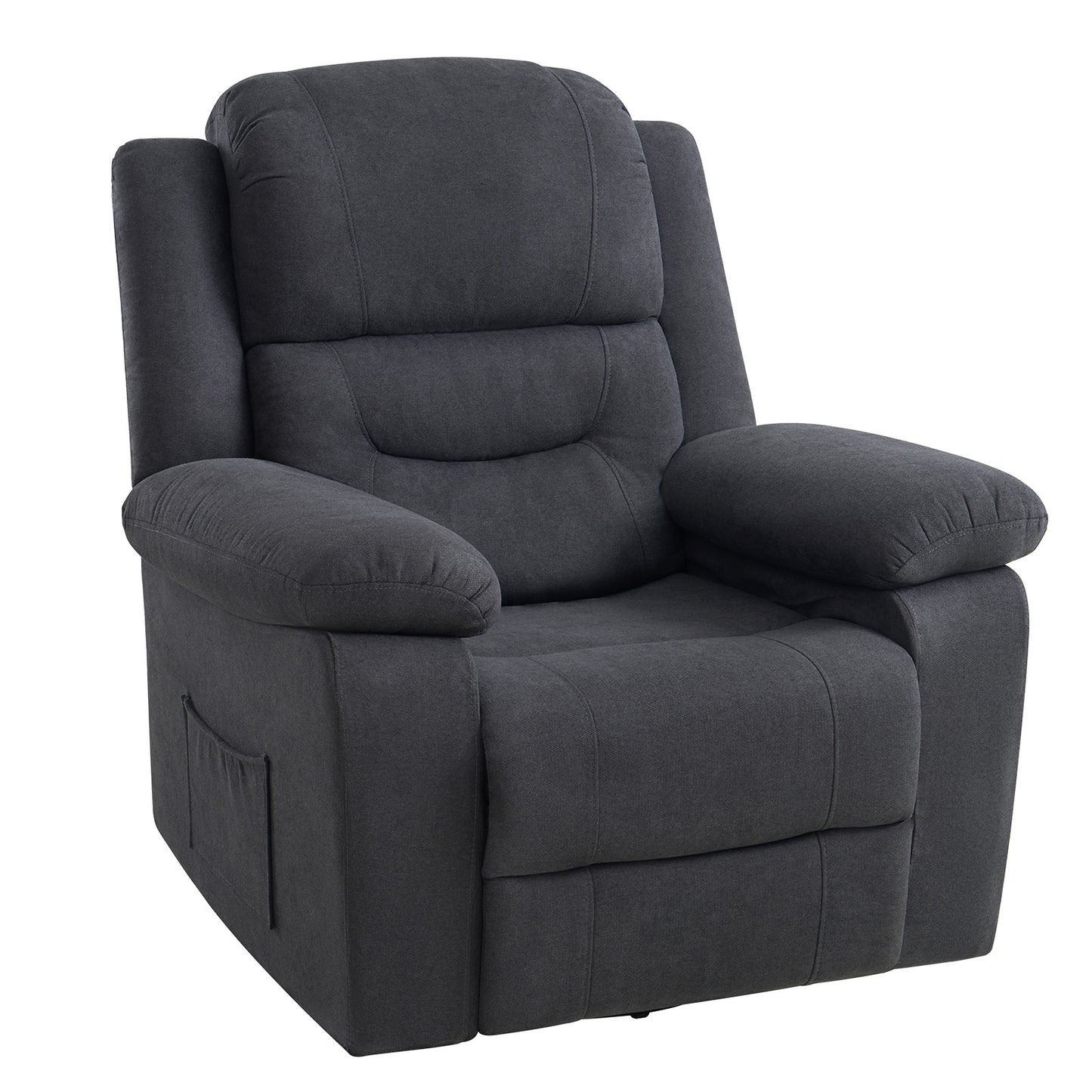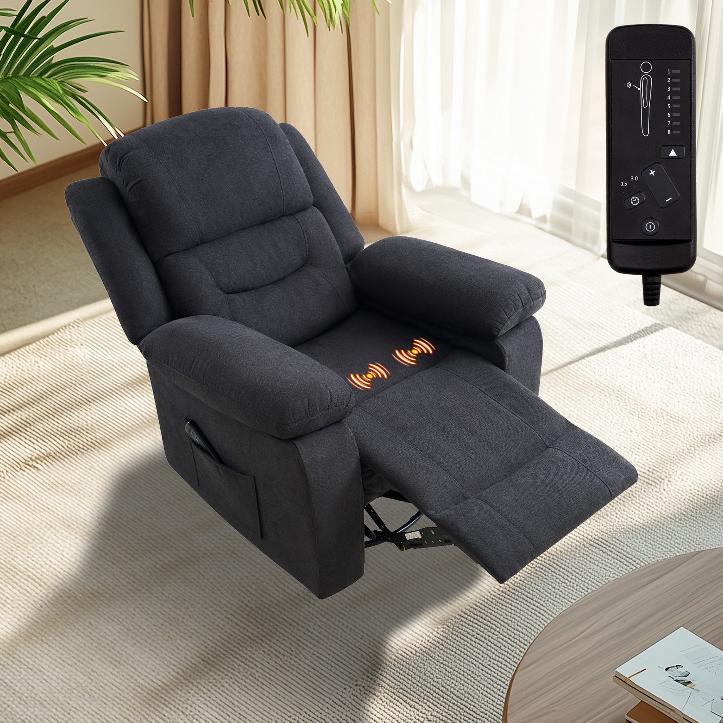 The Reed Swivel-Rocker Recliner Chair delivers ultimate relaxation with 360° swivel, 30° rocking, 160° reclining, and dual seat massage points. Upholstered in soft, breathable terry fabric and filled with high-density foam, it ensures comfort and support. Effortlessly recline with the pull ring, while a side pocket keeps essentials within reach. Built with a sturdy wood frame and iron base, it offers lasting durability. With its timeless dark design, this recliner blends seamlessly into any home or office decor, providing both style and function.