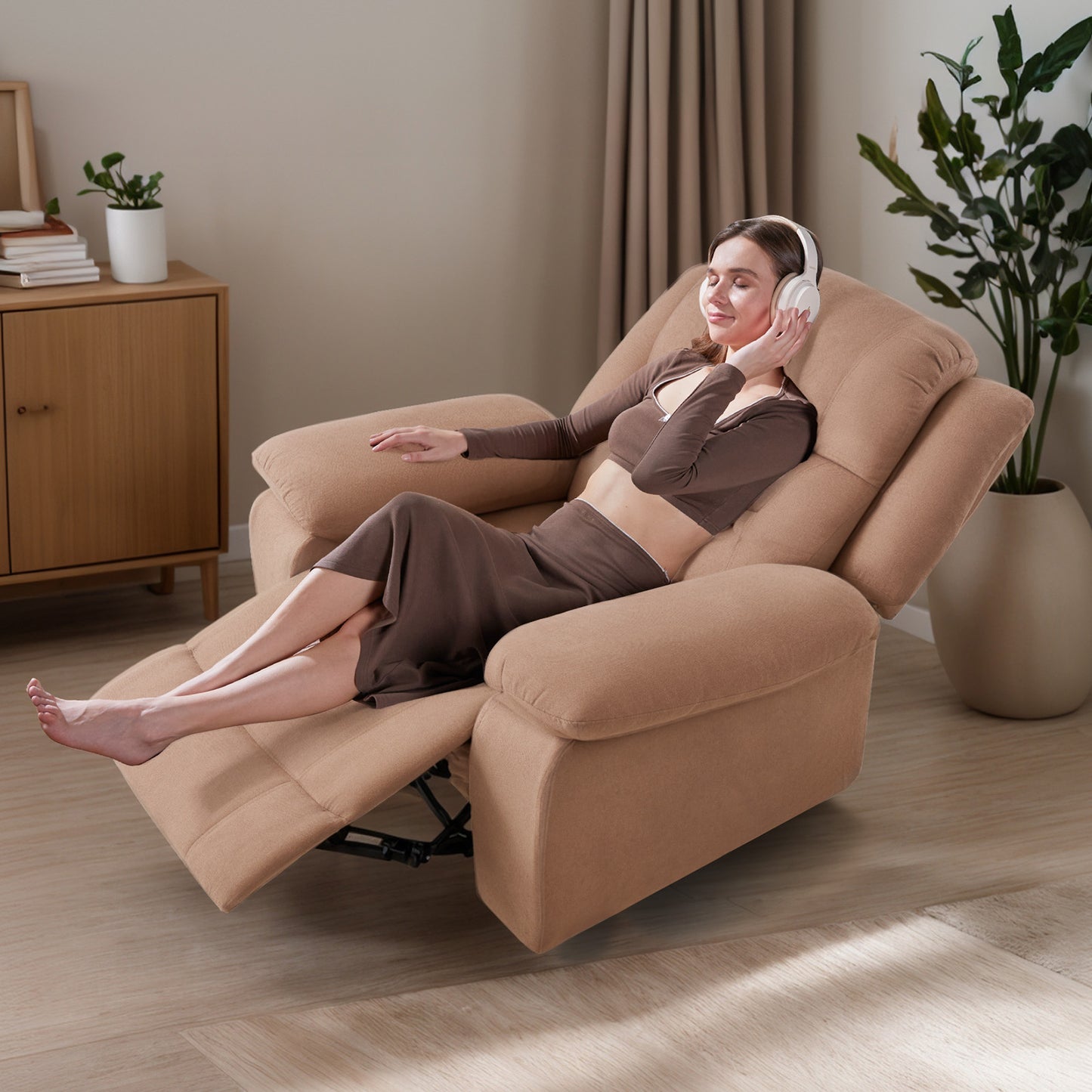 This swivel recliner is upholstered in breathable terry fabric and filled with high-density foam, ensuring exceptional comfort and support while you relax.