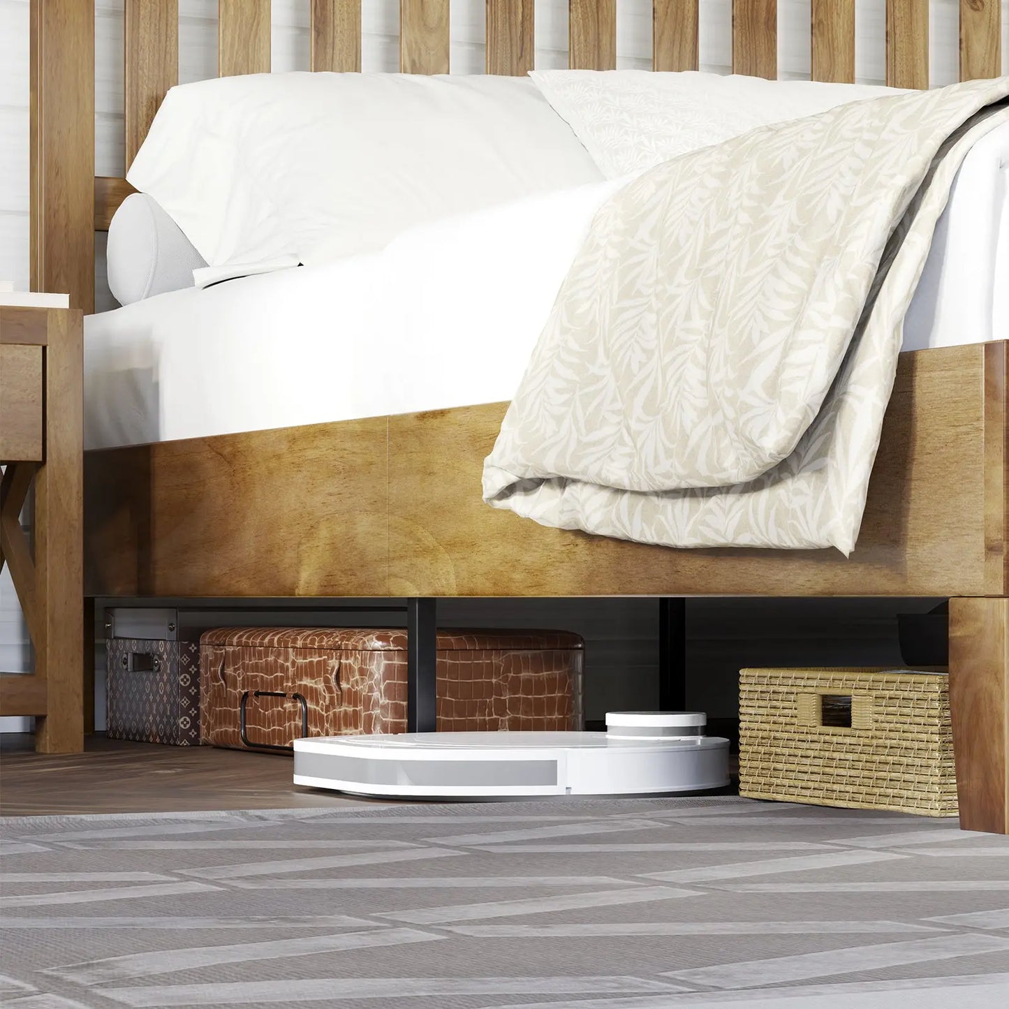 The 7.3" solid wood legs and under-bed storage feature add both aesthetic charm and practical functionality to the bed frame. The under-bed storage is a valuable feature for maximizing space in smaller bedrooms or organizing belongings neatly out of sight.With a weight capacity of up to 1,000 lbs, this bed frame offers exceptional strength and stability, accommodating individuals of different sizes and ensuring a safe and comfortable sleeping experience.