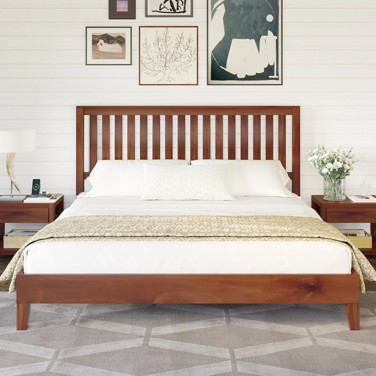 Silverado mid-century bed frame would be a stylish and functional addition to any bedroom, blending seamlessly with various décor styles while offering ergonomic benefits. Whether you're furnishing a modern apartment or updating a traditional home, this type of bed frame could be an excellent choice for creating a cozy and inviting atmosphere. This mid-century bed frame with slatted headboard, tapered legs, solid wood construction, under-bed storage, and high weight capacity represents a blend of style, functionality, and durability. It would be an excellent choice for anyone looking for a reliable and attractive bed frame that can withstand the test of time.